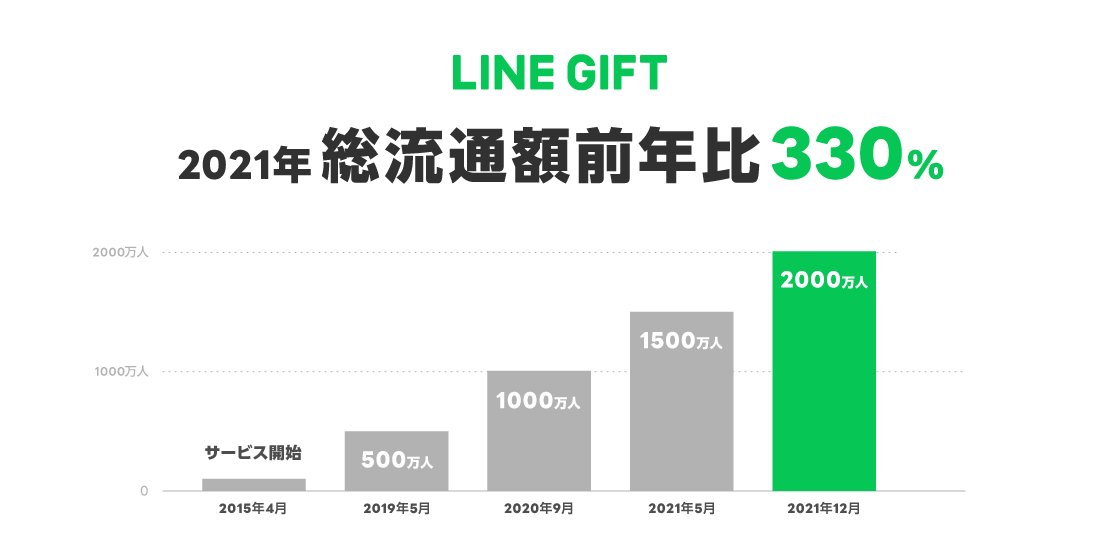 LINEが提供するサービス「LINEギフト」の躍進が止まらない。2021年12月の総流通額(単価?使用回数?購入者数を含む)は前年同月比440%増、2021年の年間総流通額も前年比330%増と急成長を遂げている。総流通額の内訳の中でも特に購入者数が伸び続け、ユニークユーザー数は現在2500万人を突破(2022年6月時点)。利用者数の増加に伴い、ラインナップアイテムの拡充にも注力している。近年ではラグジュアリーブランド等が期間限定出店をし、数十万円するアイテムが次々と完売するなど話題を集めた。サービス立ち上げから7年。市場拡大の背景にはどのような動きがあったのか。LINEギフトのサービス立ち上げ当初から携わっている同社ギフト事業部事業部長米田昌平氏に話を聞いた。