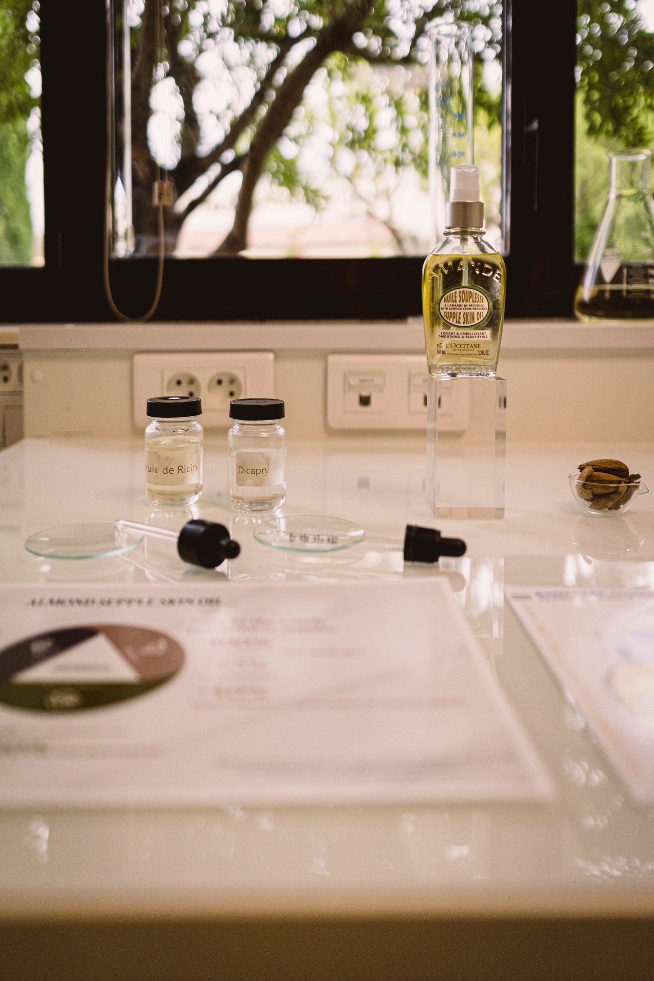 マノスクにあるロクシタンの研究施設へ。ロクシタンといえば、「ナチュラルで肌に優しい」といったイメージを持っている人が多いかと思いますが、実は“攻めた”研究もロクシタンの真髄。例えば、創設者?オリビエ氏が「永久花?イモーテルの強い再生力をスキンケアに活かすことができれば、私たちにとって有益な製品が作れるのではないか」と着目。野生だったイモーテルをオーガニック栽培することに挑戦し、その力を解明する研究を続けてきました。