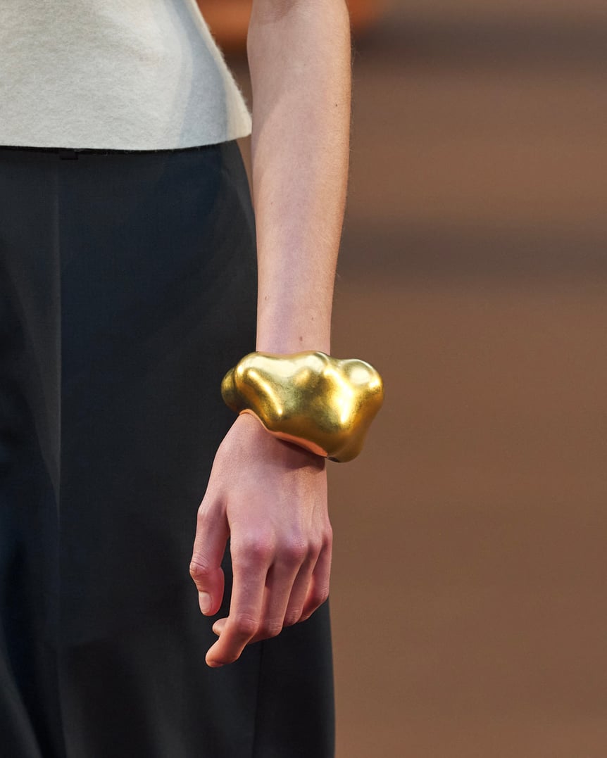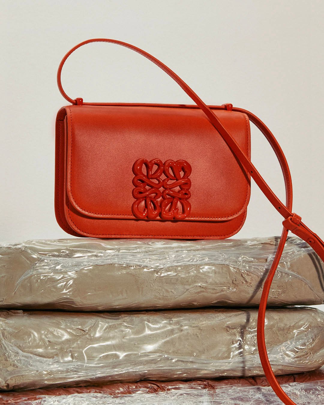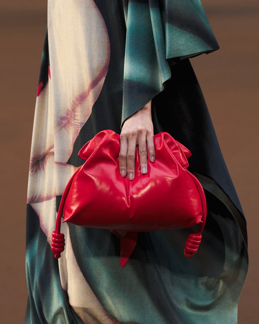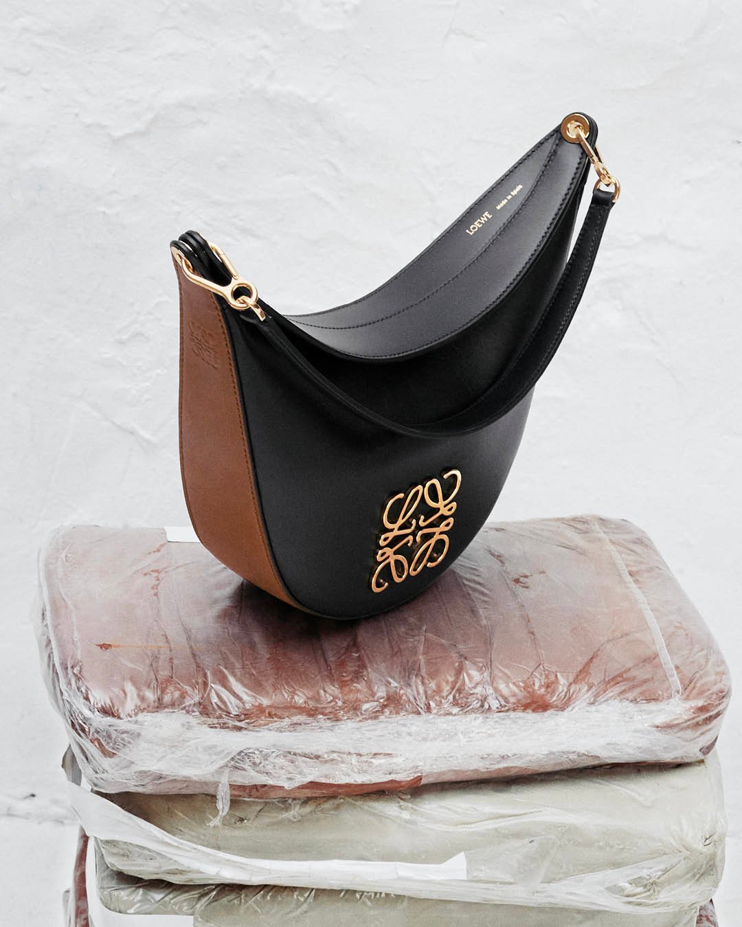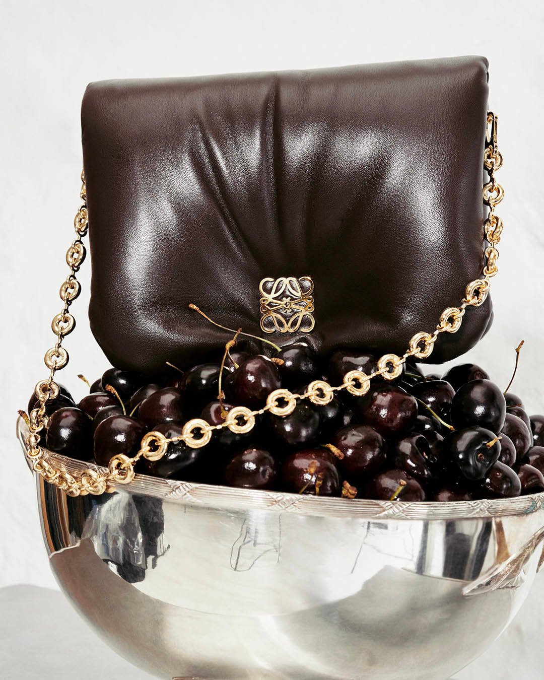 ロエベのアイコンバッグも変容を遂げている。「フラメンコ」「ゴヤ」といった人気のバッグが膨張したシルエットで登場。「パズル」はステッチやチェーンでアレンジが加わった。