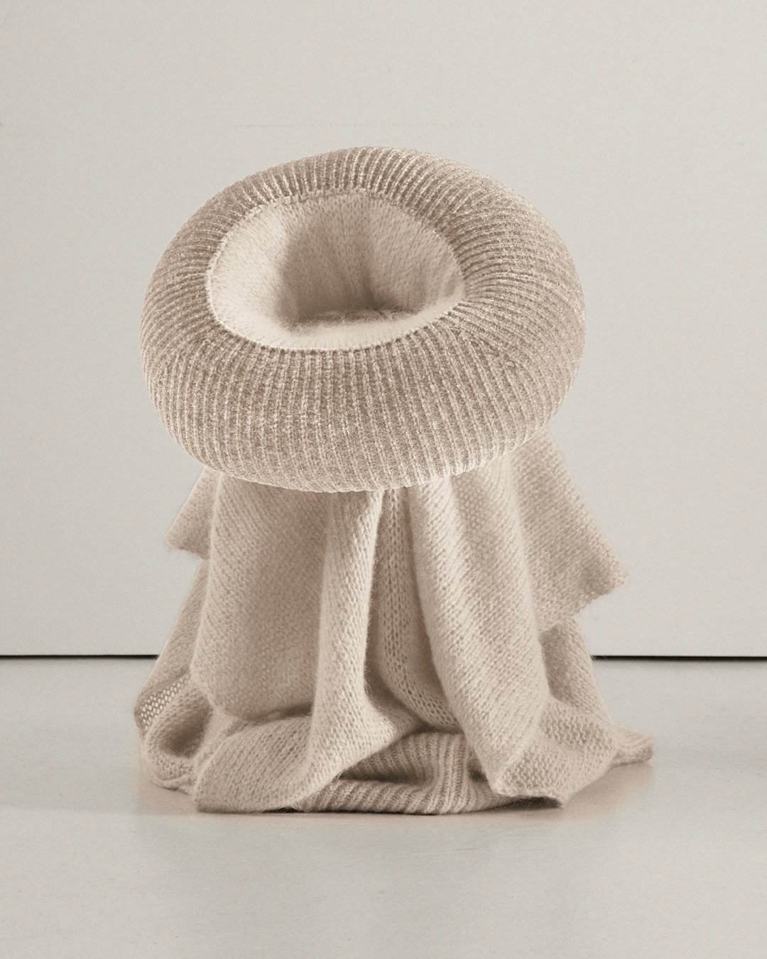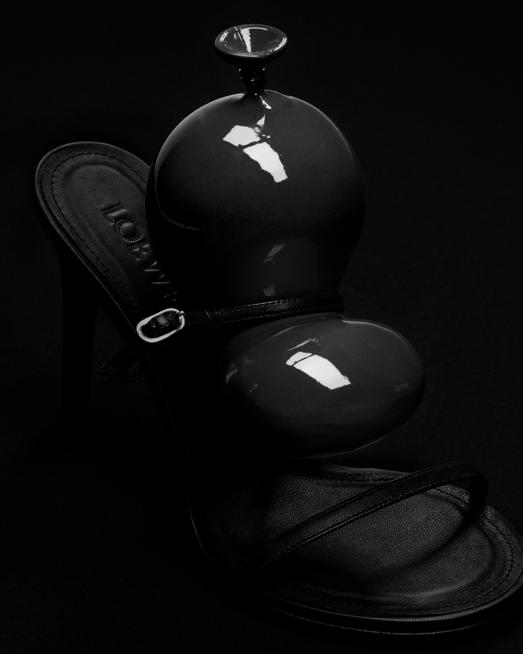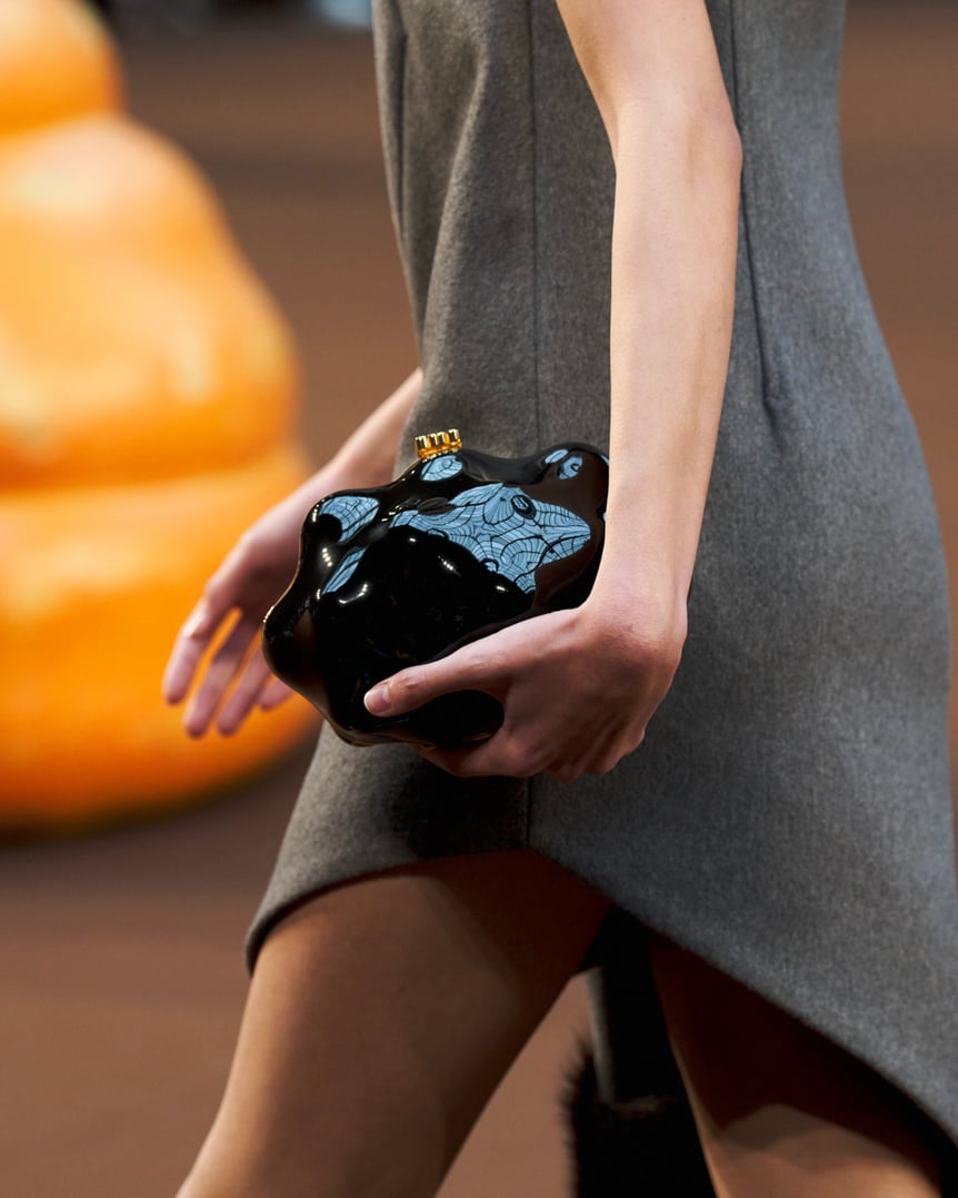 彫刻的なバッグやバングルなどを手がけたのは、京都在住の石塚源太。漆塗りの質感と触感を追求し、「薄膜の周辺にあるもの」をテーマに作品を制作している。ロエベ財団クラフトプライズにもノミネートされたアーティストだが、あらためてその才能に注目が集まりそうだ。
