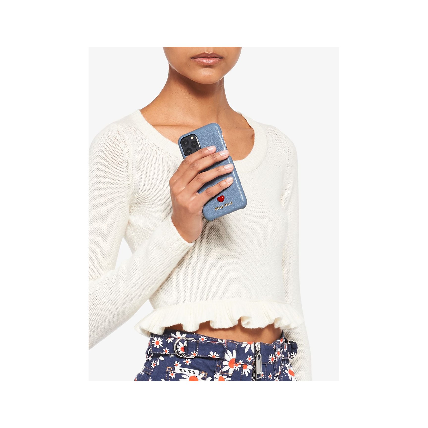 シックなカラーのスマホケースはお洒落だけれど、コーデの差し色としてハッピーカラーをチョイスするのはどうでしょう?鮮やかなライトブルーに染め上げたゴートスキンにつるりとした真っ赤なハートがキュートな「ミュウミュウ(MIU MIU)」のスマホケースは、手にする毎に気分を上げてくれること間違いなし。