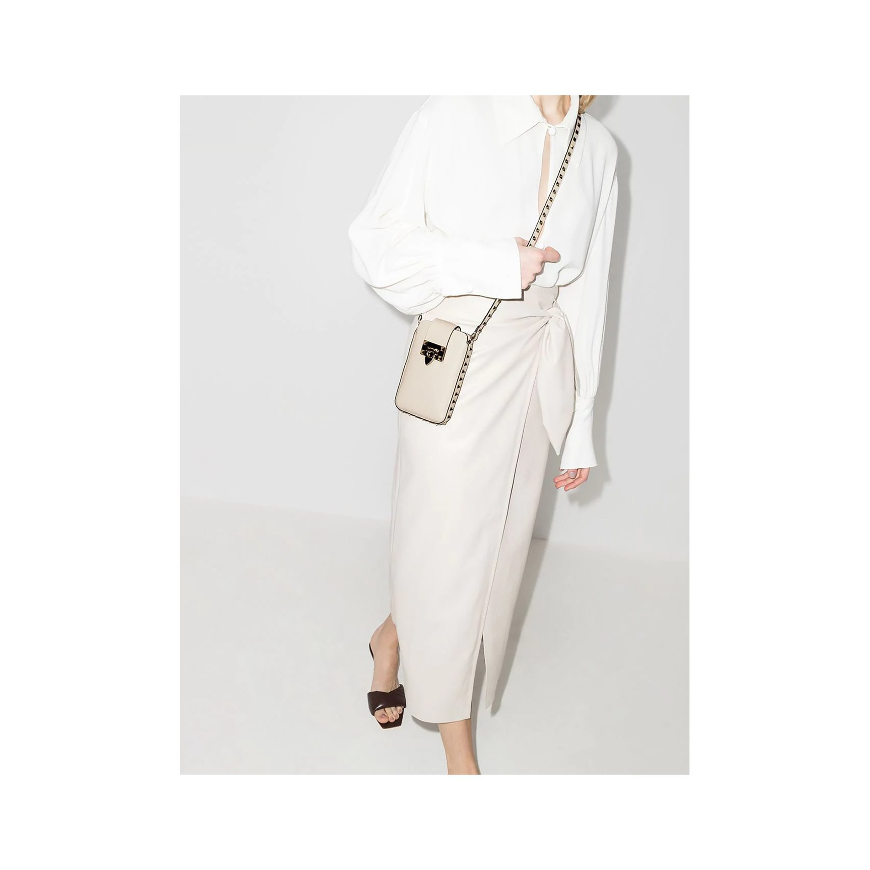 「ヴァレンティノ ガラヴァーニ(VALENTINO GARAVANI)」のシグネチャーと言えばロックスタッズですが、このロックスタッズをストラップからバッグサイド部分まで贅沢に施したスマホケースをピックアップ。上品で温かみのあるホワイトベージュのレザーにゴールドトーンの金具がインパクトを与えつつも、品の良い絶妙なバランス感が流石一流ブランド。肩から斜めがけするだけでコーデのレベルがワンランクUP。