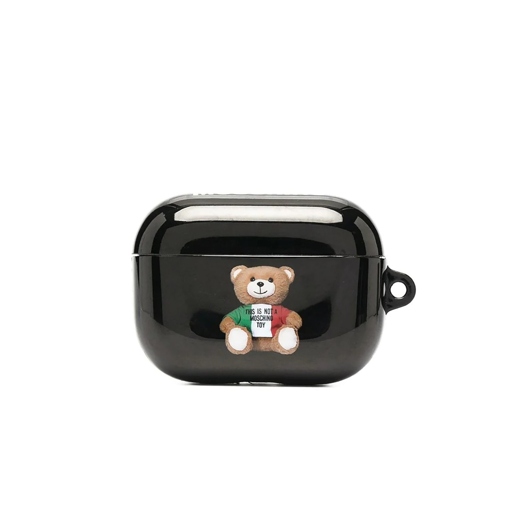 テディベアプリントのキッチュなアイテムは「モスキーノ(MOSCHINO)」から。テディベアが身につけているイタリアカラーのTシャツには"THIS IS NOT A MOSCHINO TOY"との文字が。ユーモアの効いた遊び心あるテックアクセサリーで日々の生活にスパイスを。