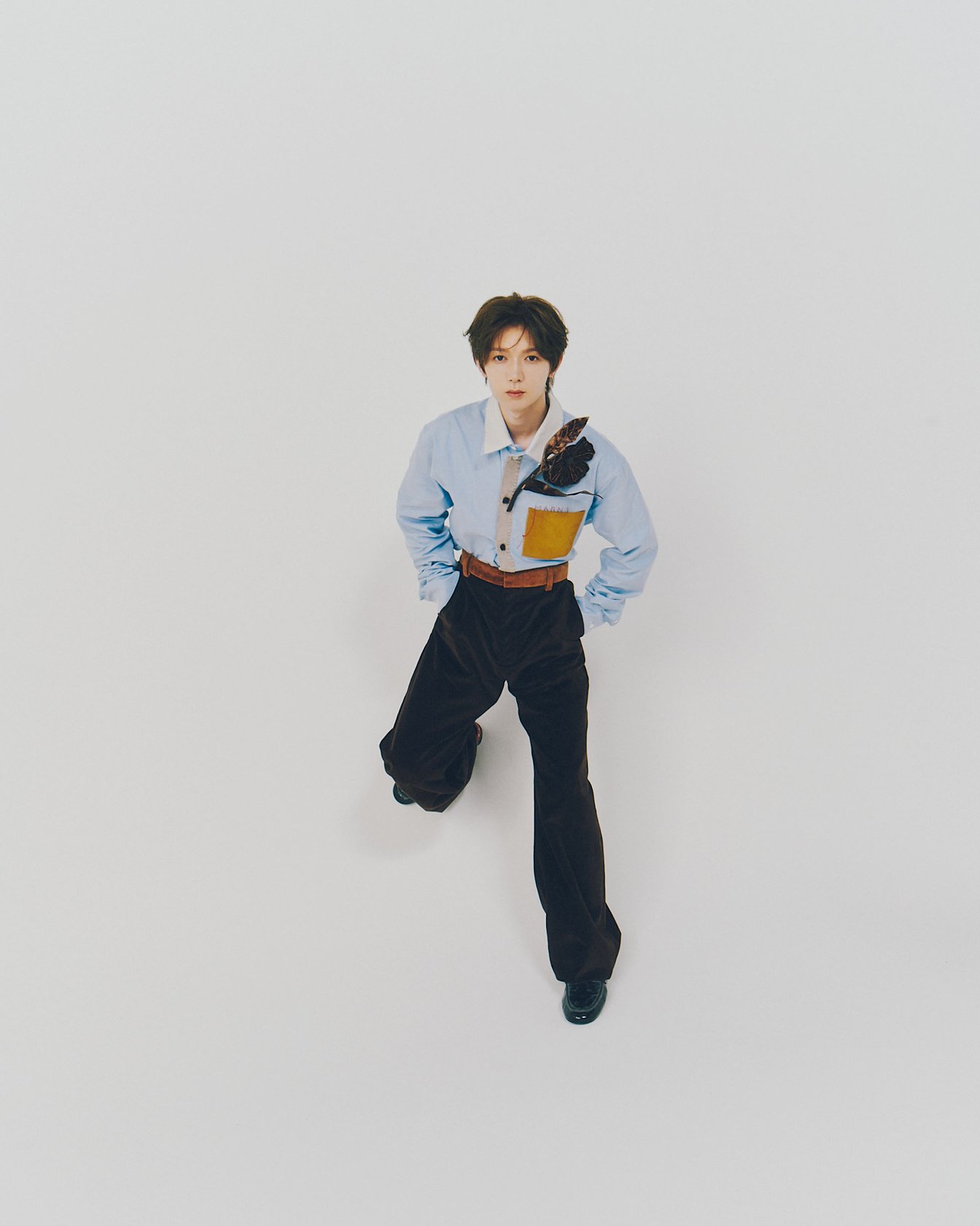 「シャツにワンポイント付けるというのは、今まで挑戦したことがなかった着こなし。自分の中に新しいスタイルを見つけた気がします。花に限らず、今後もいろいろなモチーフを楽しんでみたいですね」。