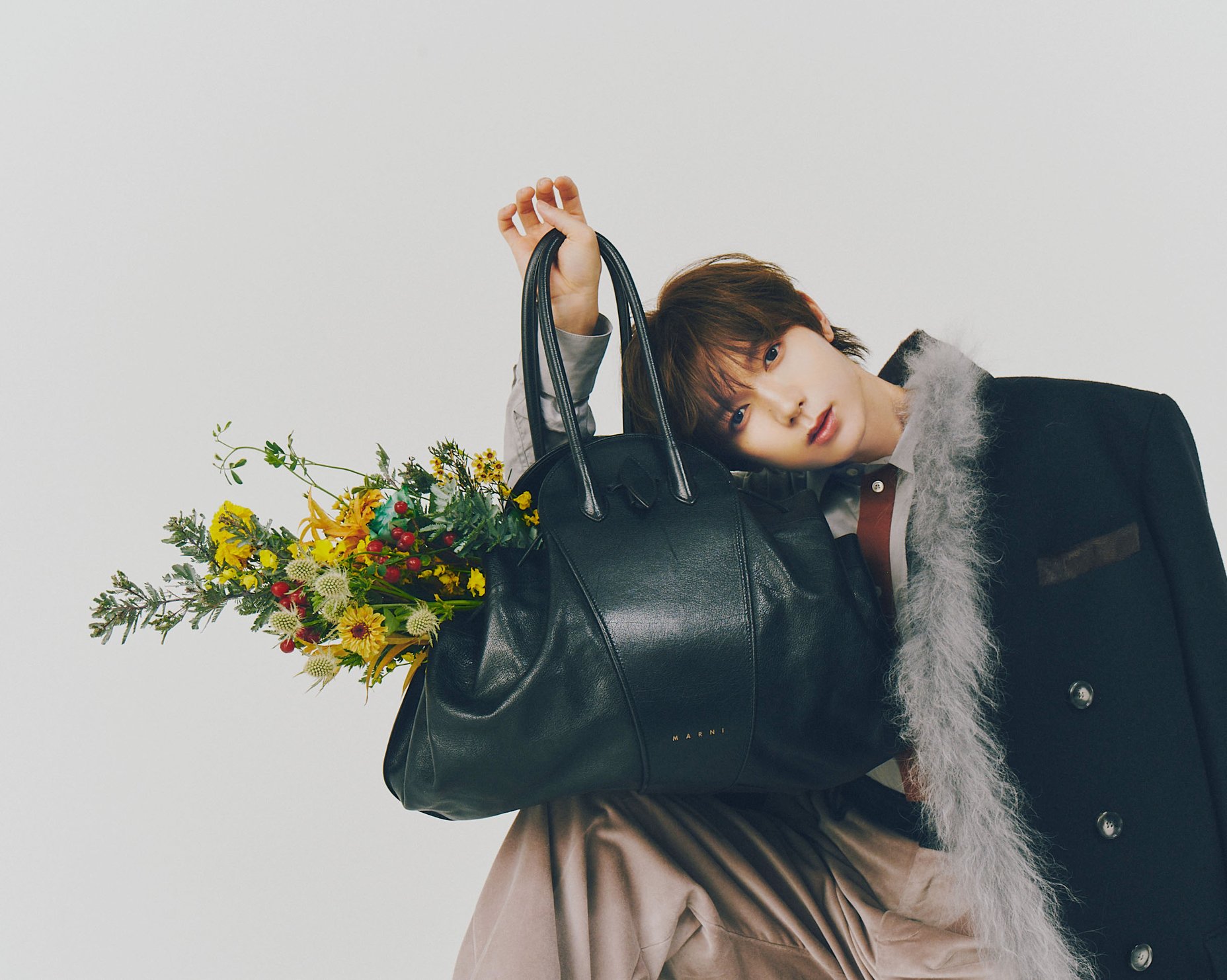 「歌やダンス同様、ファッションも自己表現の一つ」??その言葉通り、Travis Japanの七五三掛龍也さんが色彩豊かな花々を手に、「マルニ(MARNI)」2025年秋冬コレクションを纏う。チューリップを着想源とする新作バッグ「チューリペア(TULIPEA)」を携え、花のようにしなやかで生命力のあるスタイルを咲かせた。