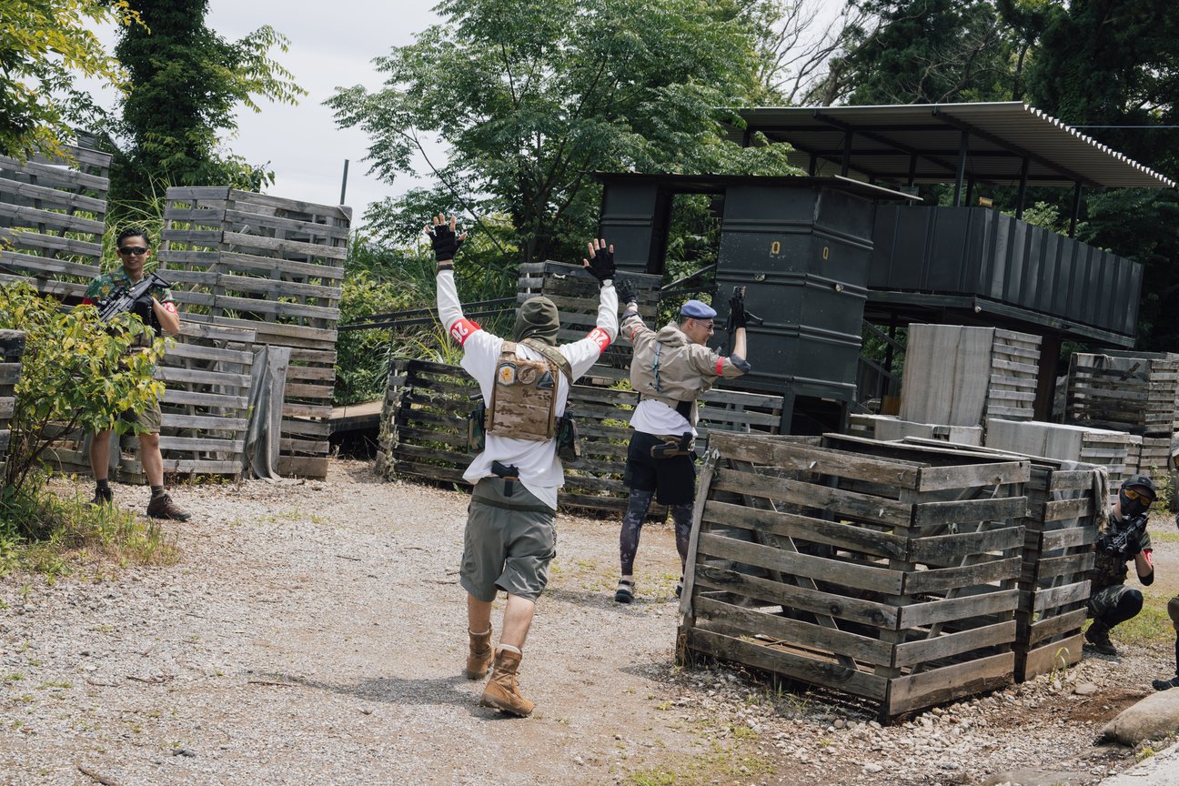 後半戦は、相手の隙を狙いながらじりじりとフィールドを攻める耐久戦に。最後には、フラッグを取って見事、メディアレンジャーズの属する赤チームが勝利! じっと息を潜めながら隙を狙って一気に攻め入る姿に、メンバー一同大興奮。サバゲーの醍醐味が感じられる瞬間を目の当たりにして、ゲームは幕を閉じました。