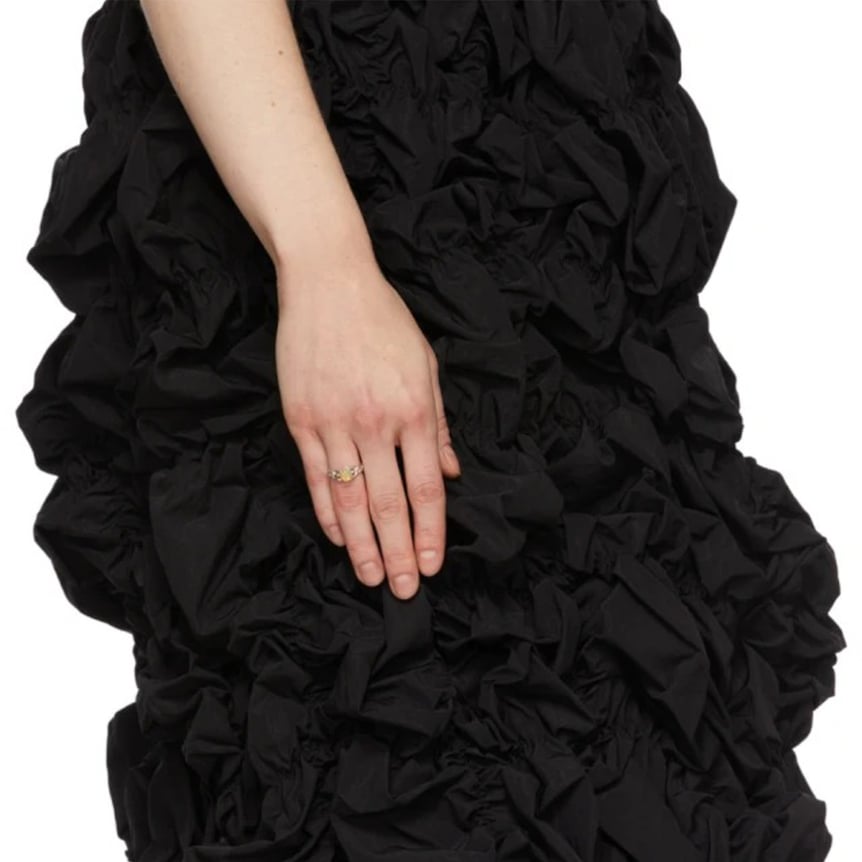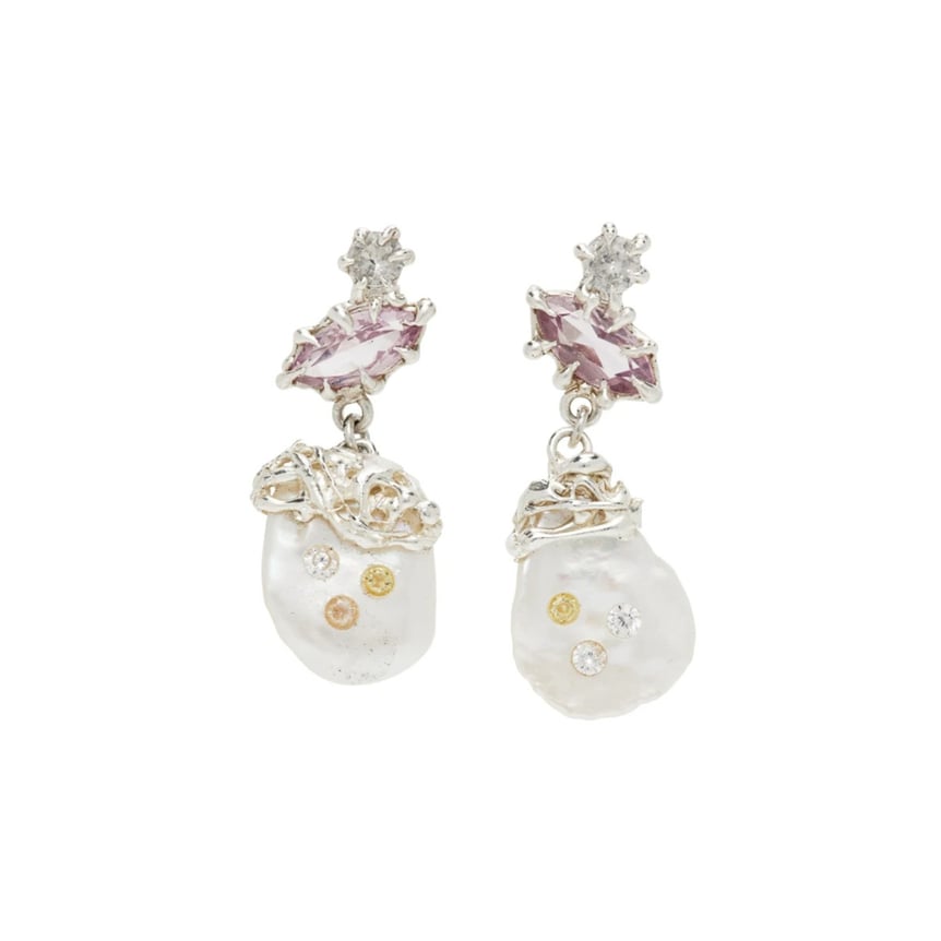メーガン?ベイカー(Megan Baker)が2018年にオーストラリアで立ち上げてスタートした「エムジーエヌ(MGN)」。 オーストラリア産の宝石のみを使用し、その大胆な色と100%リサイクルの溶融銀および溶融金を組み合わせた、遊び心のあるファンタジーなデザインが特徴です。 流れる水のような印象が特徴のメタル部分は、蝋を原型に用いるロストワックス鋳造法によって、一つ一つ異なる表情。 イヤリング、リングなど華やかなカスタムメイドの作品は、採掘が不要な人口石を含め、倫理的に入手して厳選した宝石を主役にデザイン。 アンティークなシルエットと非完璧をインスピレーションの源として制作される、かけがえのない宝物になること間違いなしなブランドです。SSENSE限定となるので早めのチェックを!