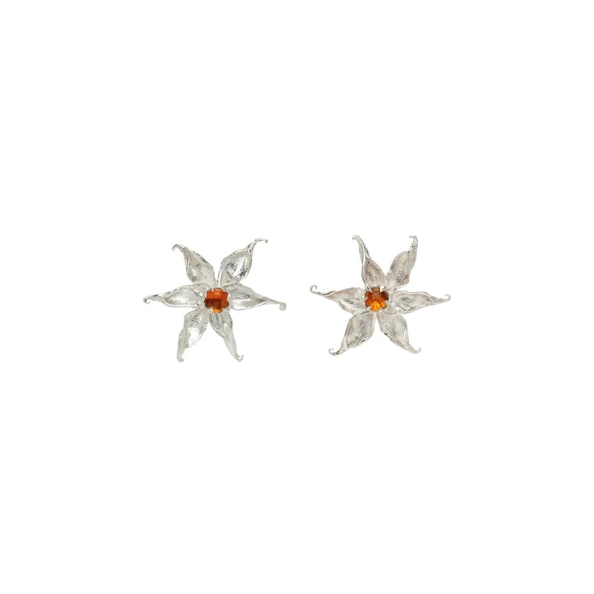 星のようなキラキラとした印象のフラワーモチーフピアス。琥珀色のジェムストーンをあしらい、耳元を可憐に仕立ててくれます。