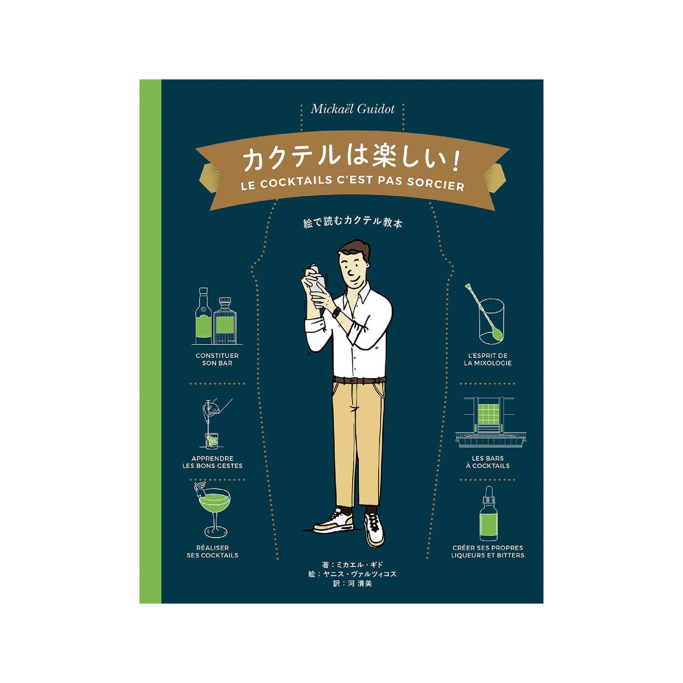 カクテルブームのフランスでベストセラーとなった入門書。先に紹介した『完全バイブル』が写真メインなのに対して、全編イラストで構成された親しみやすい一冊です。さまざまな材料を混ぜ合わせる技法「ミクソロジー」の哲学はモクテルにも応用したいところ。