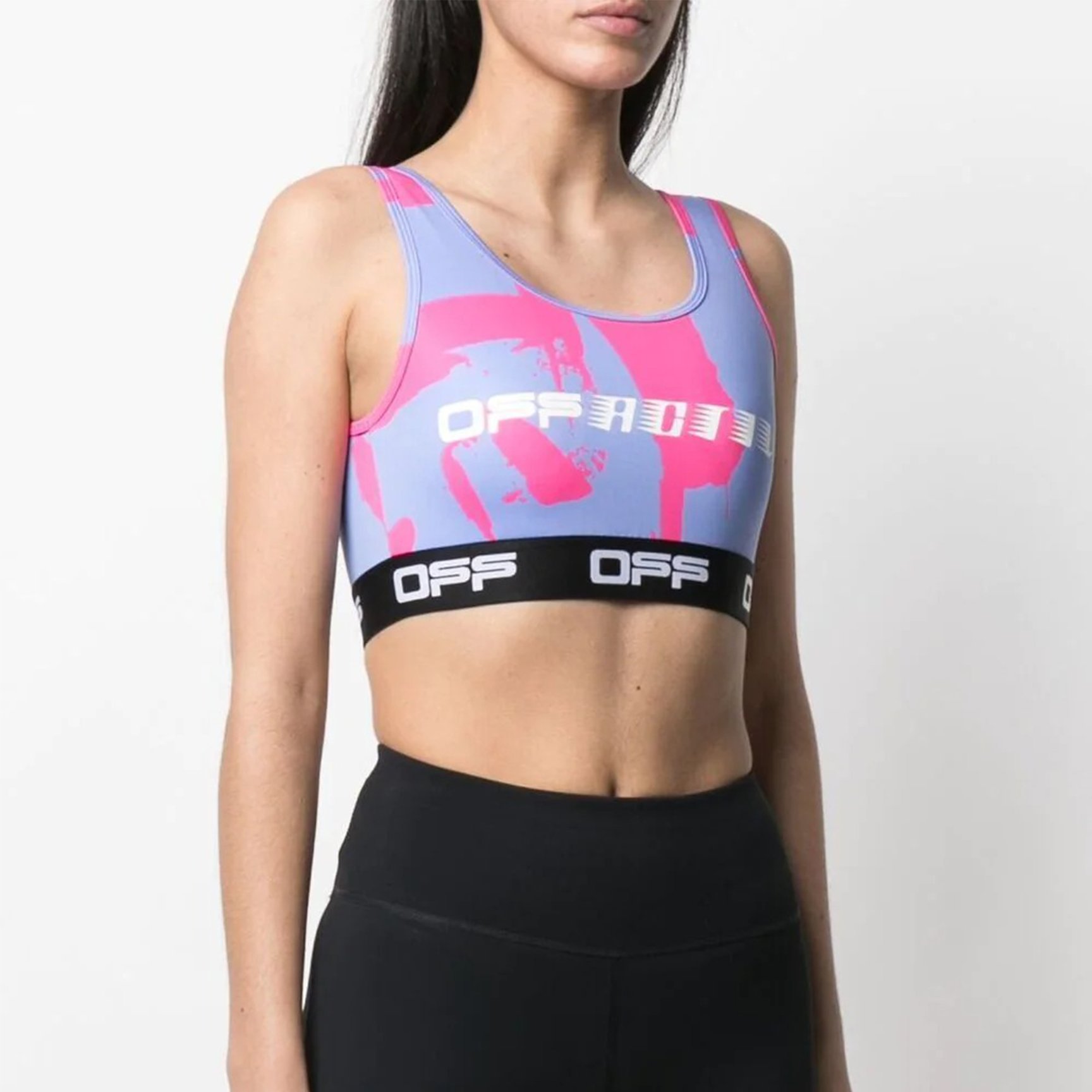 ストリートウェアでおなじみ「オフ-ホワイト(Off-White)」のスポーツブラ。伸縮性に優れたスパンデックス素材が使われているので、激しい動きにも対応してくれます。躍動感のあるロゴと、ヴィヴィッドなグラフィックデザインで、運動中もサマになります。