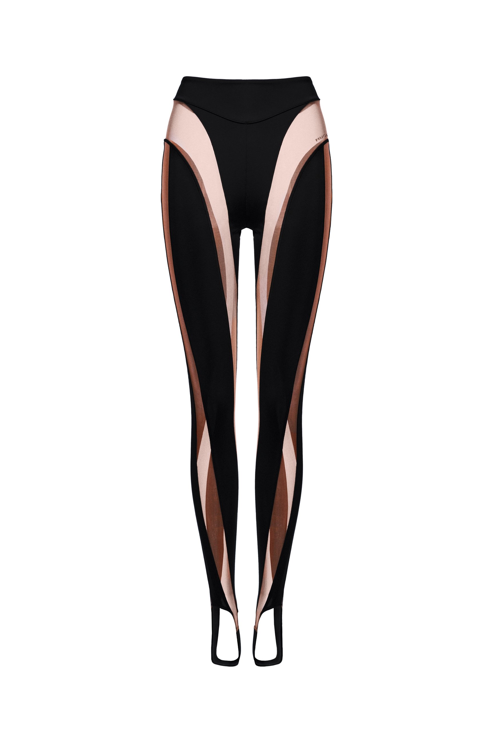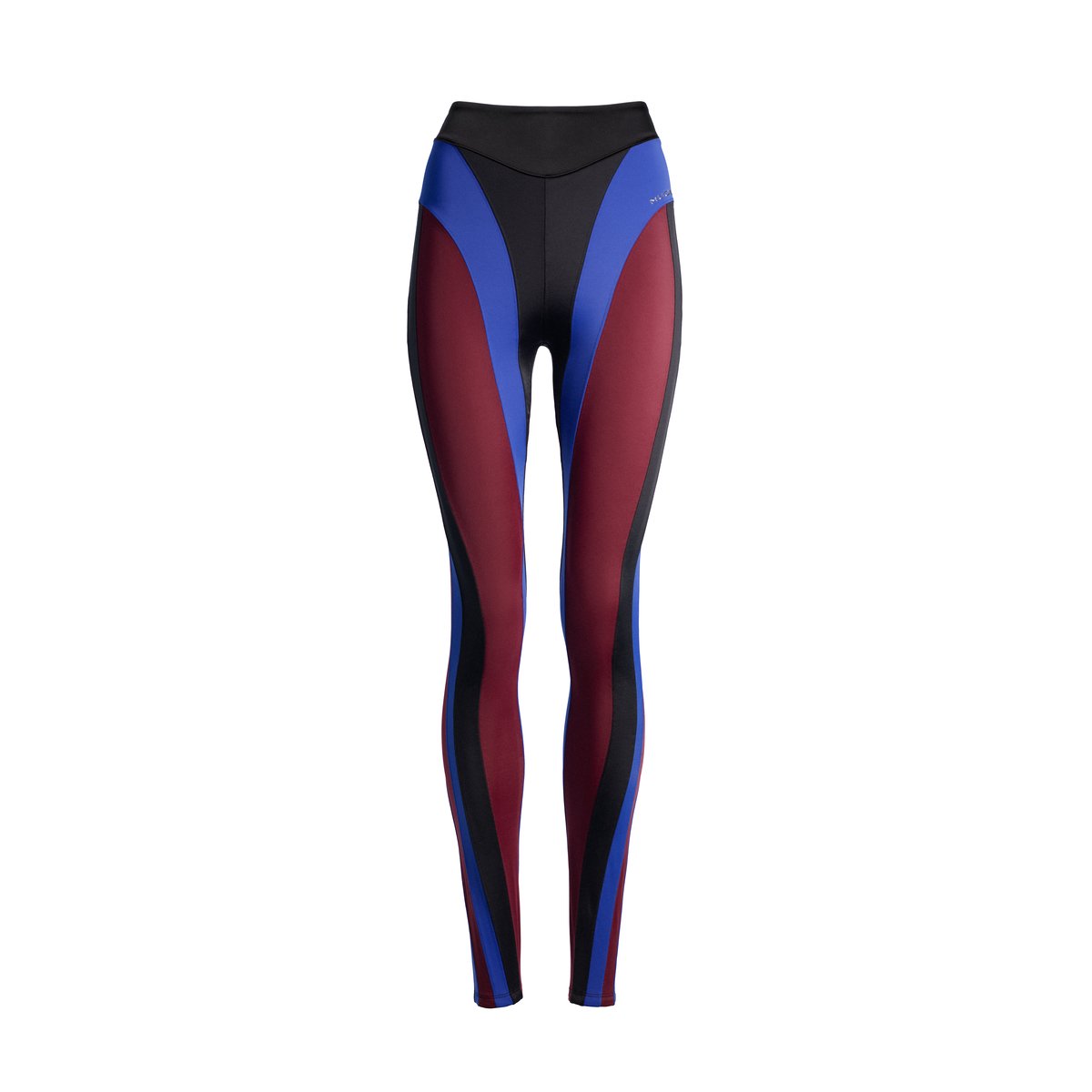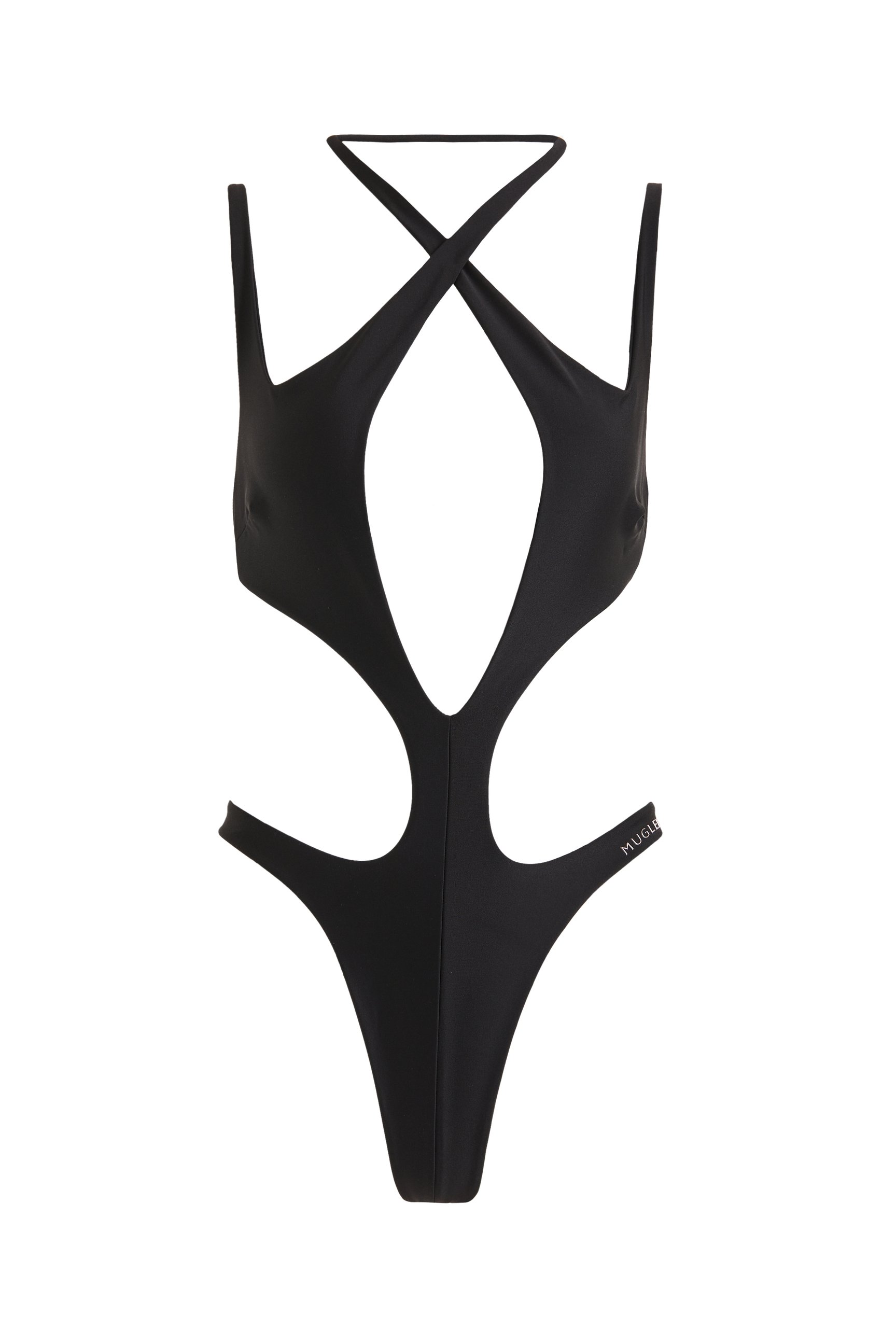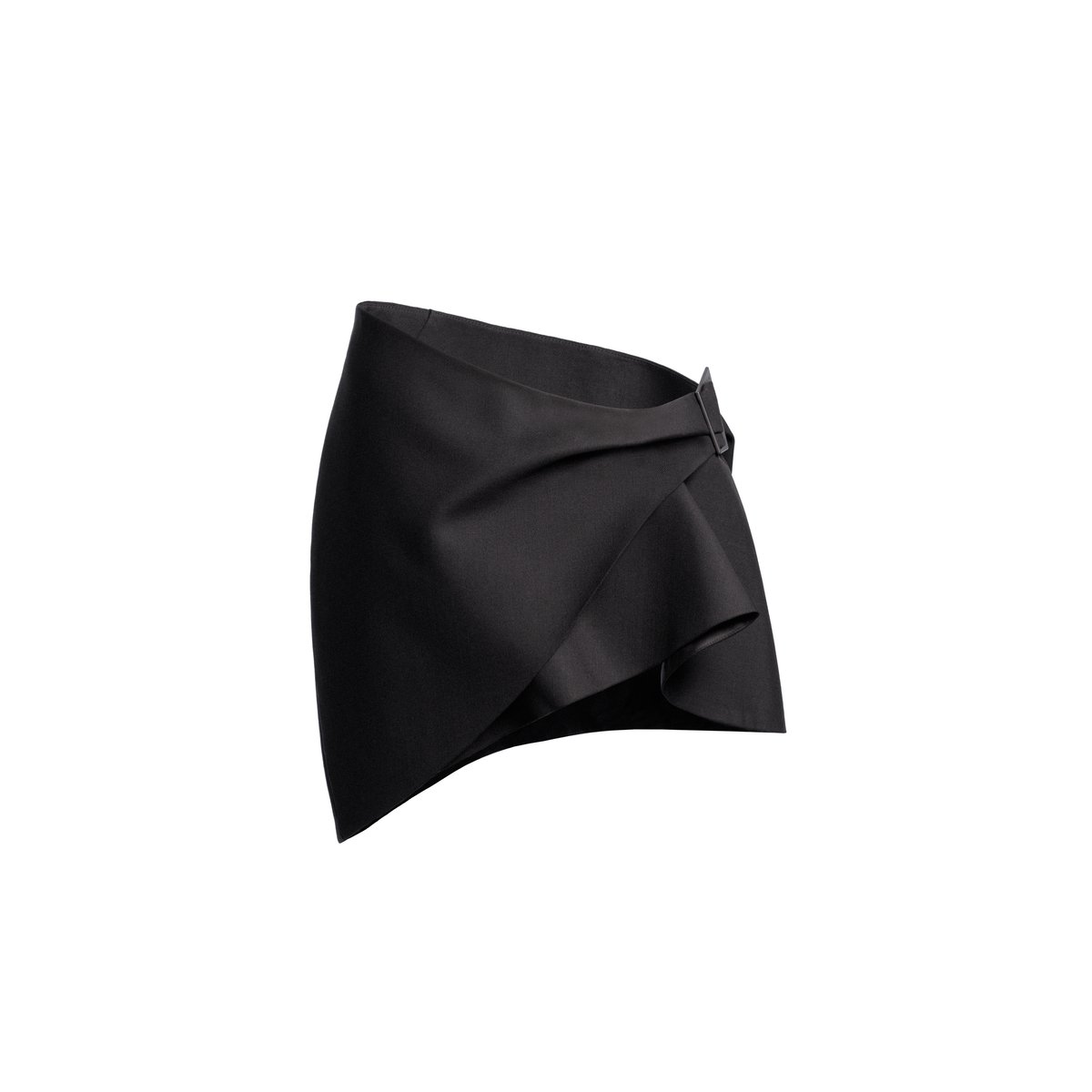 コレクションの中でも注目なのは、ミュグレーのアイコンであるデニムパンツ。ブラックナイロンが重ねられており、バックに施されたTバックのディテールは、リフトアップ効果をもたらします。ミニスカートは、長く伸びたウエストバンドをベルトのように使用することができ、ジャケットとのセットアップを楽しむことができます。