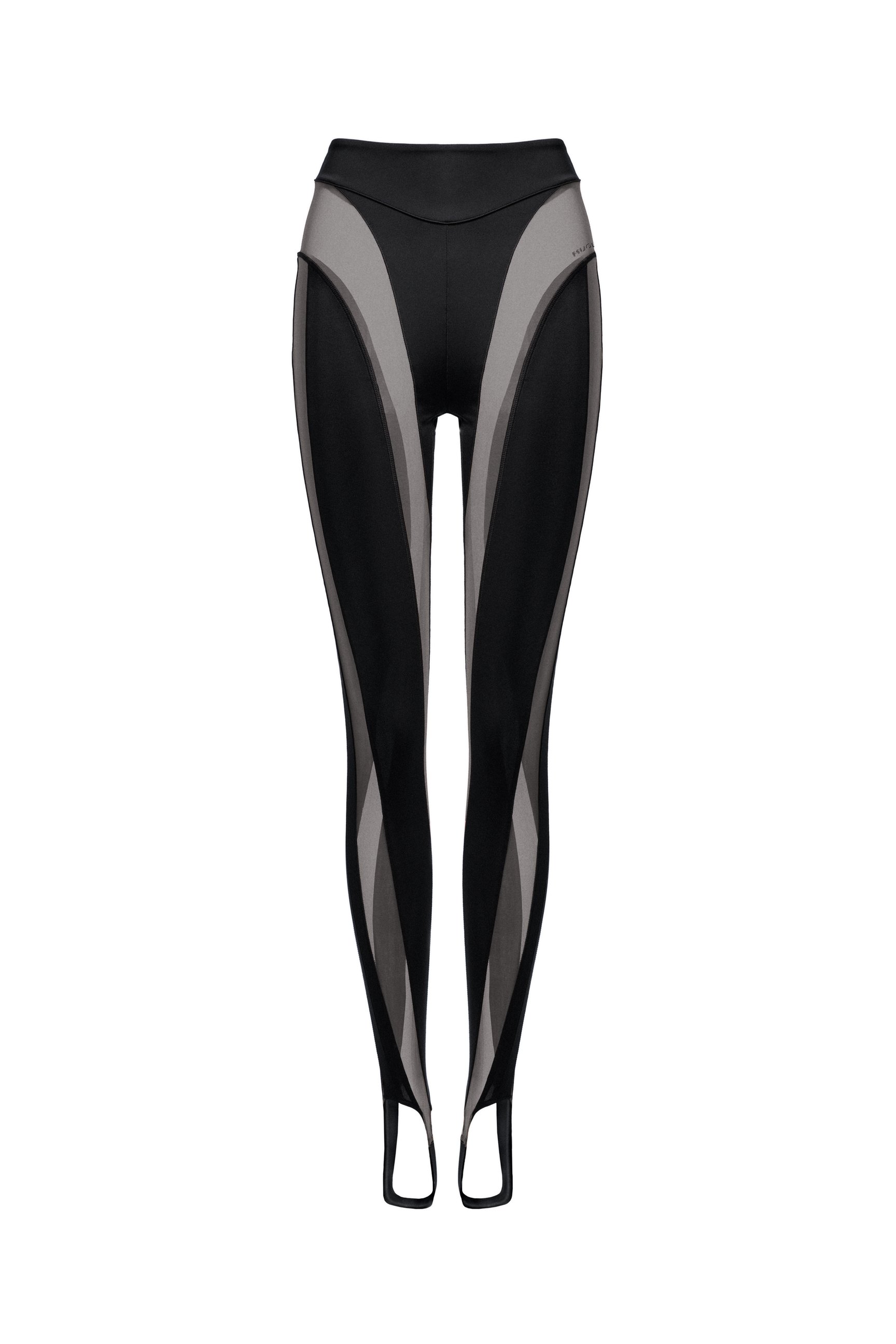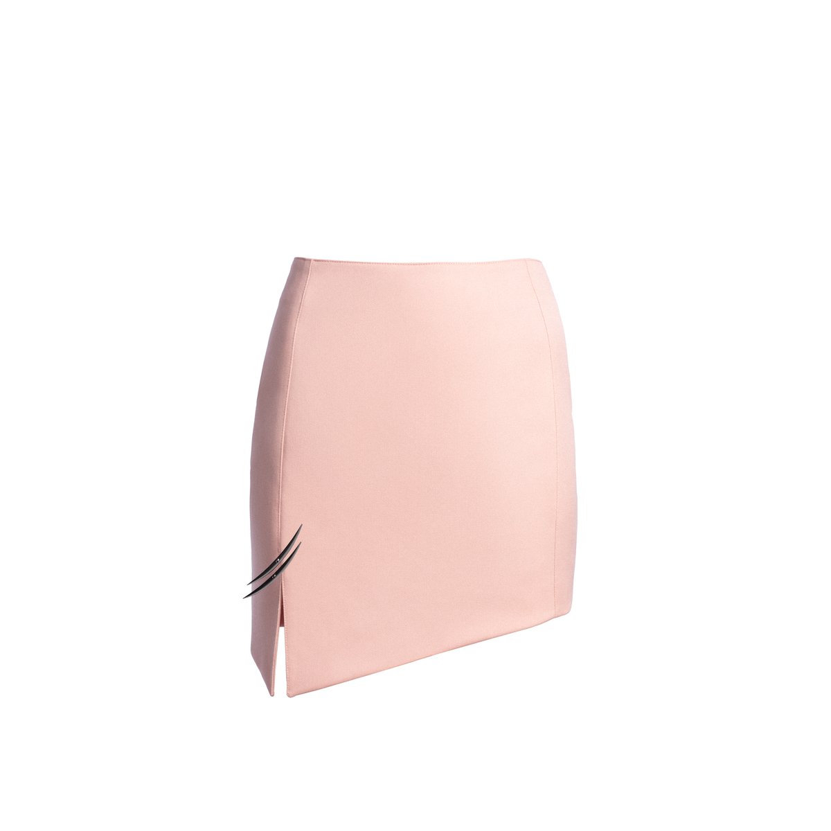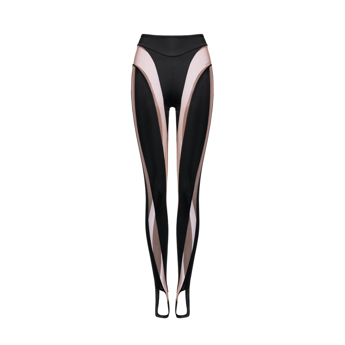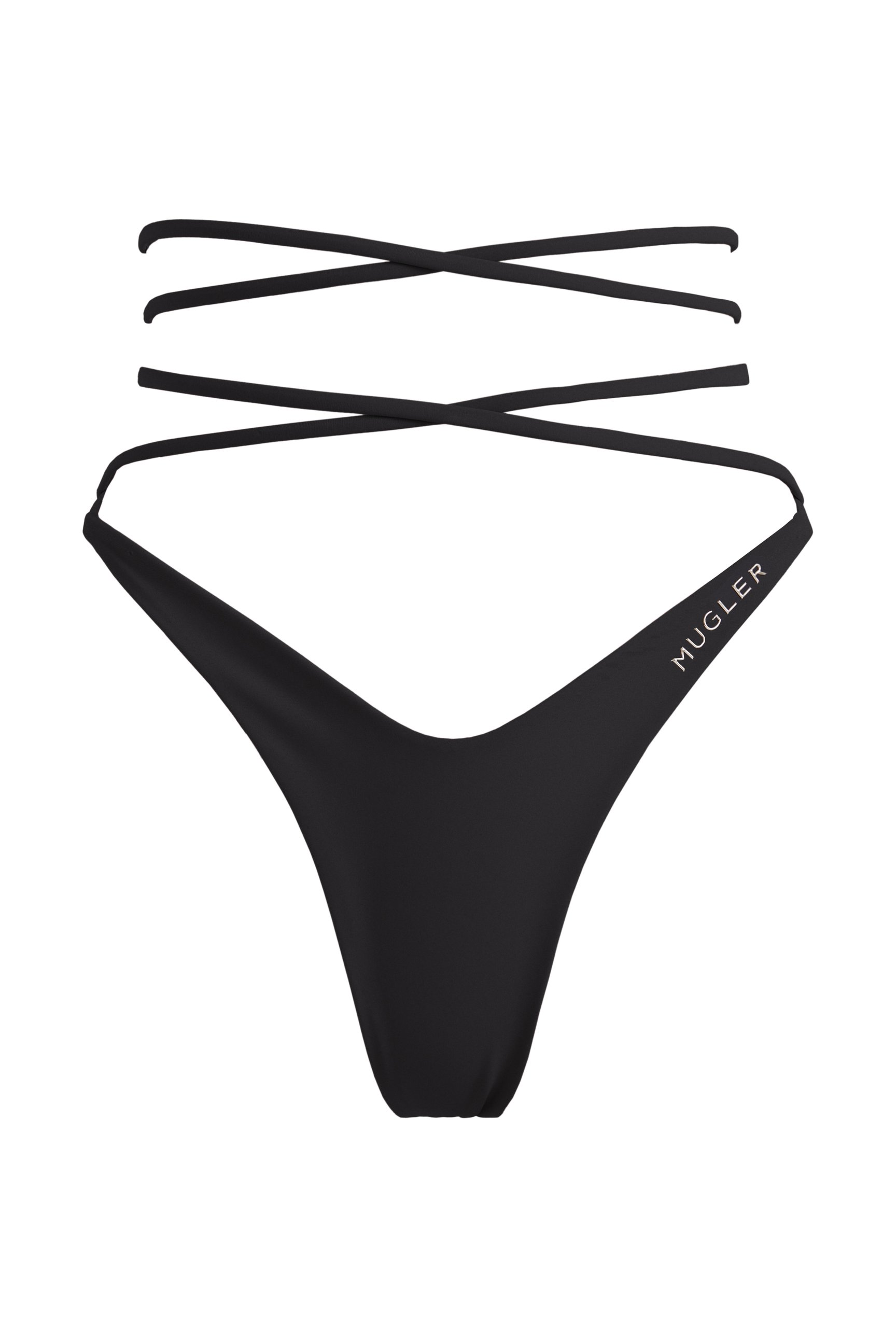 コレクションの中でも注目なのは、ミュグレーのアイコンであるデニムパンツ。ブラックナイロンが重ねられており、バックに施されたTバックのディテールは、リフトアップ効果をもたらします。ミニスカートは、長く伸びたウエストバンドをベルトのように使用することができ、ジャケットとのセットアップを楽しむことができます。
