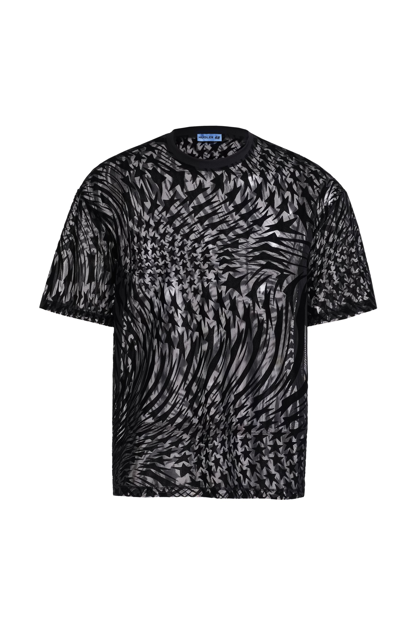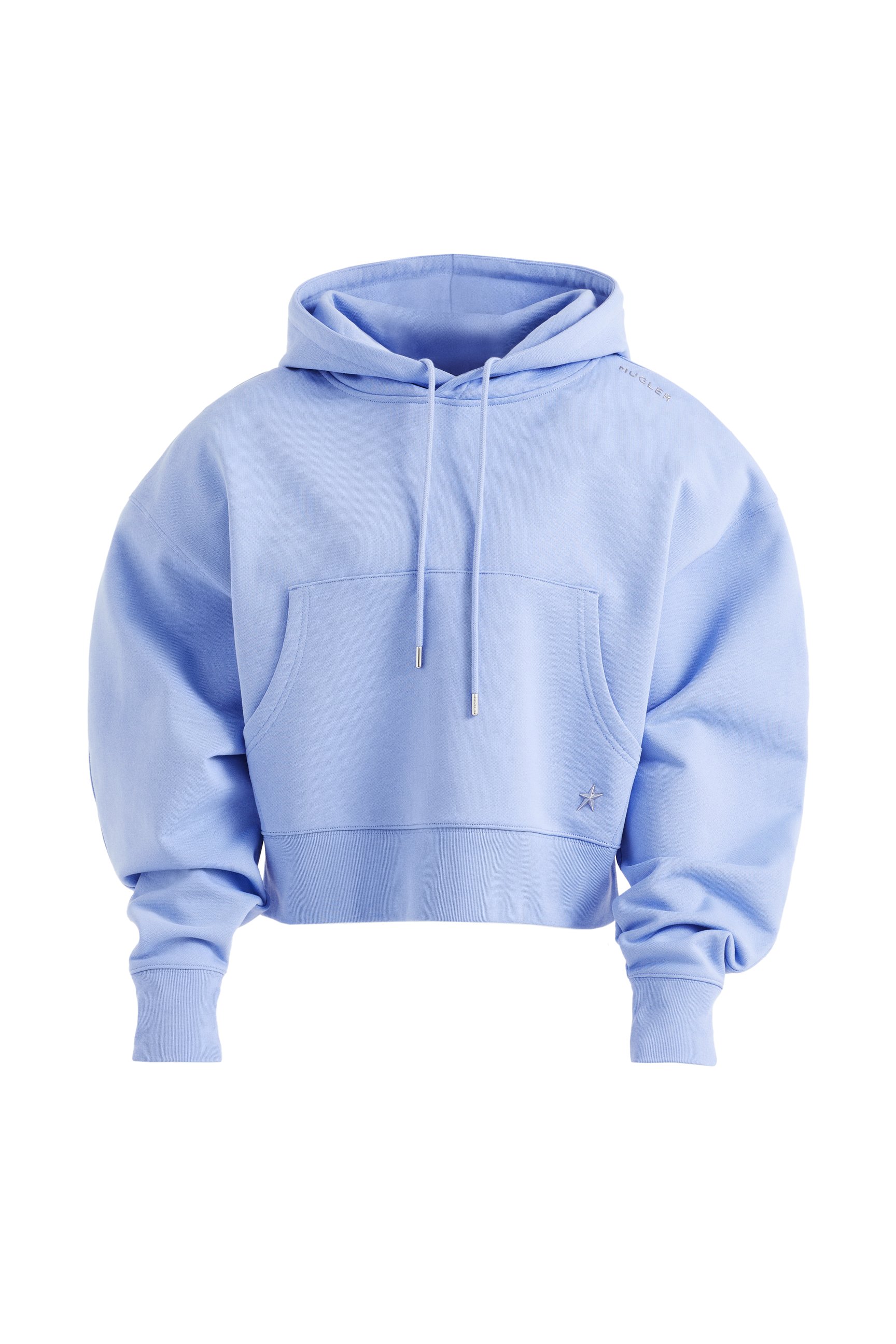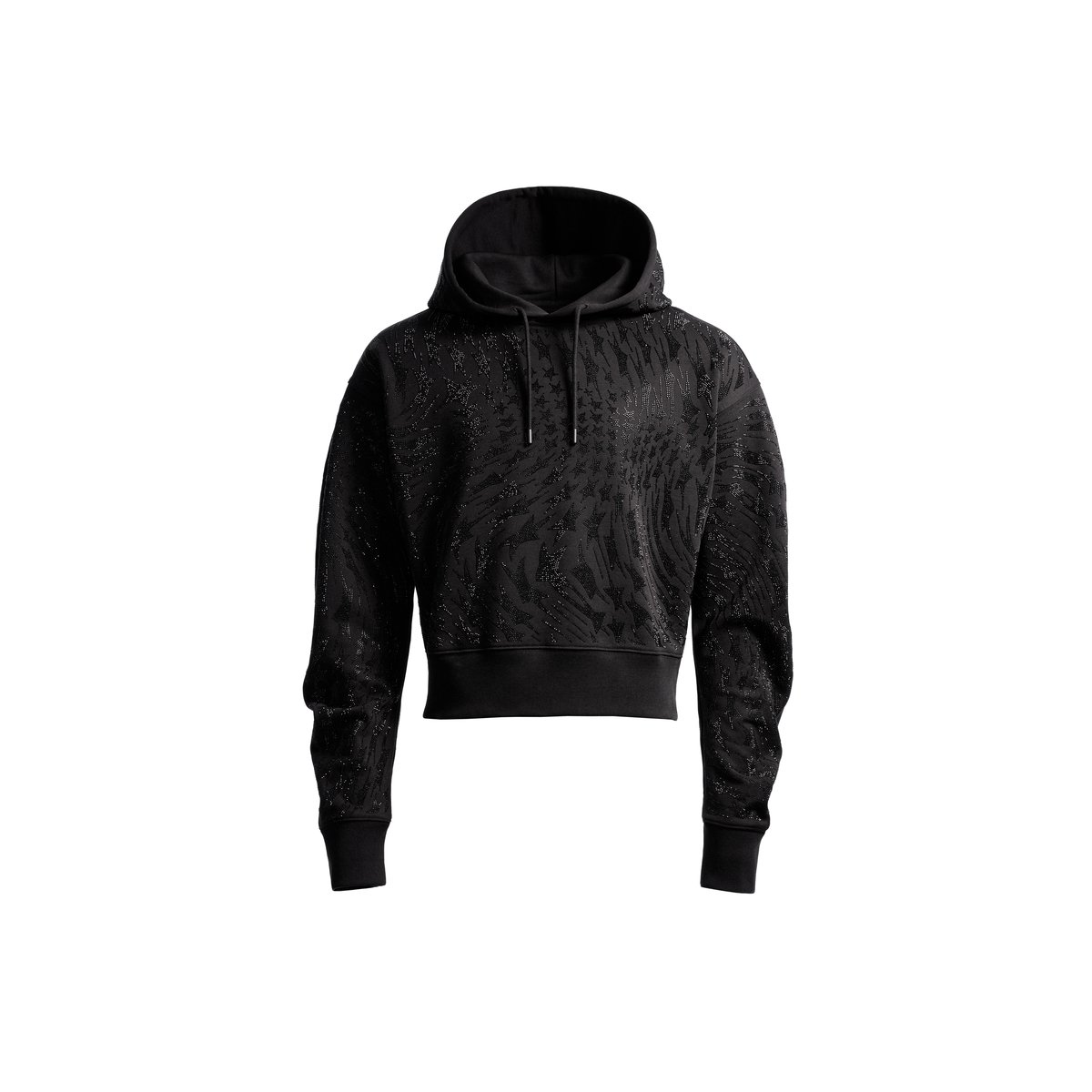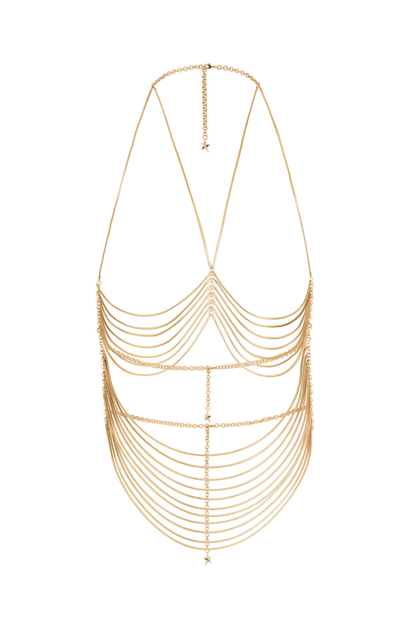 トップスでは、コルセット付きのウエストが印象的なフーディや、ラインストーンの輝く星があしらわれたパーカーをラインナップ。また、星柄のフロッキー加工とクリスタル装飾を施したシースルーメッシュトップや、コルセット付きタンクトップ、胸元をカットアウトしたライクラトップなど、フィット感のあるアイテムも展開し、レイヤードを楽しめるアイテムも数多く用意します。