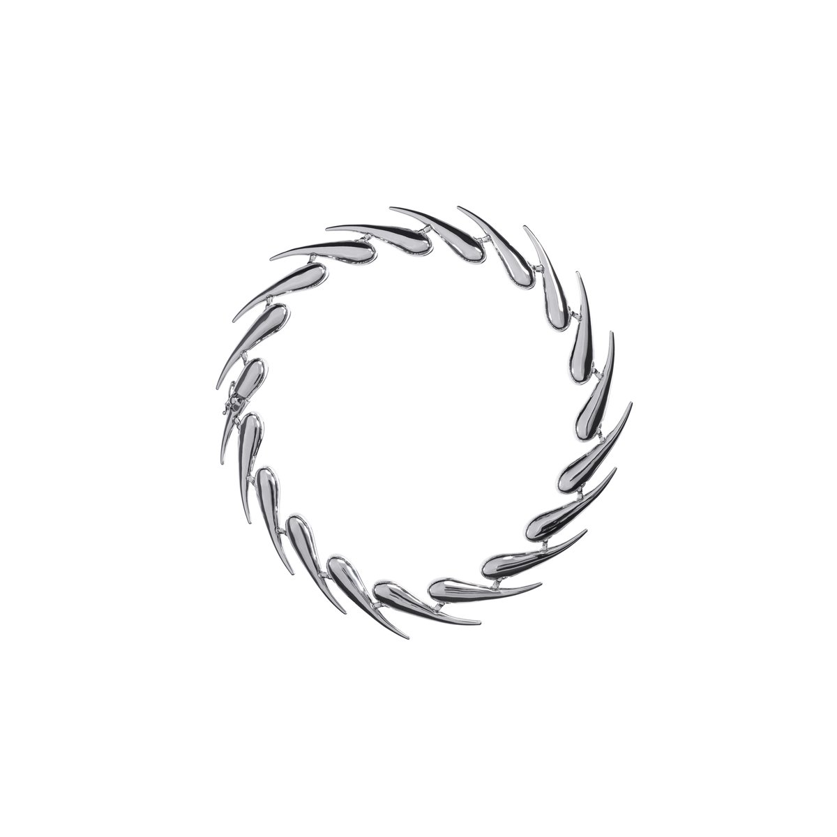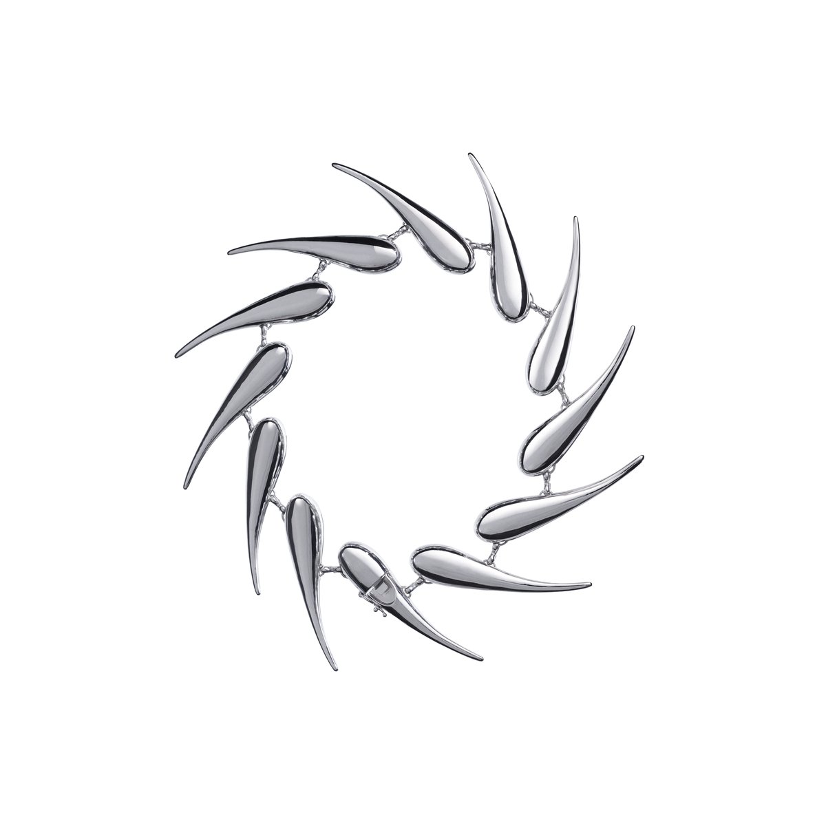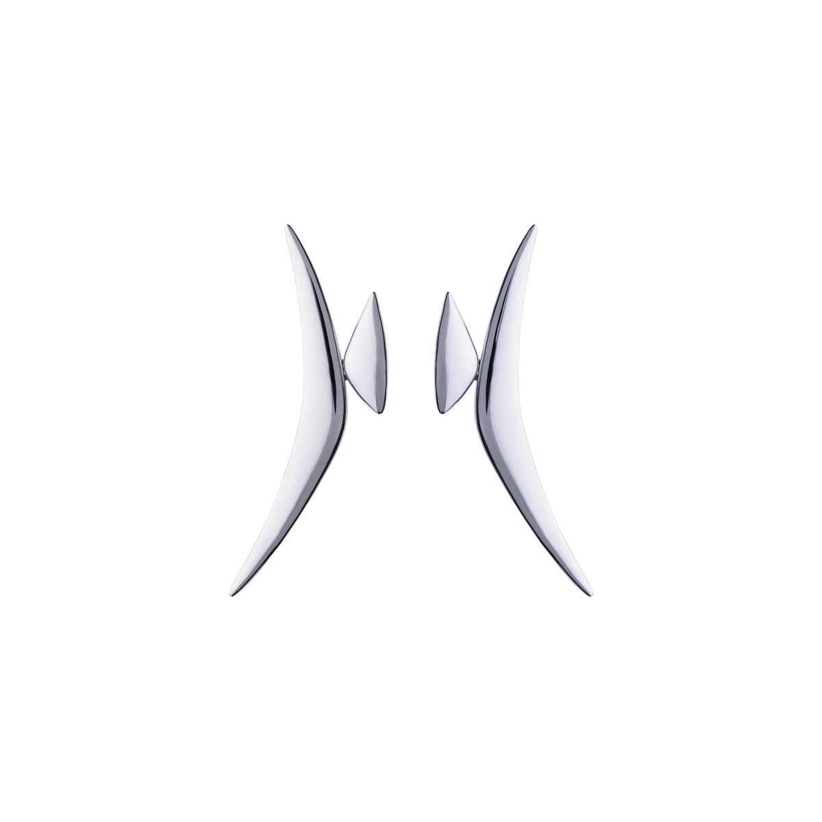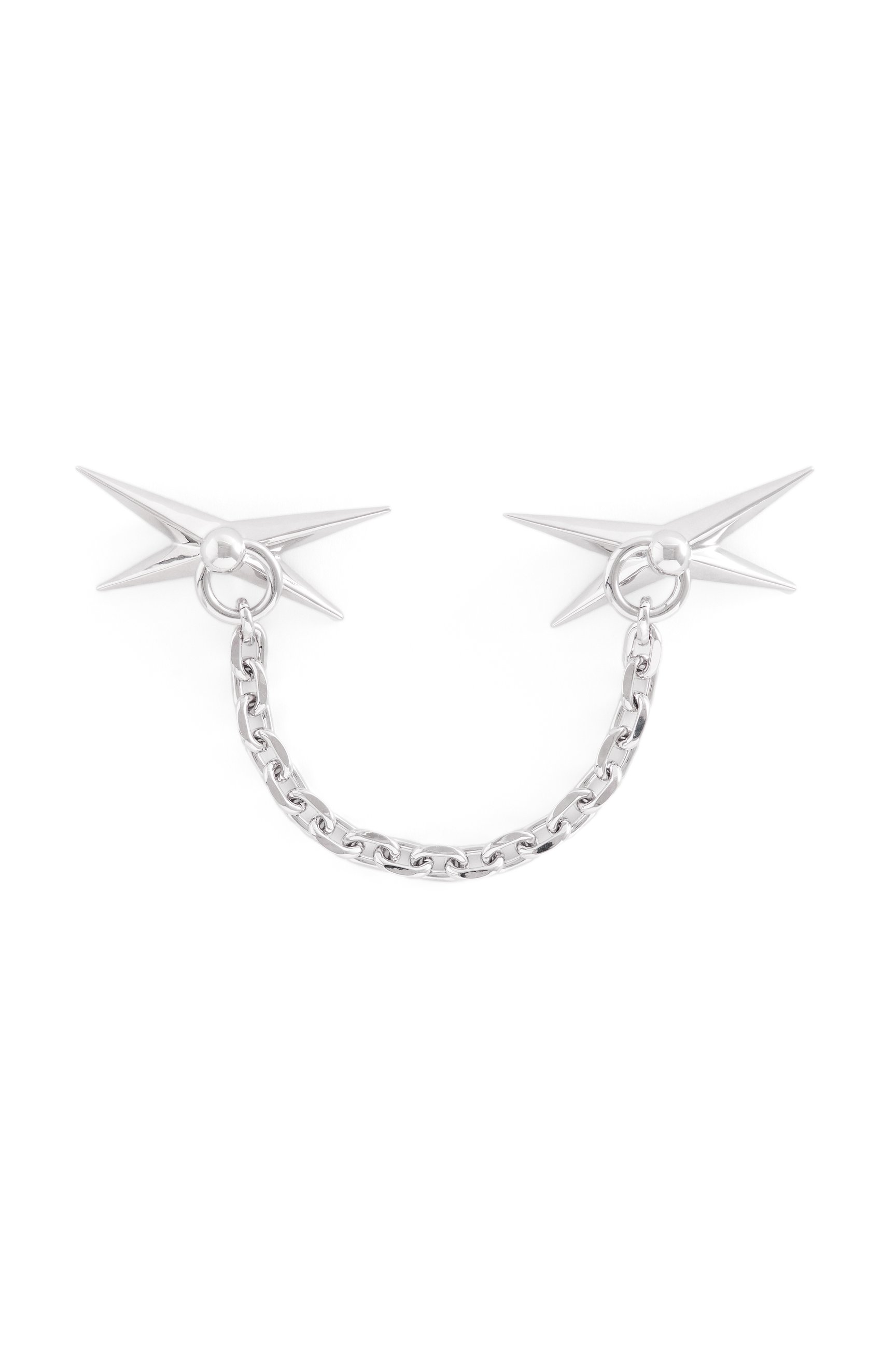アクセサリーは、性別に関係なく身につけられるようにデザイン。キーカラーであるブラックとメタリックは、クラシックなブラックと大胆な輝きを併せ持つコレクションの全体的なムードを引き立ててます。ブーメラン型のイヤリングや、大ぶりなティアドロップ型のイヤリング、カクテルリングなど、アーカイヴにちなんだものも数多く登場。キャップはレザーとコットンの2種類を展開し、ミュグレーの特徴的な星柄が渦巻いたスカーフは、オーガニックシルクを使用しています。大きな「M」の文字が入ったベルトは、ミュグレーのアイコニックなブランドロゴを思わせ、オーバーサイズのレザートートには、 ほかのアイテムにも使われている星型の金具があしらわれています。