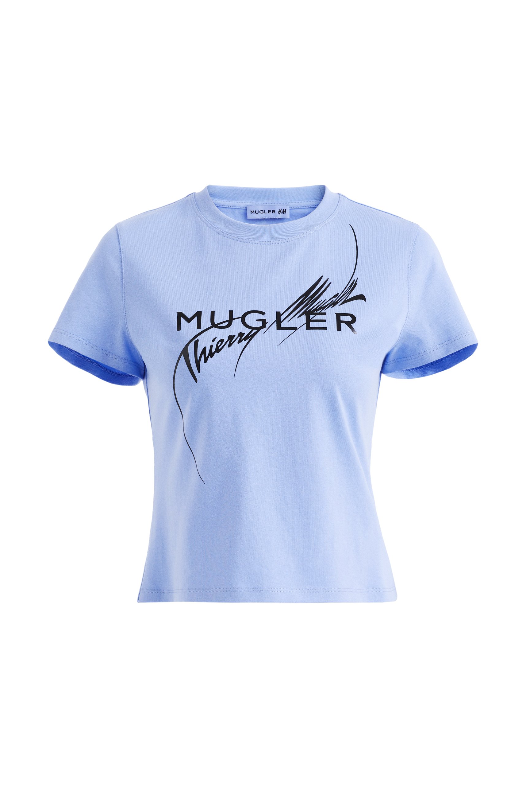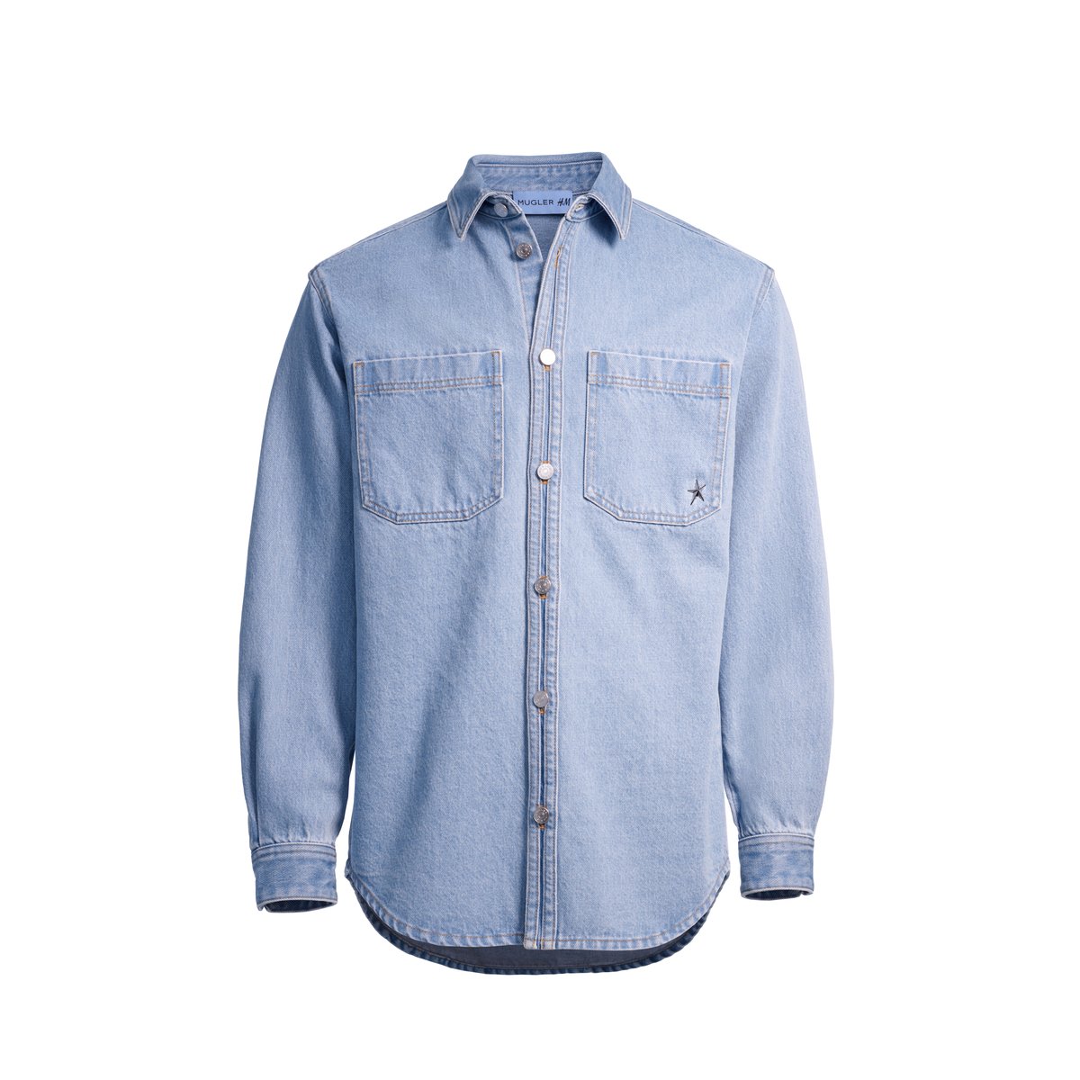 マストバイアイテムは、カドワラダー氏が好んだスタイルにちなんだ、オーバーサイズのデニムシャツと、1999年代のアイテムをリメイクしたブルボタンが付いたエレガントなターコイズブルーのオーガニックコットンシャツ。ブルボタン付きのシャツは今回新たにホワイトのカラーを加えました。また、日常使いしやすい、ミュグレーのロゴとモチーフがダイナミックに描かれたTシャツを展開します。