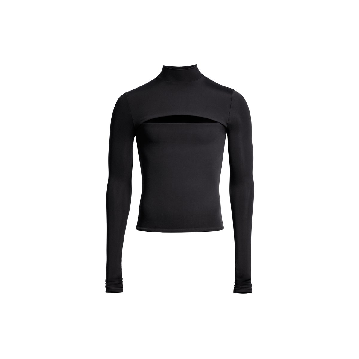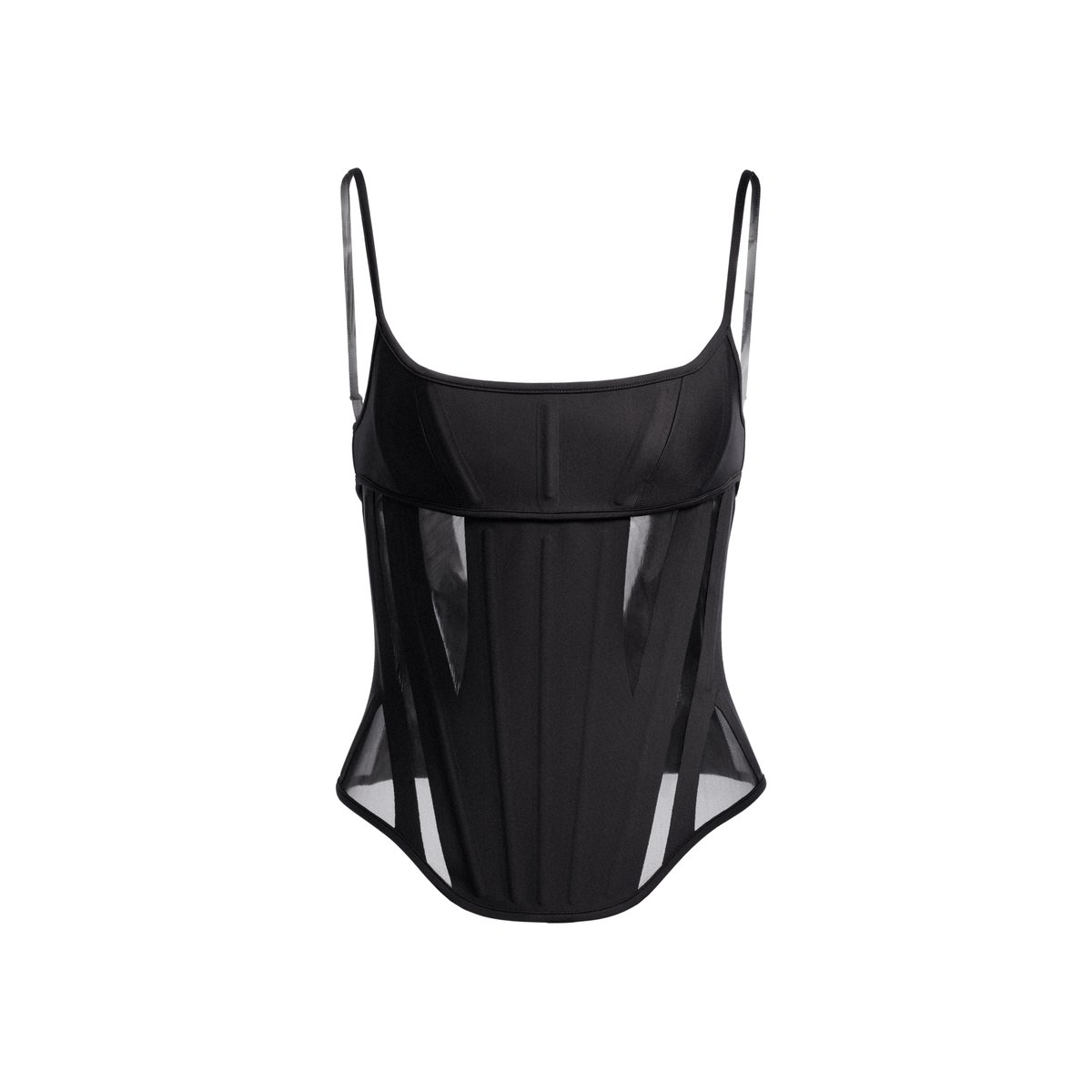 ねじれた縫い目や、筋肉や体の曲線の輪郭を描くようなパネルが施されたボディスーツやタイツが多数登場。ボディスーツやビキニは、コレクションアイテムのインナーとして着用するのもおすすめで、レザーブラは、テーラリングとのスタイリングに最適です。