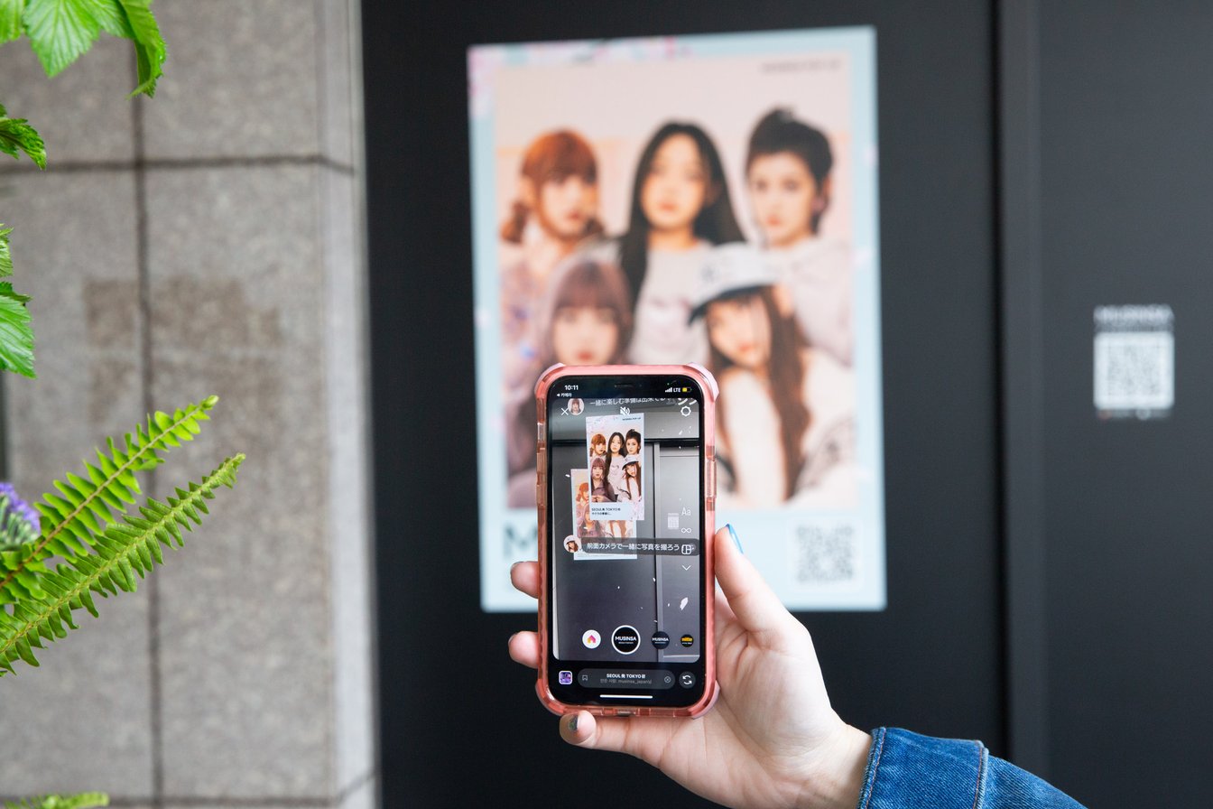 最後に入口?出口のNewJeansのポスターに再度注目。スマートフォンで読み込むとARフィルターが起動し、内蔵カメラに切り替えるとスペシャルフレームが出現、NewJeansとのセルフィーを楽しむことができるサプライズな仕掛け。"バニーズ"(NewJeansのファン名)なら必ず押さえておきたいフォトスポットですね。