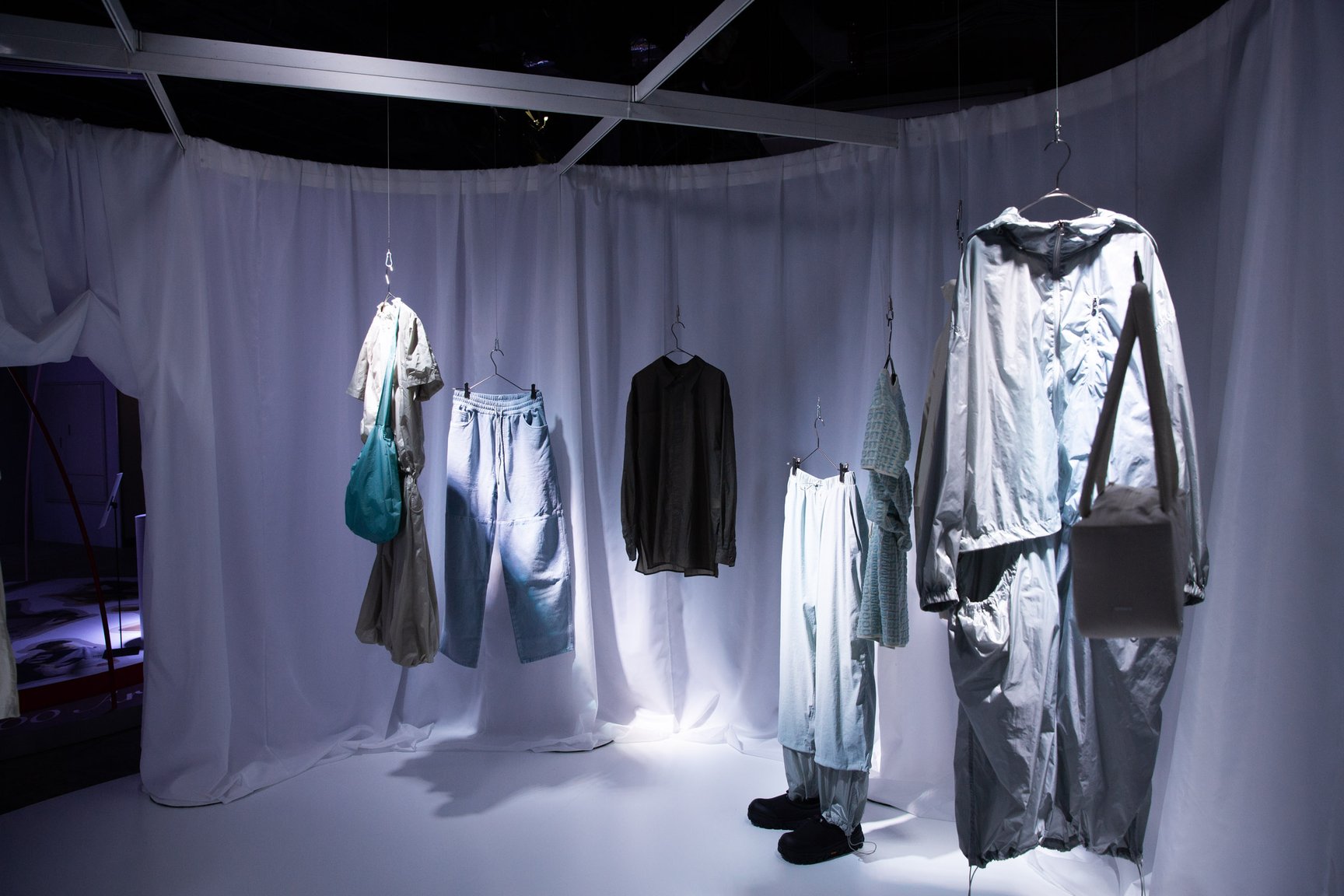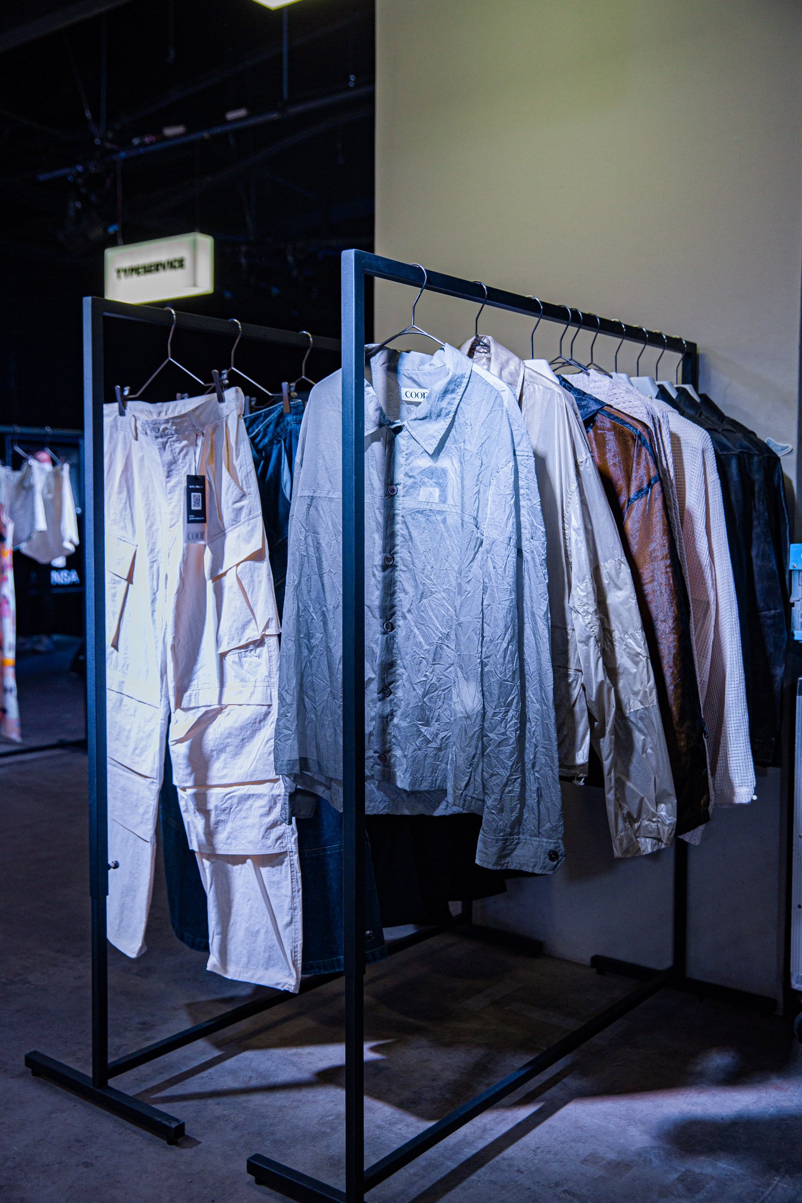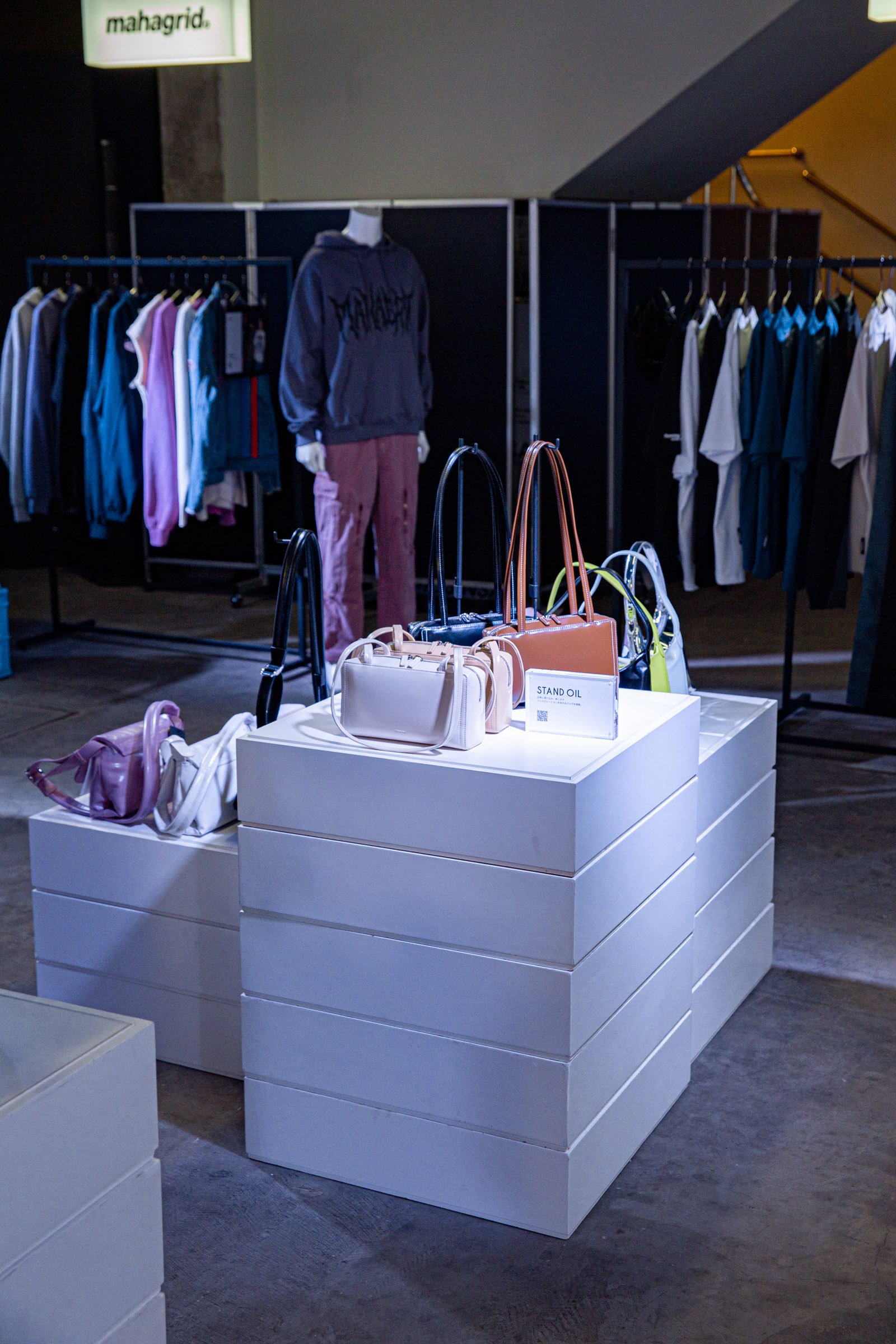 4つのエントランスをくぐると、今韓国でも話題のアップカミングな4つのファッションブランドを紹介する"Trending K"のセクションへ。フロアは「アモメント(AMOMENTO)」「サグクラブ(THUG CLUB)」「キジュン(KIJUN)」「2000アーカイブス(2000 Archives)」それぞれのブランドの世界観が作り込まれたブースとブランドをミックスしたディスプレイで、K-ファッションの最先端を感じられる空間にキュレーションされています。