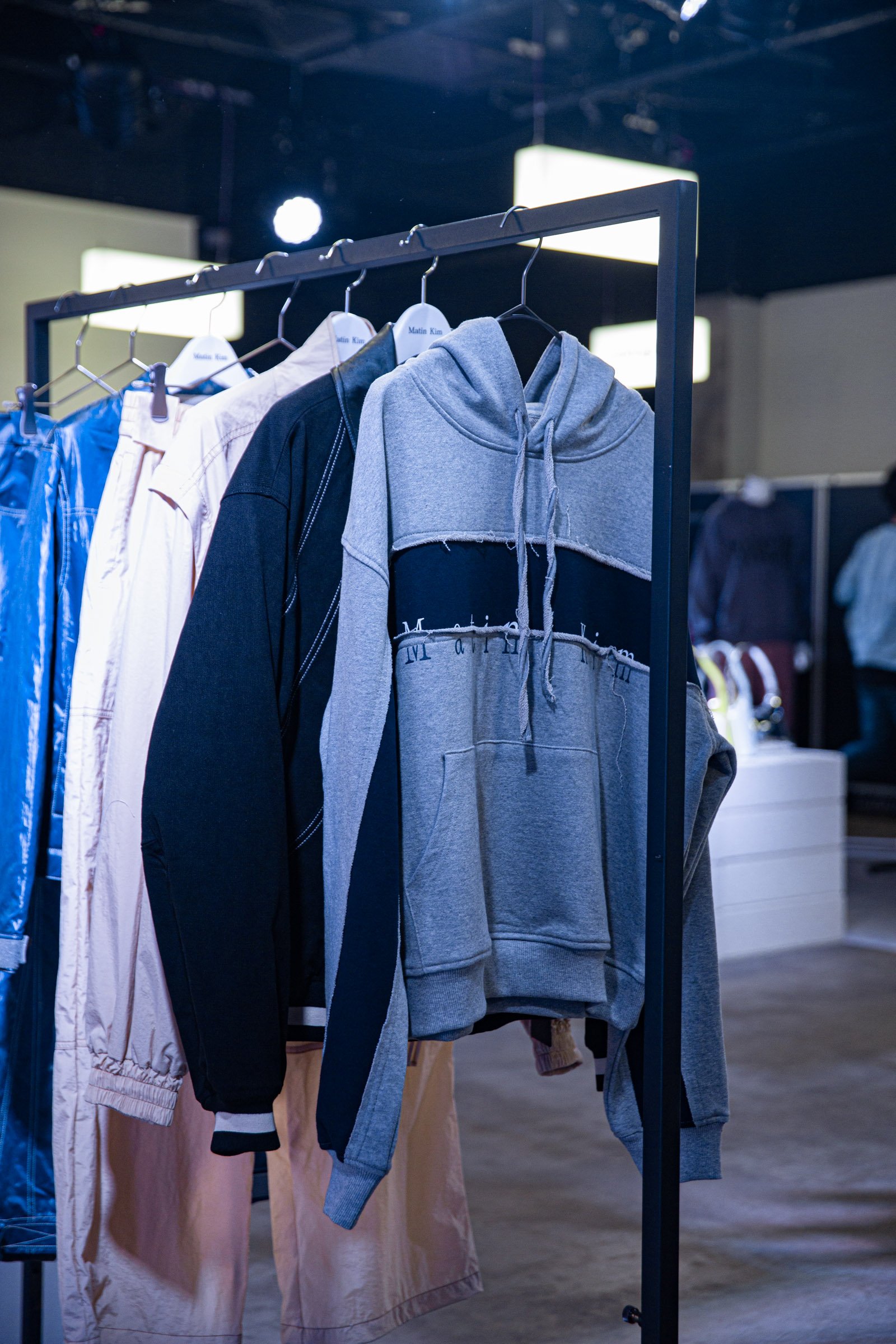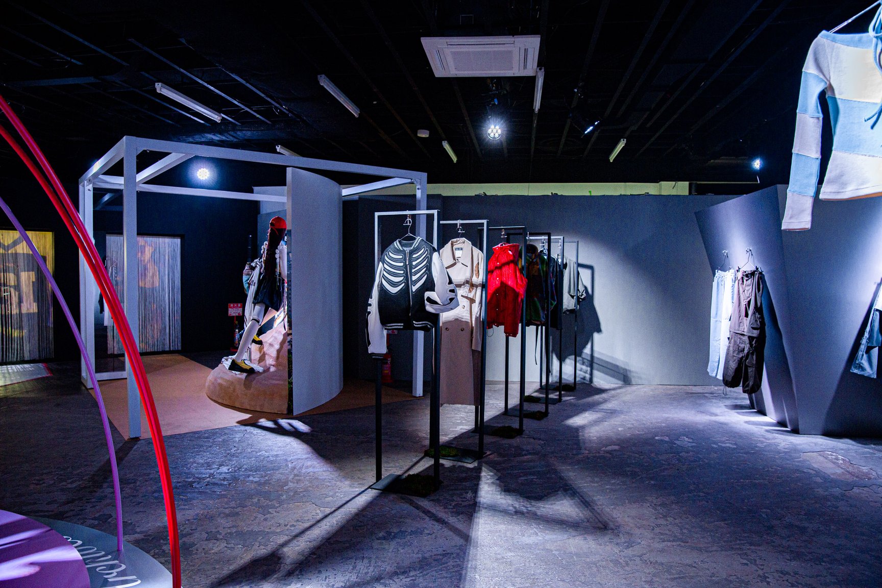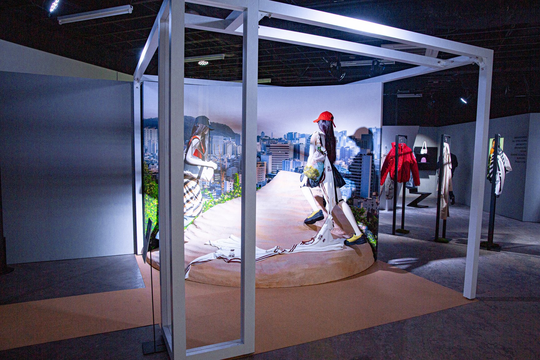 4つのエントランスをくぐると、今韓国でも話題のアップカミングな4つのファッションブランドを紹介する"Trending K"のセクションへ。フロアは「アモメント(AMOMENTO)」「サグクラブ(THUG CLUB)」「キジュン(KIJUN)」「2000アーカイブス(2000 Archives)」それぞれのブランドの世界観が作り込まれたブースとブランドをミックスしたディスプレイで、K-ファッションの最先端を感じられる空間にキュレーションされています。