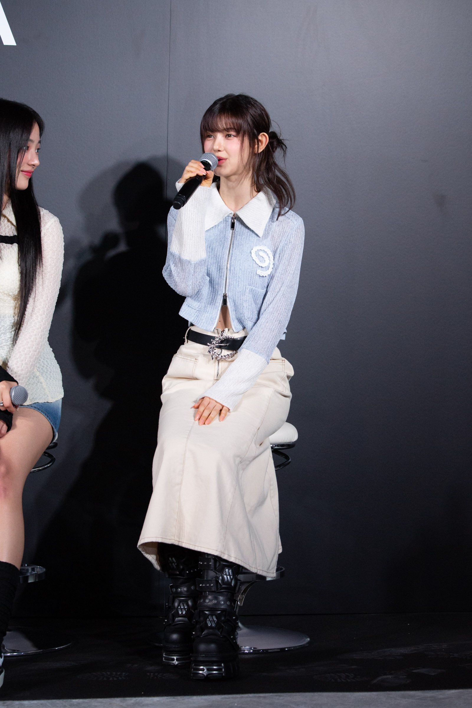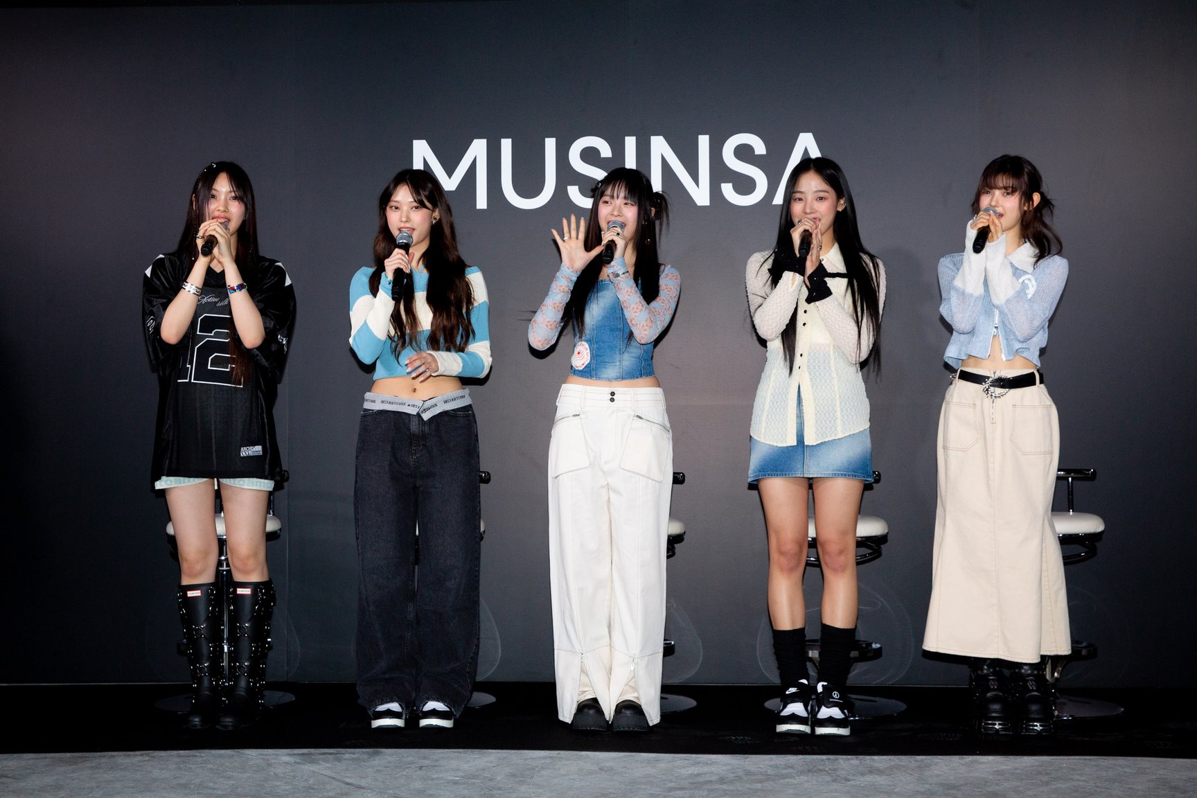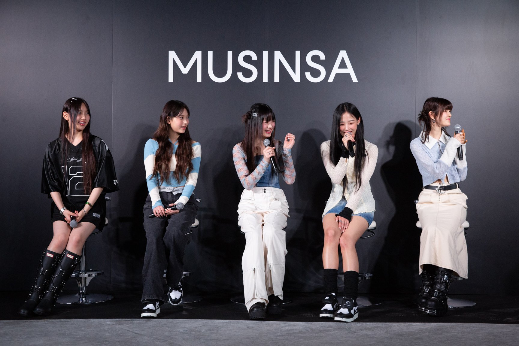 会見ではMUSINSAで取り扱いのあるブランドで組まれたコーディネートを披露し、ファッションポイントなどのQ&Aに回答。メンバー内でキーリングを集めるのがブームと明かすほか、覚えたての日本語に「ひまわり」「さくら」「お花見」などを挙げ、会場も思わずほっこりとした空気に。ストアの外で彼女たちの姿を一目見ようと多くの人だかりができるなど、デビューから1年も経たずして日本での注目度も高まっています。