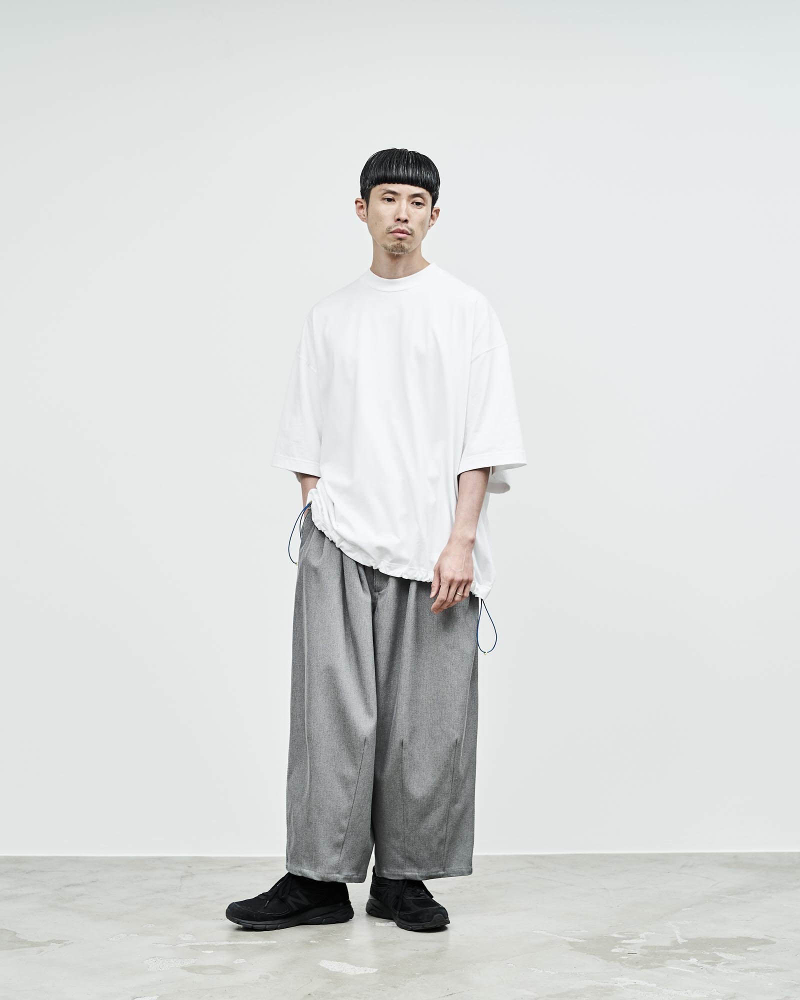 「グラフペーパー(Graphpaper)」のファブリックを「イズネス(is-ness)」のプロダクトで表現するコラボレーション企画「is-ness for Graphpaper」から、新作としてTシャツ(1万9800円)とバルーンパンツ(3万800円/いずれも税込)が登場します。オーバーサイズTシャツにスピンドルをつけ、自由にシルエットの調整が可能なイズネスの「BALOON T-SHIRT」の素材を一新し、インド産の超長綿を甘撚りにした糸で度目を詰めて編み上げた天竺で製作。イズネスの定番モデルの「BALOON EZ PANTS」には、強撚糸によるドライなタッチと光沢が特徴のアーカイヴファブリックを使用しています。