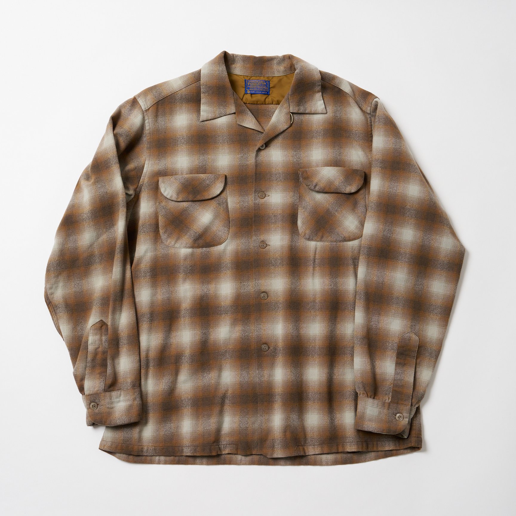 ボードシャツはオンブレチェックシャツ同様、1950年代から60年代のものが人気です。状態やサイズにもよりますが、相場はだいたい3万円から。高いものだと10万円オーバーの個体もあります。ペンドルトンのシャツの年代は、タグで見分けられます。今回ピックアップしたアイテムならば、タグの四角の囲みの中に全ての文字が収まっているのが、1950年代のアイテムです。