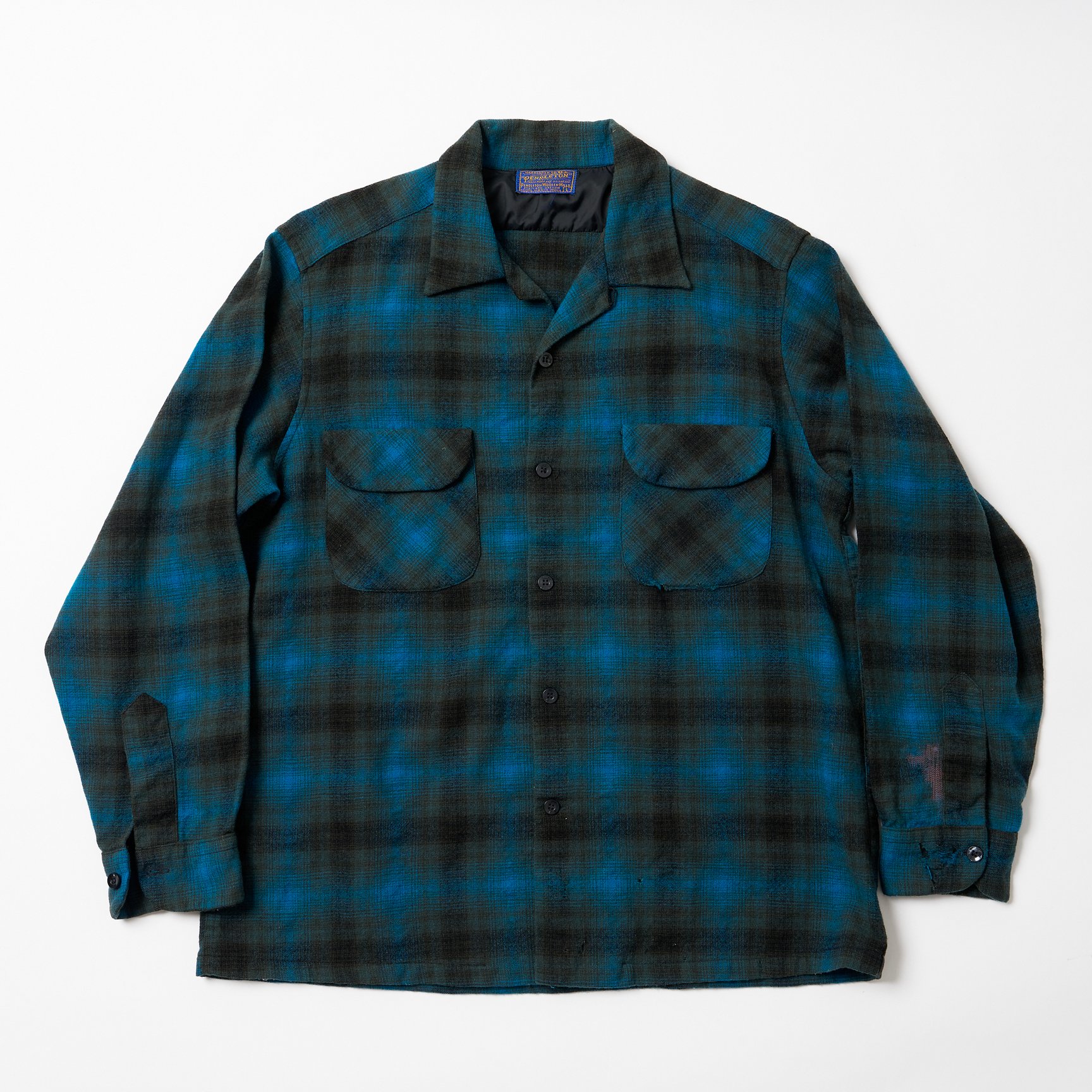 ボードシャツは多くの古着屋さんで扱っている定番中の定番ですが、今回改めてピックアップしたのは、最近ヴィンテージ市場でペンドルトンのボードシャツの評価が急上昇しているからです。あくまでも僕の予想ですが、そのきっかけは当連載でも以前ご紹介したオンブレチェックシャツにあるのではないかと考えています。1950年代のオンブレチェックシャツはヴィンテージシャツのなかでもトップクラスの人気を誇るアイテムでしたが、近年さらに評価を高め、価格も高騰しています。ボードシャツにはオンブレチェックシャツに似た柄のアイテムが少なくないので、オンブレチェックシャツの人気に引っ張られて注目が集まっているのではないか、というのが僕の推論です。