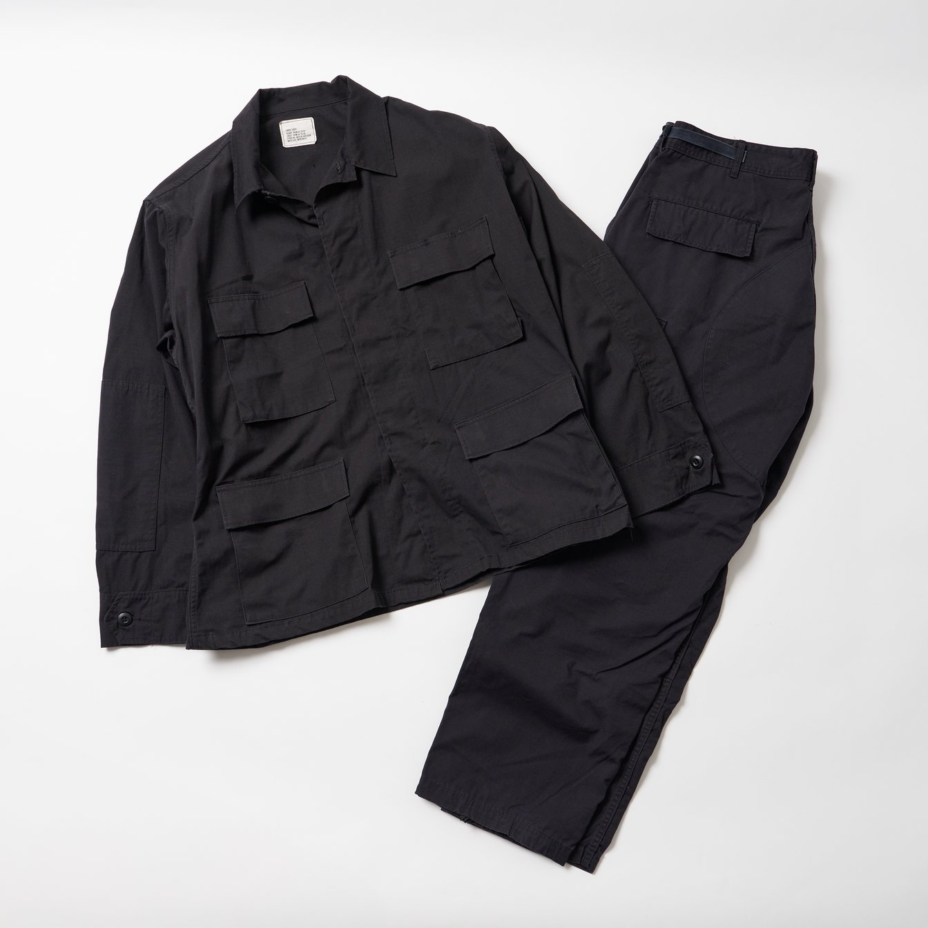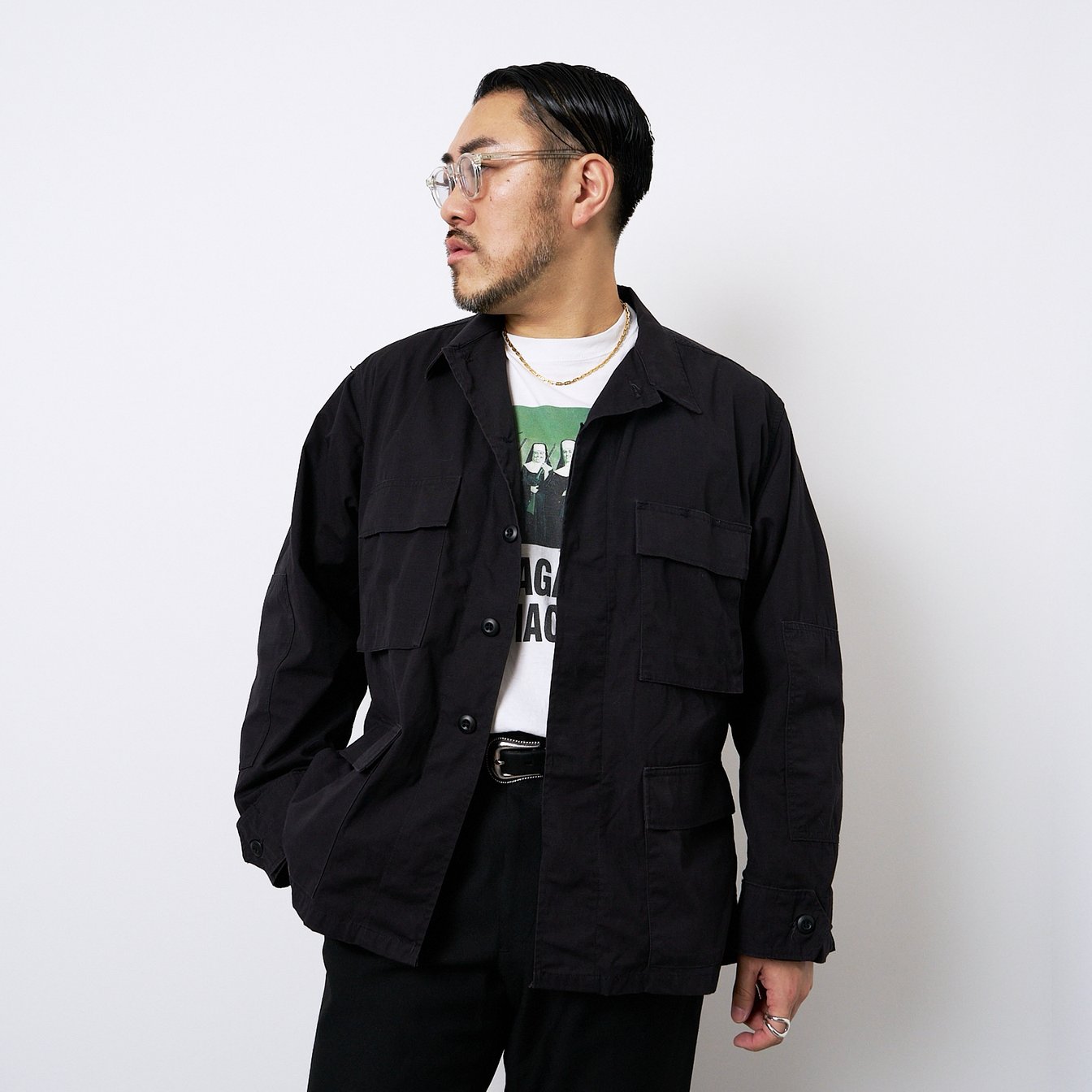 BDUジャケットもBDUパンツも、もともとは機能性を重視したウェアですが、黒になった途端に一気に洗練された雰囲気になります。軽くて薄い上に丈夫で、コットンとナイロンの混紡素材によるリップストップ生地は、洗い込むと良いエイジングが生まれてきます。今でしたらデッドストックでも入手することができるので、是非チェックしてみてください。