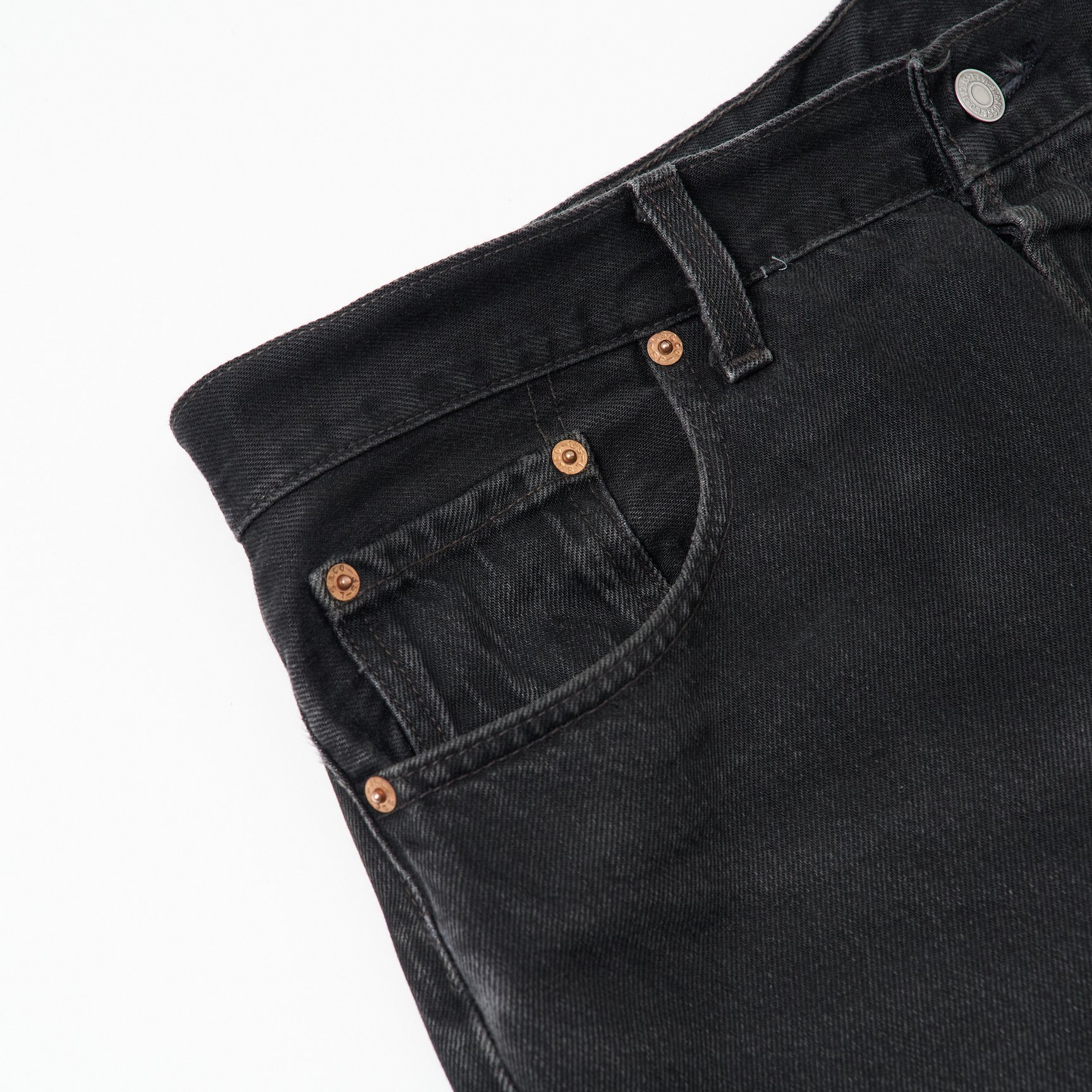 ヴィンテージの歴史が始まって以来、圧倒的な人気を誇り続けてきたアイテムが、リーバイスのインディゴブルージーンズです。しかし、近年はその状況に変化が見られるようになってきました。これまで長年レギュラーアイテムとして扱われてきていた、ブラックデニムの注目度が急上昇しているんです。ブラックデニムは歴史が浅いという印象を持っている人もいるかもしれませんが、実は非常に長い歴史があります。ブラックデニムはいつどこで、誰によって開発されたのかは定かではありませんが、1900年代からリーバイスがブラックデニムを展開しているという資料が確認されているので、少なくとも120年くらいの歴史があると言えます。とはいえ、そのバリエーションが増えてきたのは1980年代。以前紹介したギャラクティックウォッシュデニムジャケットやケミカルウォッシュデニム、デザイナーズジーンズなど、デニムアイテムの多様化が一気に進んだのが、この時代でした。