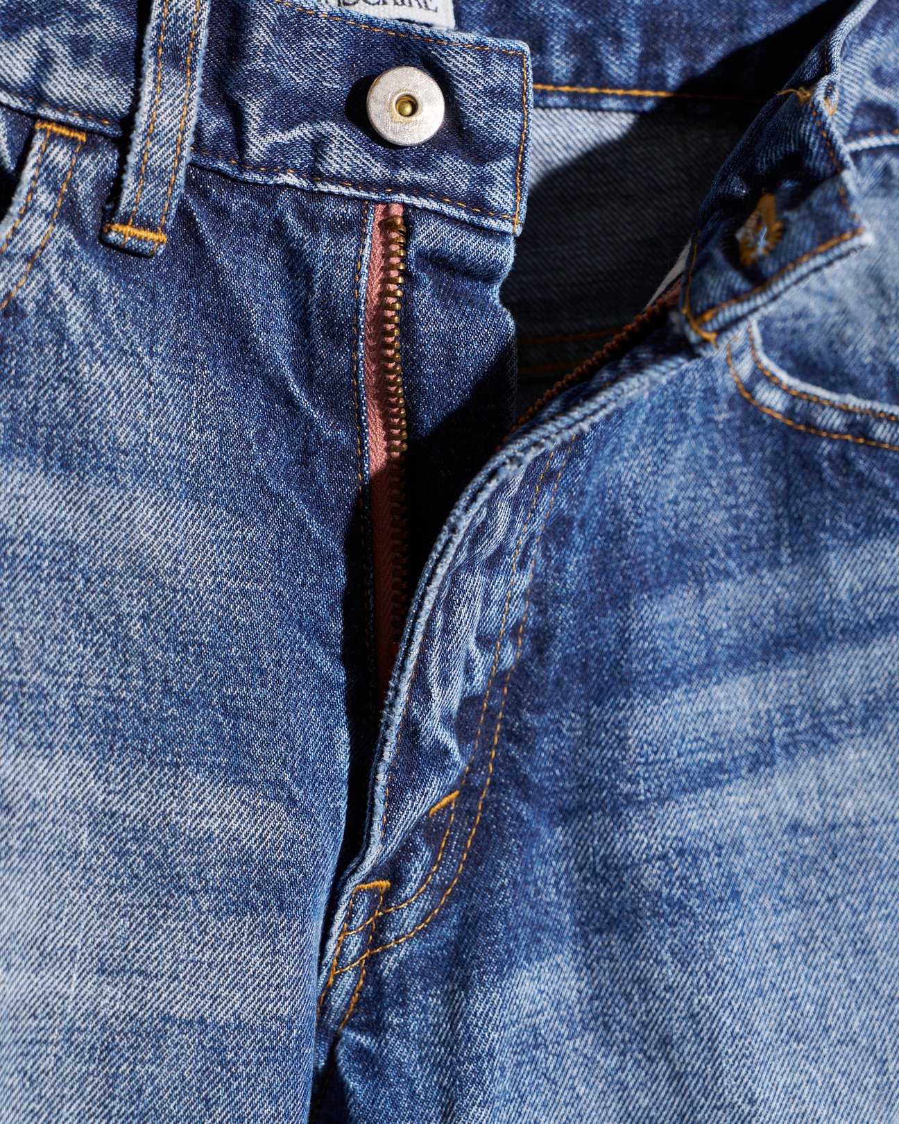 ミリタリーやワーク、ヴィンテージといったメンズスタイルから生まれたアイテムをエレガントかつマニッシュに、上質なカジュアルスタイルへとアップデートし人気を博す「アンスクリア(INSCRIRE)」。ブランドのワードローブに欠かせないアイテムとしてデザイナー自身も太鼓判を押すフレアデニムは、シーズンごとにマイナーチェンジを行いながらリリースを繰り返す、ブランドを代表するアイテムの一つです。そのデザインソースはヒッピーカルチャーを元に生まれた1970年代の「リーバイス(Levi's?)」の517というモデルであり、縦に伸びる色落ちやバックポケットのシングルステッチ、ヴィンテージジップを再現した「ウォルデス(WALDES)」の棒ジップを使用するなど、モチーフを忠実に範を取った本格的なディテールが光るこだわりの一本。古き良きクラシックなデザインですが、その一方でシルエットは現代的にアップデート。センタープレスを施したセミフレアのシルエットで膝下から緩やかに広がり美脚効果を演出してくれ、程よく細身のシルエットなのでどんなトップスとも相性よく合わせられます。ウォッシュ加工が施された生地とあえてラフにカットオフされた裾のデザインがこなれ感と抜け感を醸し出し、カジュアルなスタイルはもちろん、綺麗めなジャケットと合わせたスタイルもおすすめです。ヴィンテージに対するリスペクトが込められながら、トレンドを押さえたシルエットでタイムレスな価値を備えた一本です。