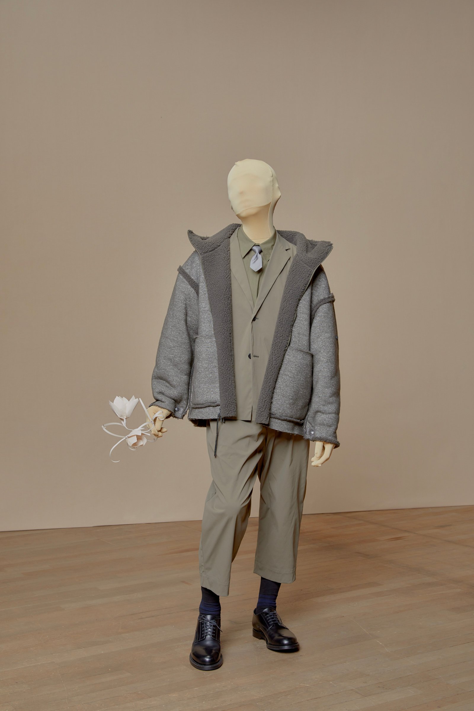 カモフラージュ柄のアウターは、N.ハリウッド20周年の特別企画として「アンダーカバー(UNDERCOVER)」のアーカイブ生地をリプロダクトする「REBEL FABRIC BY UNDERCOVER」の第2弾。1996年にアンダーカバーが発表したカモフラージュ柄を、デザイナー高橋盾と共にアップデートした。