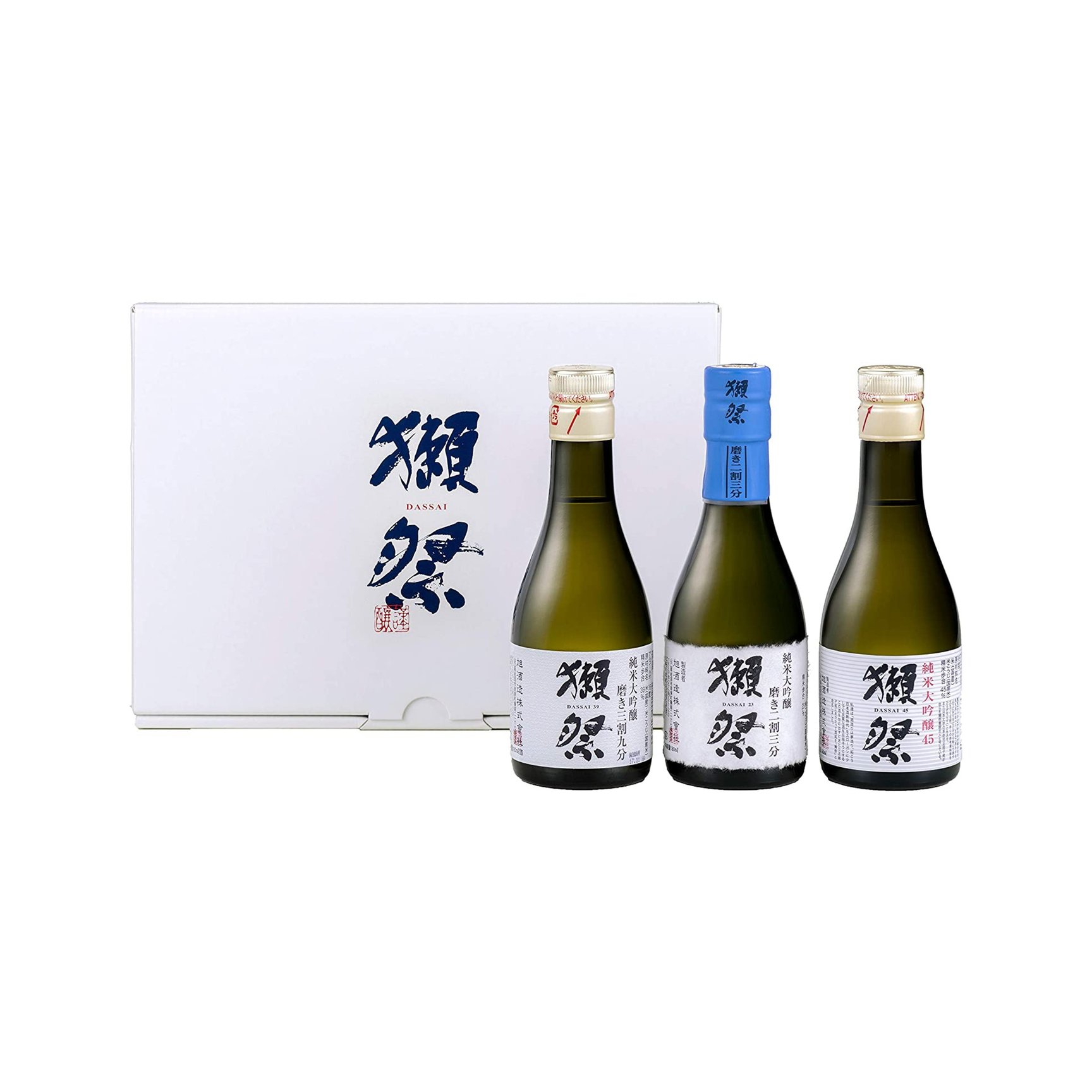 人気の日本酒「獺祭(だっさい)」の飲み比べセットです。「獺祭」のスタンダードである「純米大吟醸45」が大ボトル1本、「純米大吟醸 磨き二割三分」「純米大吟醸 磨き三割九分」「純米大吟醸45」の3種類がおためしサイズで楽しめちゃいます。