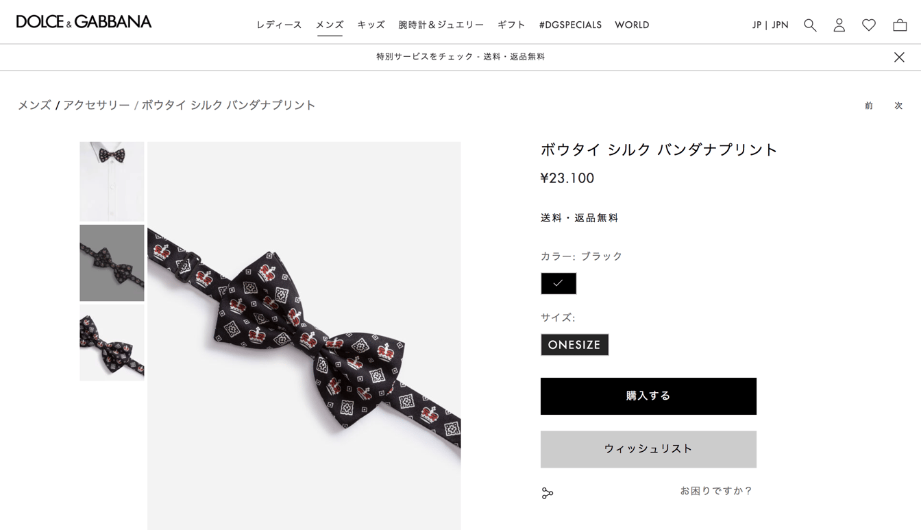 松本潤さんがジャニーズJr.によるステージ「Let's Go to 2020 Tokyo」の前に着用していたネクタイは「ドルチェ&ガッバーナ(Dolce&Gabbana)」のもの。画像の蝶ネクタイと同じ柄でした。