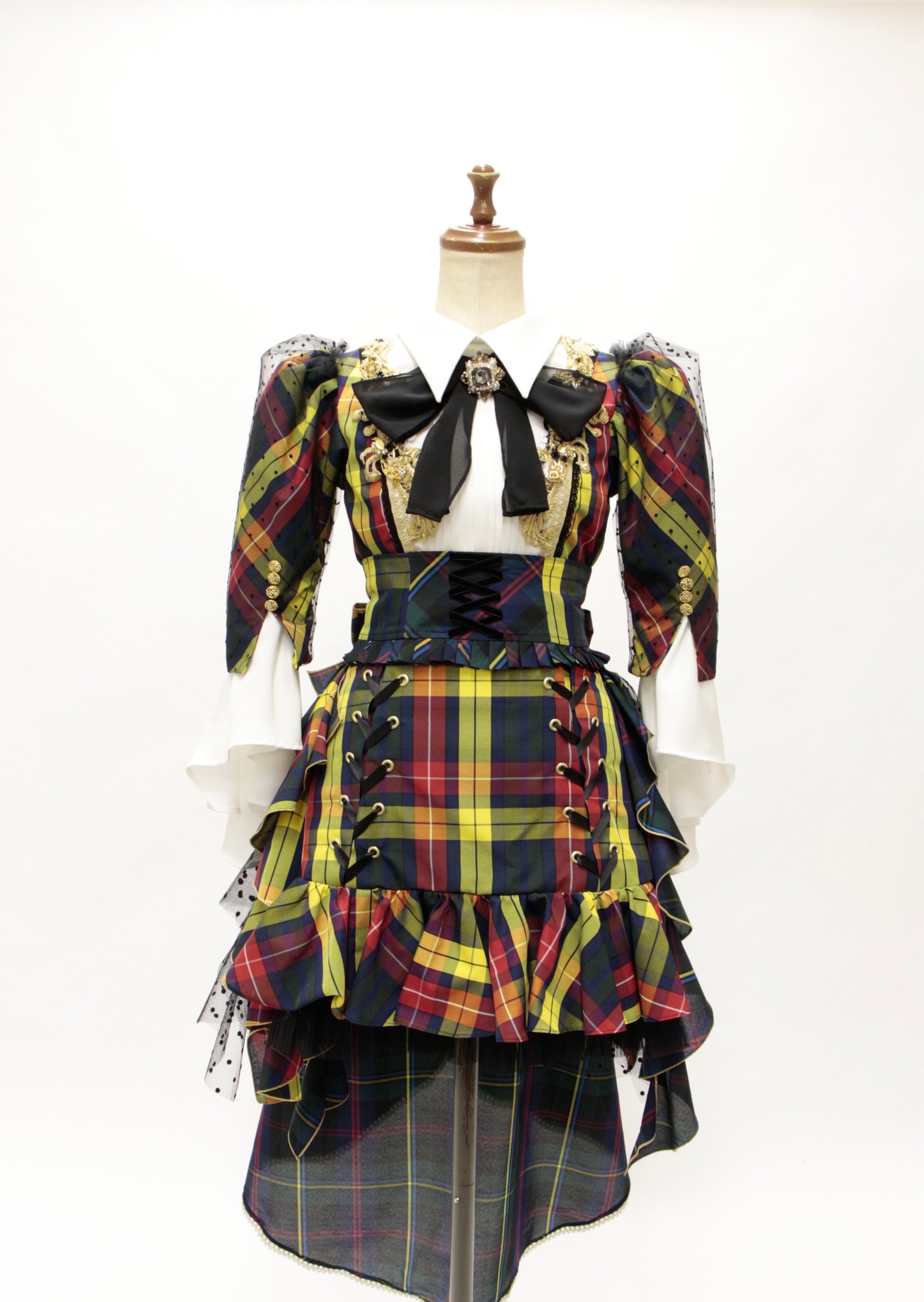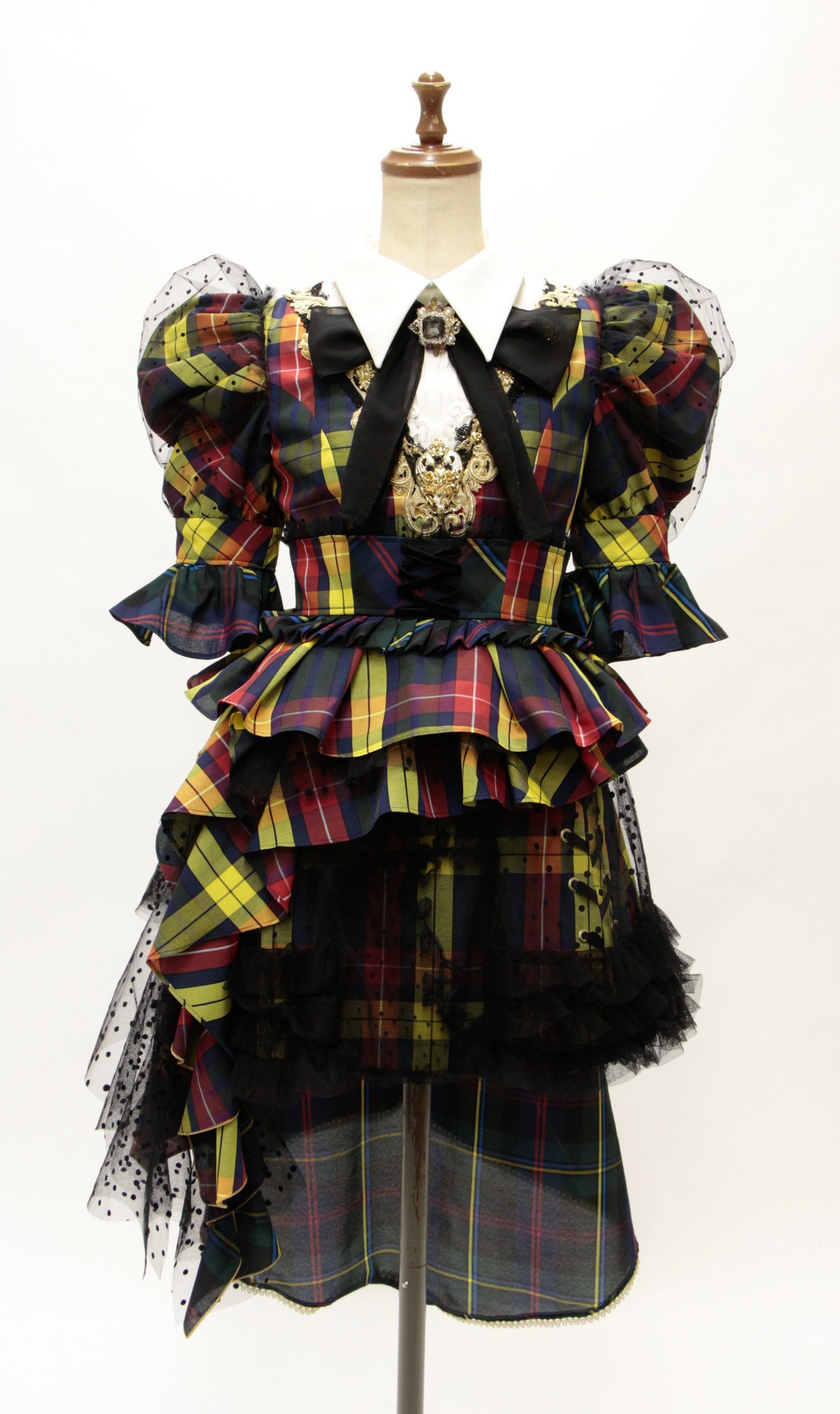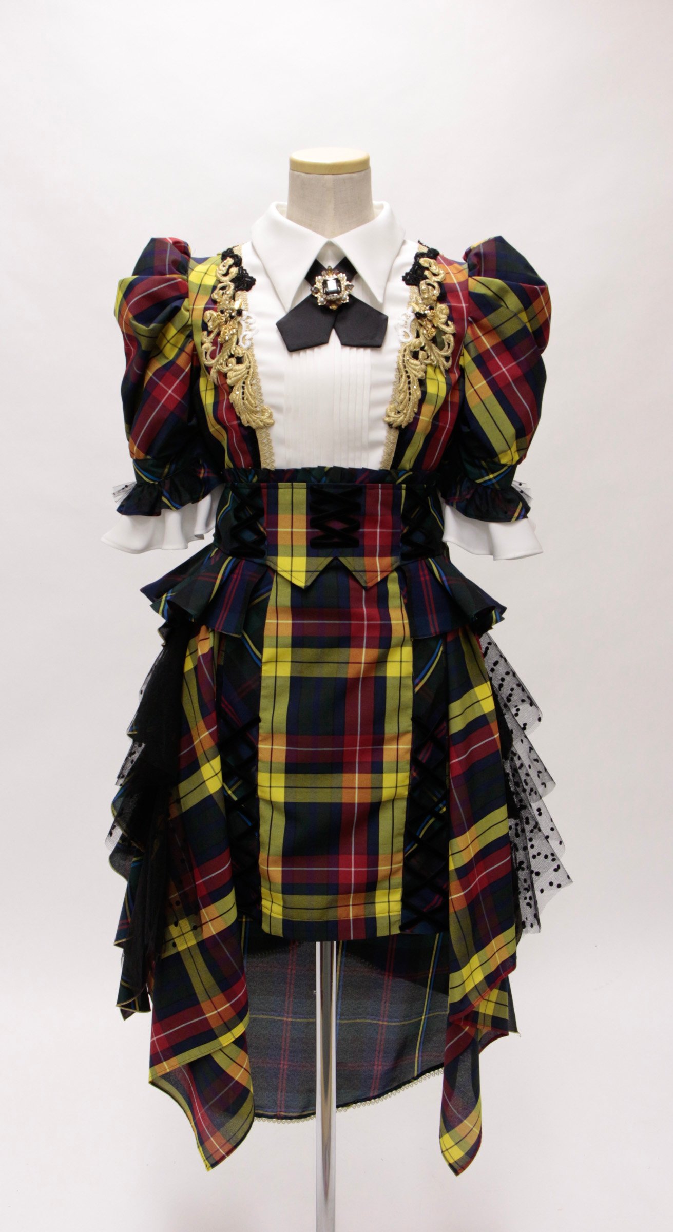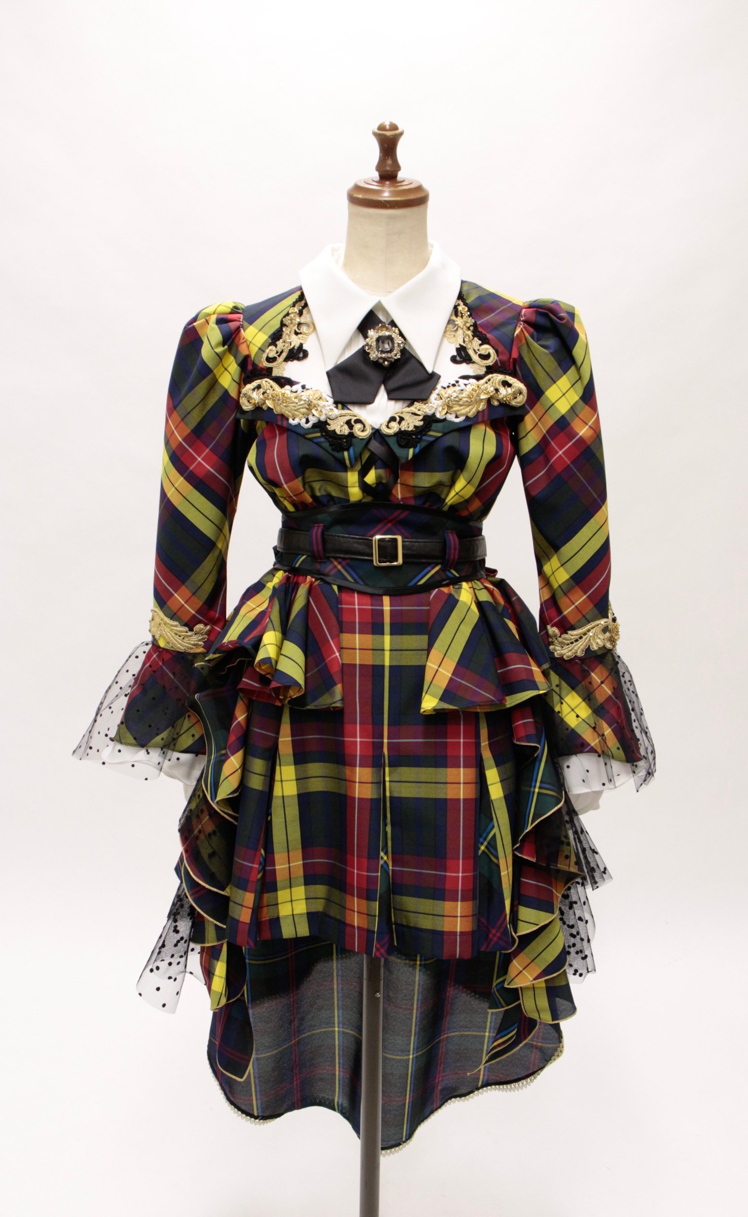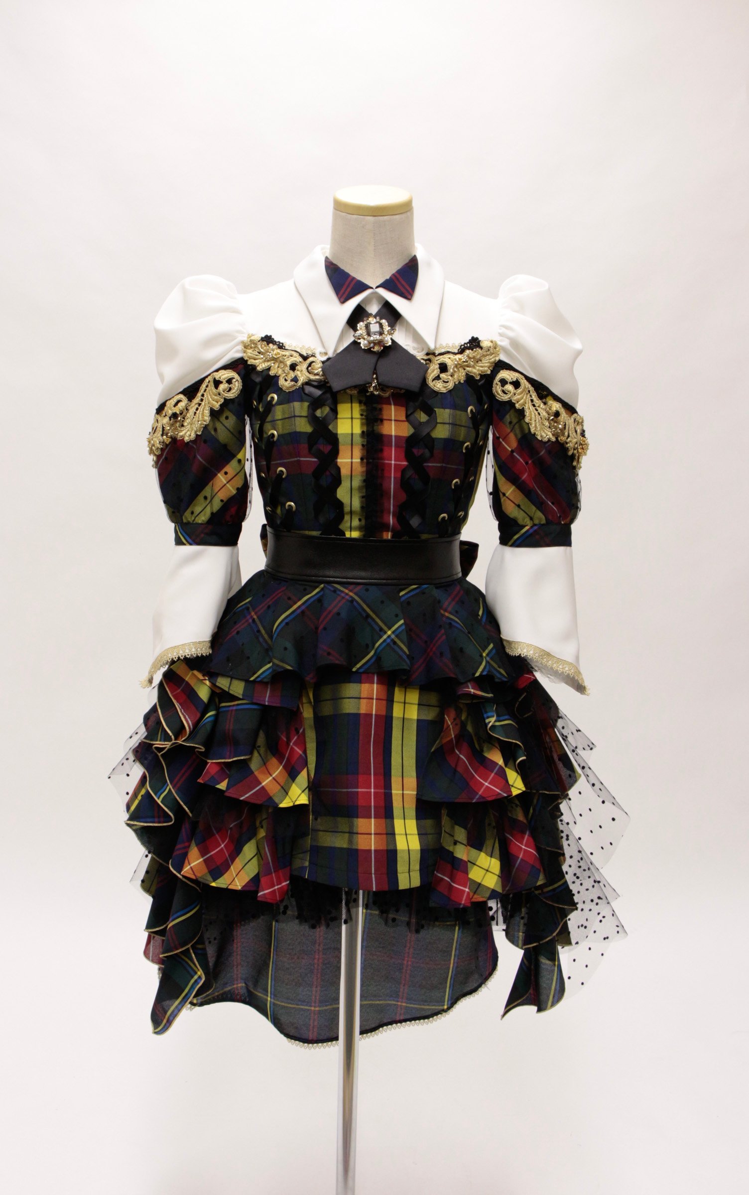 AKB48の衣装はオサレカンパニーが担当。グループを象徴し、今秋冬のトレンドでもあるチェックをメインにデザインしました。AKBグループと海外8ヶ国から姉妹グループのメンバーが参加したステージで、チェックは各グループのイメージカラーを採用。また上半身が映った時にわかりやすいよう、海外グループのリボンには活動拠点のロゴが入れられています。チェック布地と白シャツ地の境目にゴールドのモチーフをあしらい、また動くと揺れるスパイラルフリルが左右につけられ、紅白歌合戦の場で映える華やかな衣装に仕上げられました。