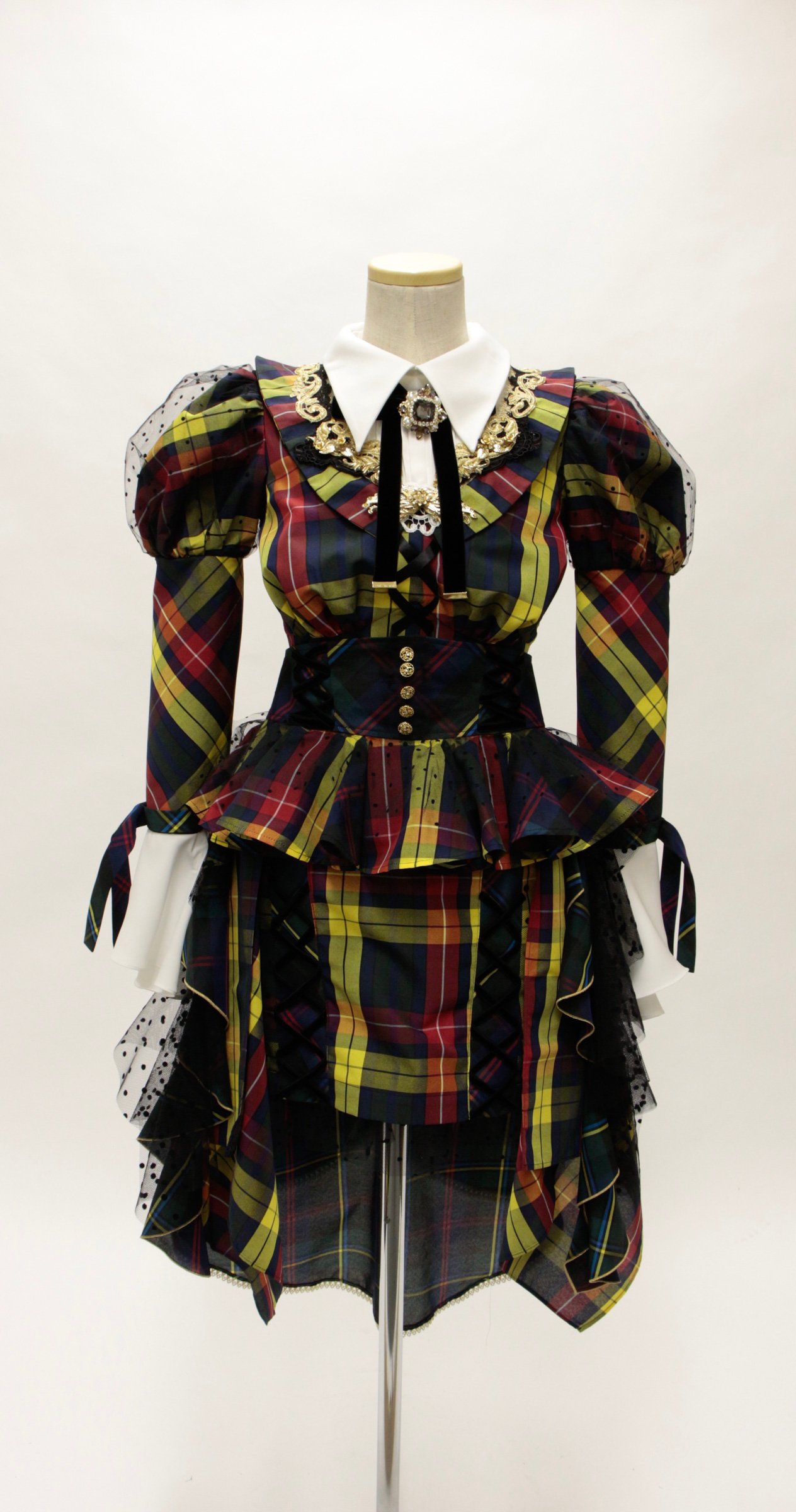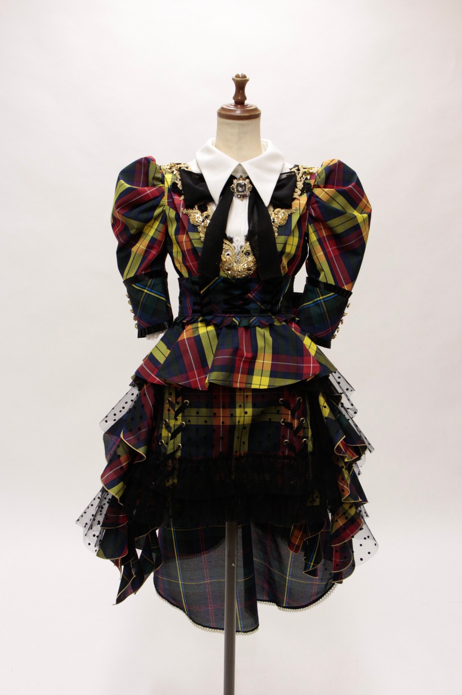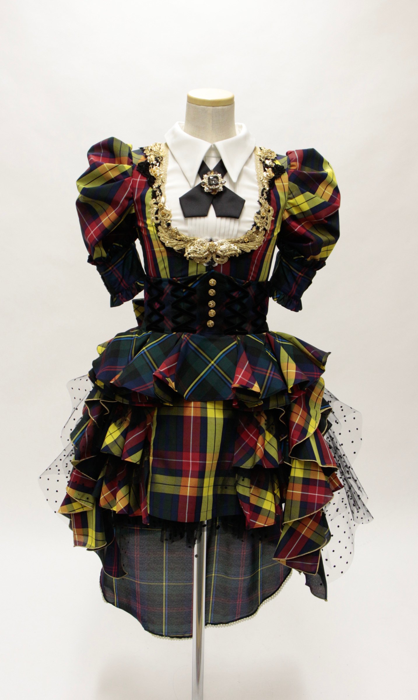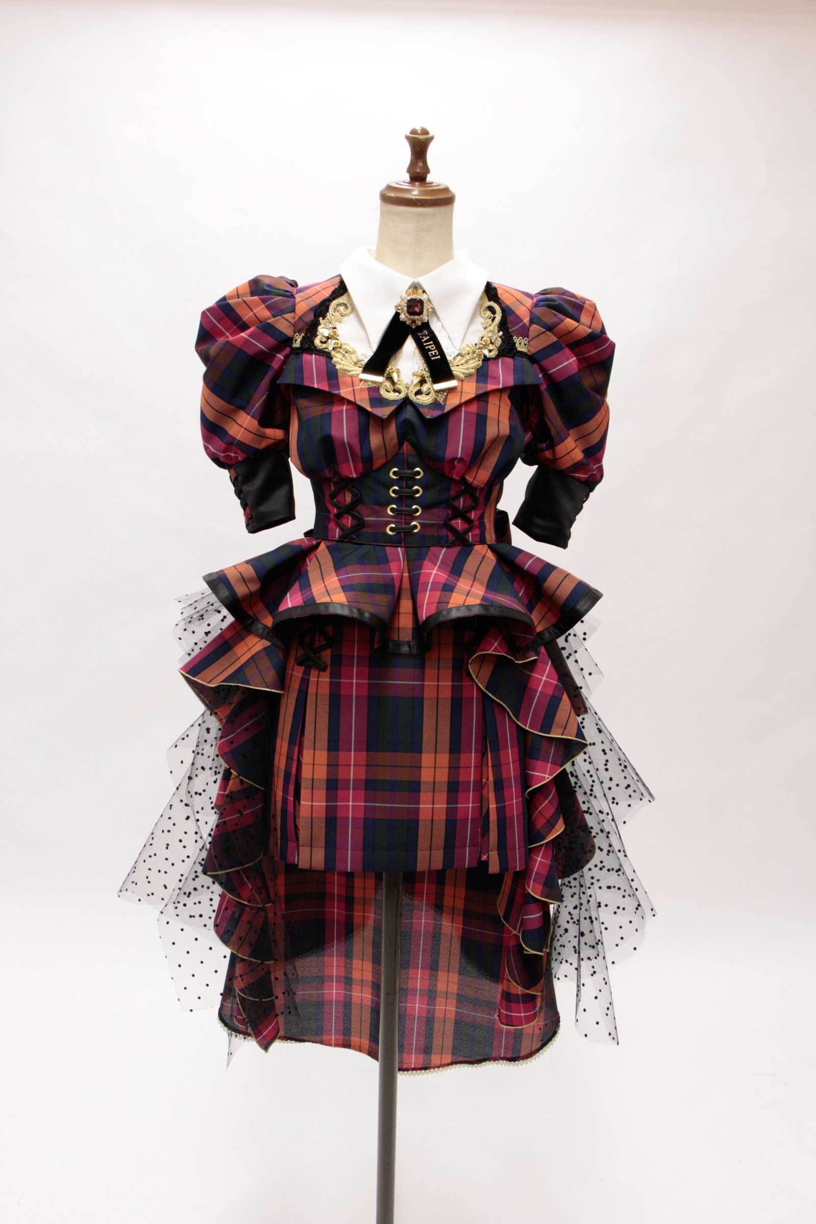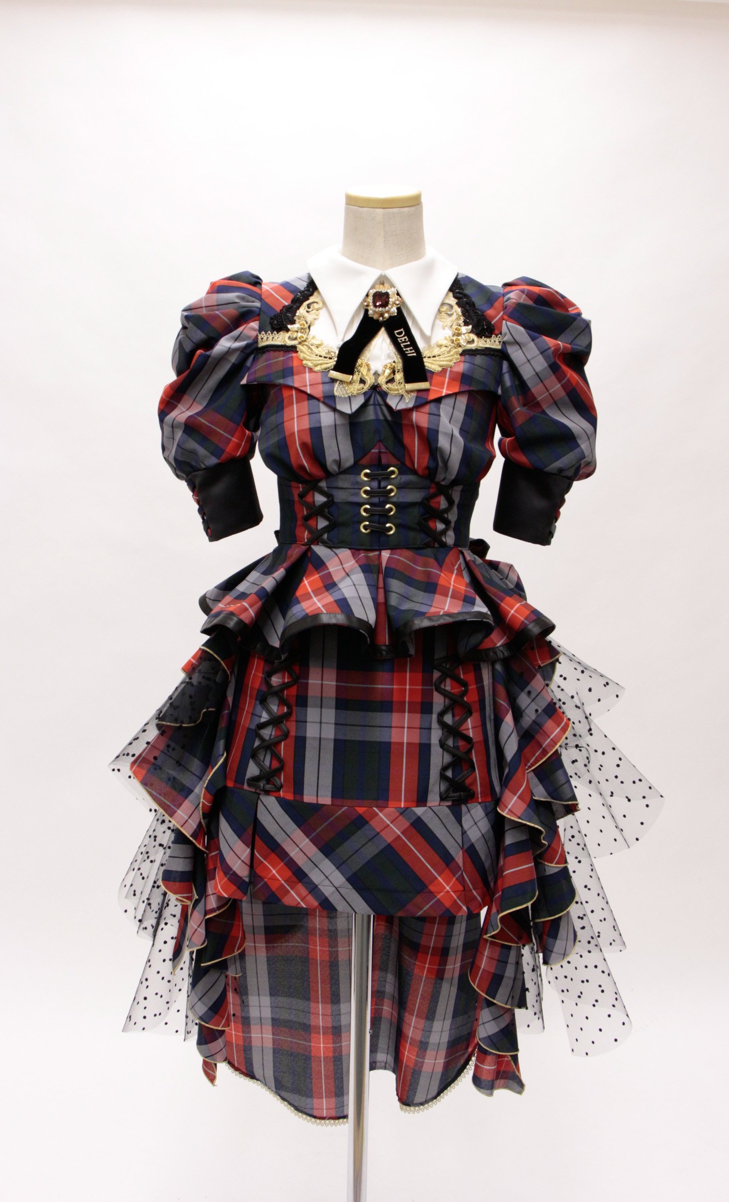 AKB48の衣装はオサレカンパニーが担当。グループを象徴し、今秋冬のトレンドでもあるチェックをメインにデザインしました。AKBグループと海外8ヶ国から姉妹グループのメンバーが参加したステージで、チェックは各グループのイメージカラーを採用。また上半身が映った時にわかりやすいよう、海外グループのリボンには活動拠点のロゴが入れられています。チェック布地と白シャツ地の境目にゴールドのモチーフをあしらい、また動くと揺れるスパイラルフリルが左右につけられ、紅白歌合戦の場で映える華やかな衣装に仕上げられました。