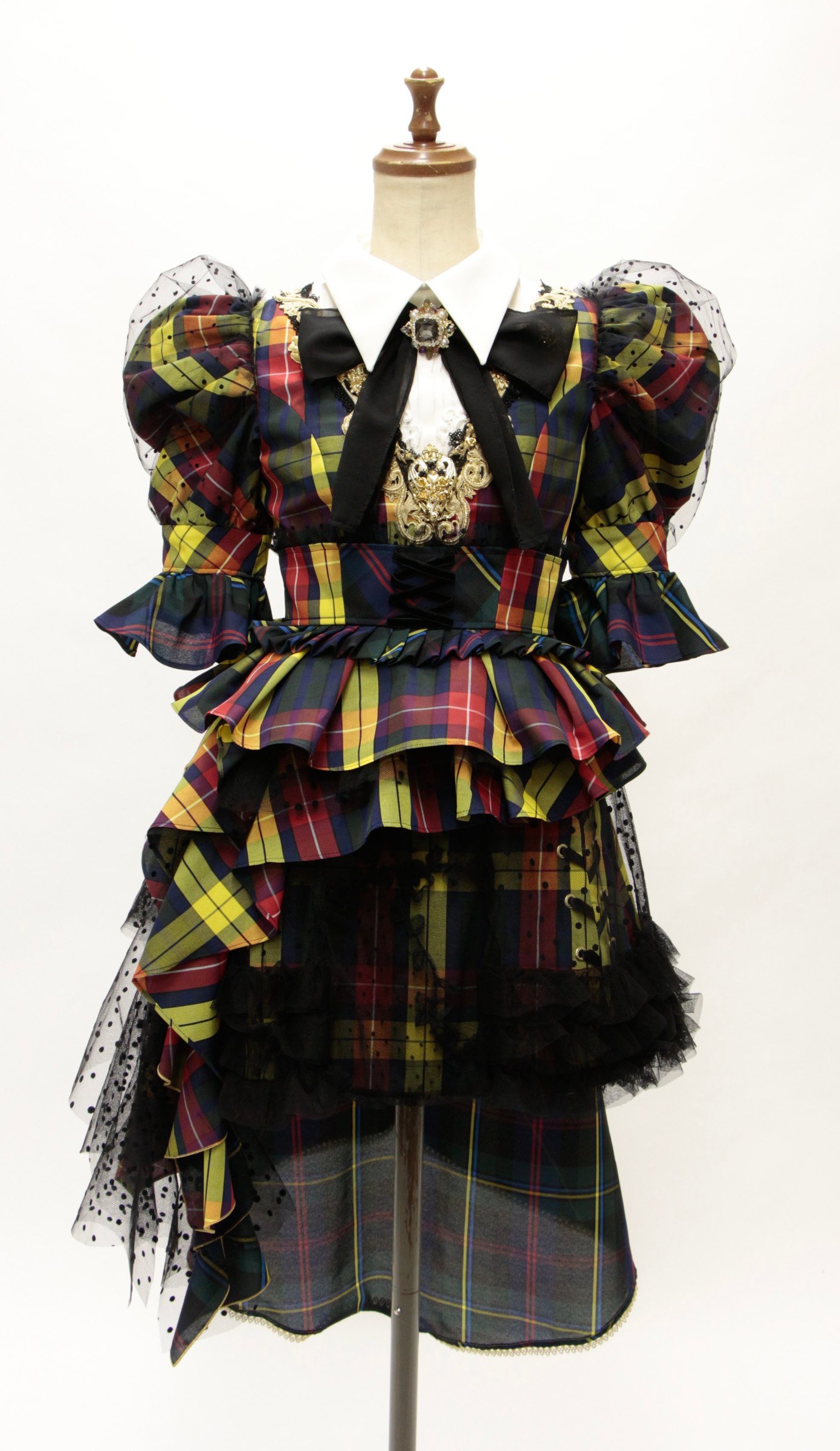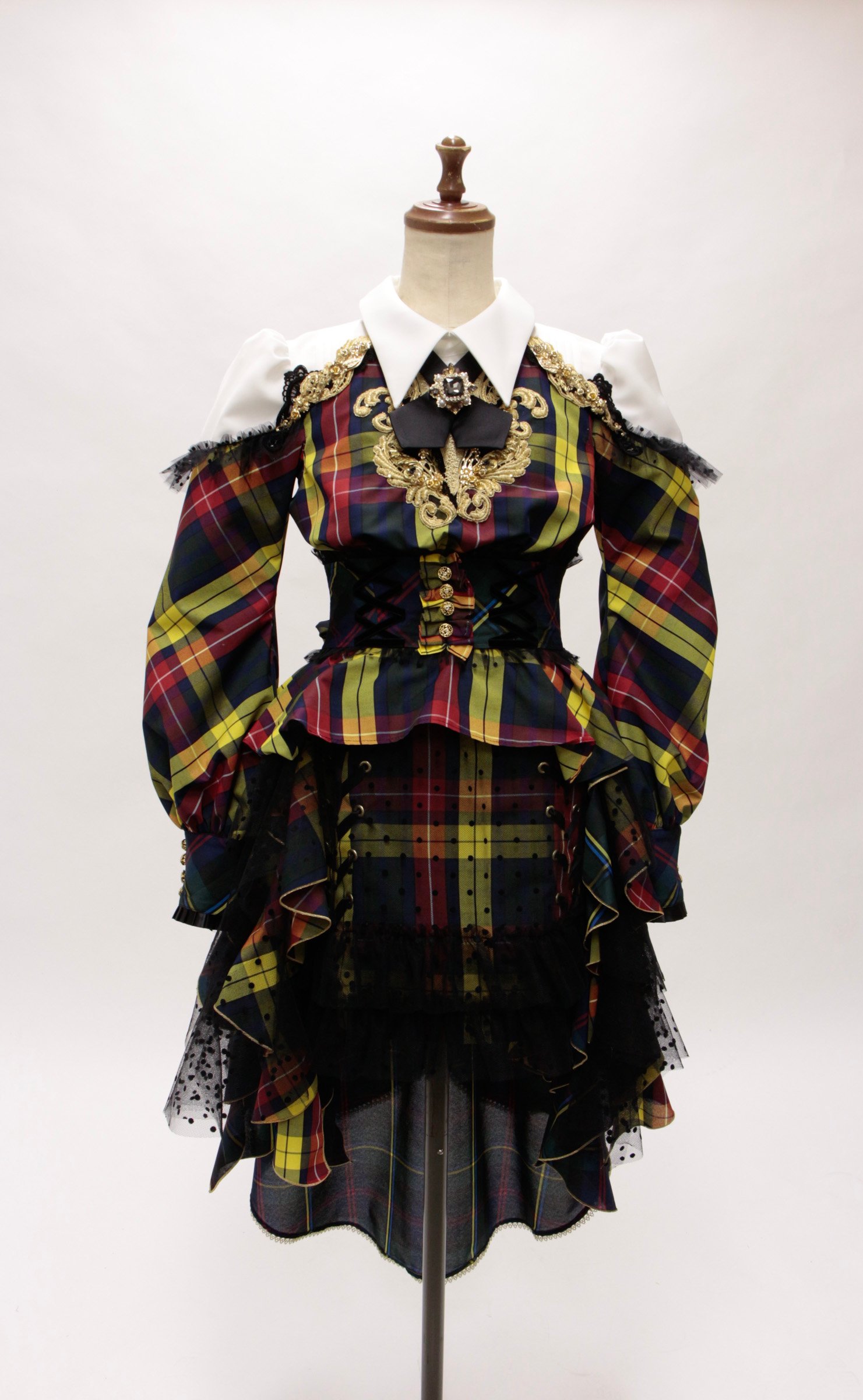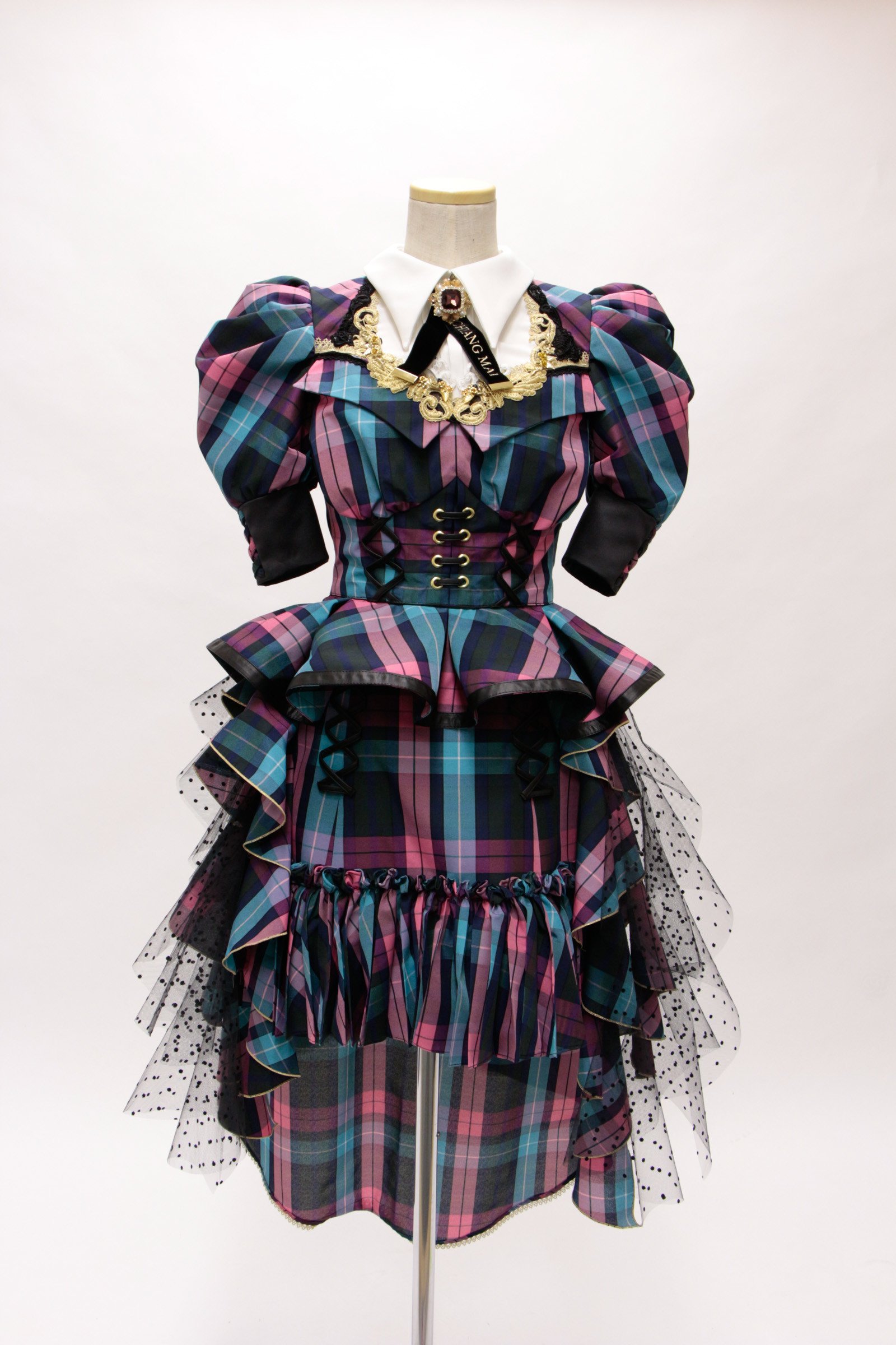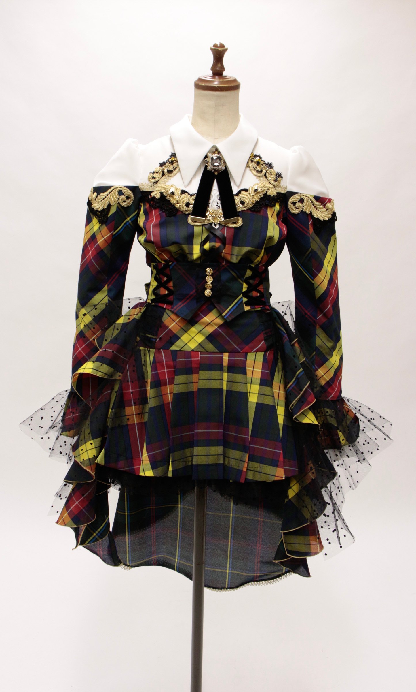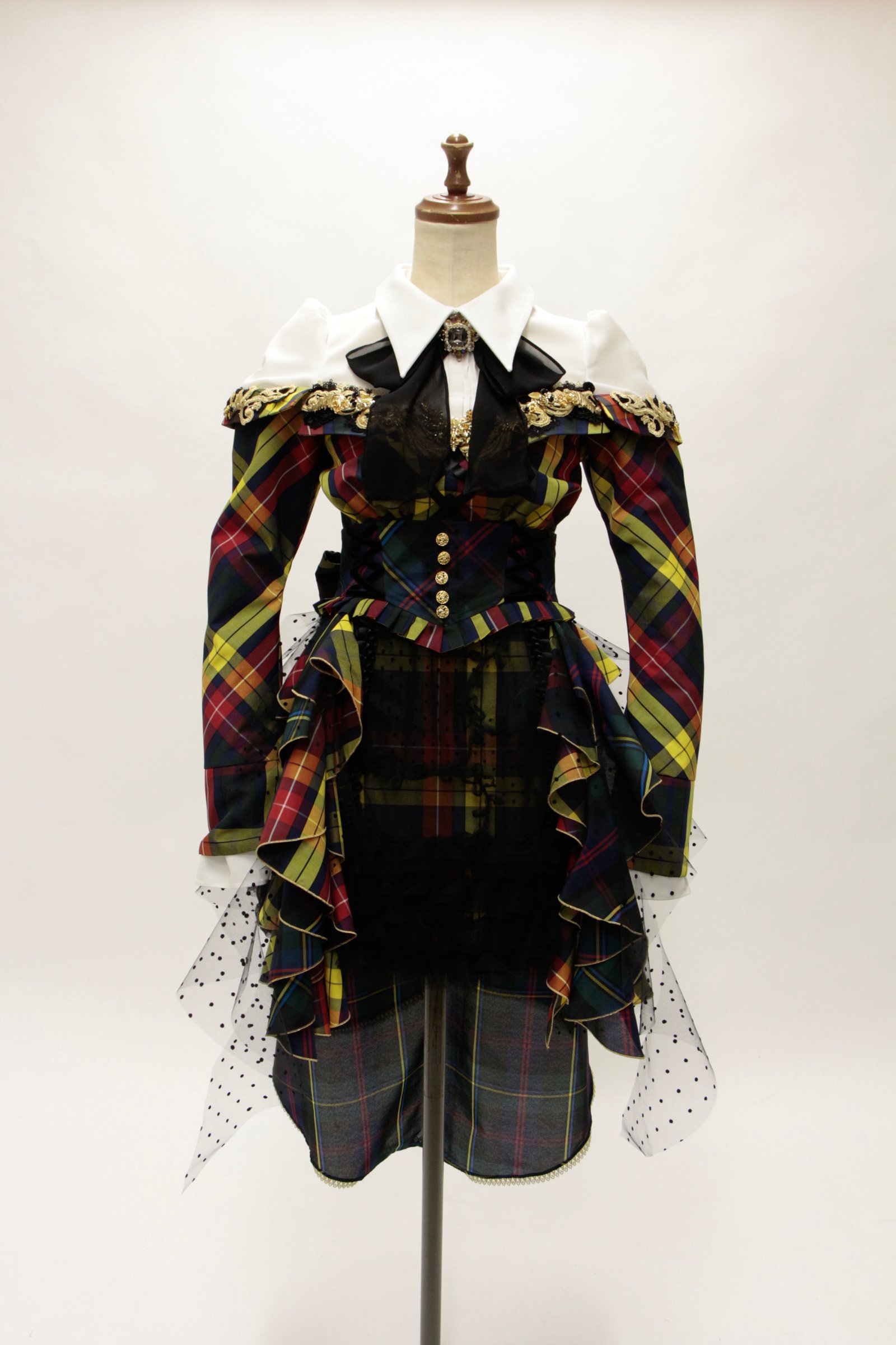 AKB48の衣装はオサレカンパニーが担当。グループを象徴し、今秋冬のトレンドでもあるチェックをメインにデザインしました。AKBグループと海外8ヶ国から姉妹グループのメンバーが参加したステージで、チェックは各グループのイメージカラーを採用。また上半身が映った時にわかりやすいよう、海外グループのリボンには活動拠点のロゴが入れられています。チェック布地と白シャツ地の境目にゴールドのモチーフをあしらい、また動くと揺れるスパイラルフリルが左右につけられ、紅白歌合戦の場で映える華やかな衣装に仕上げられました。