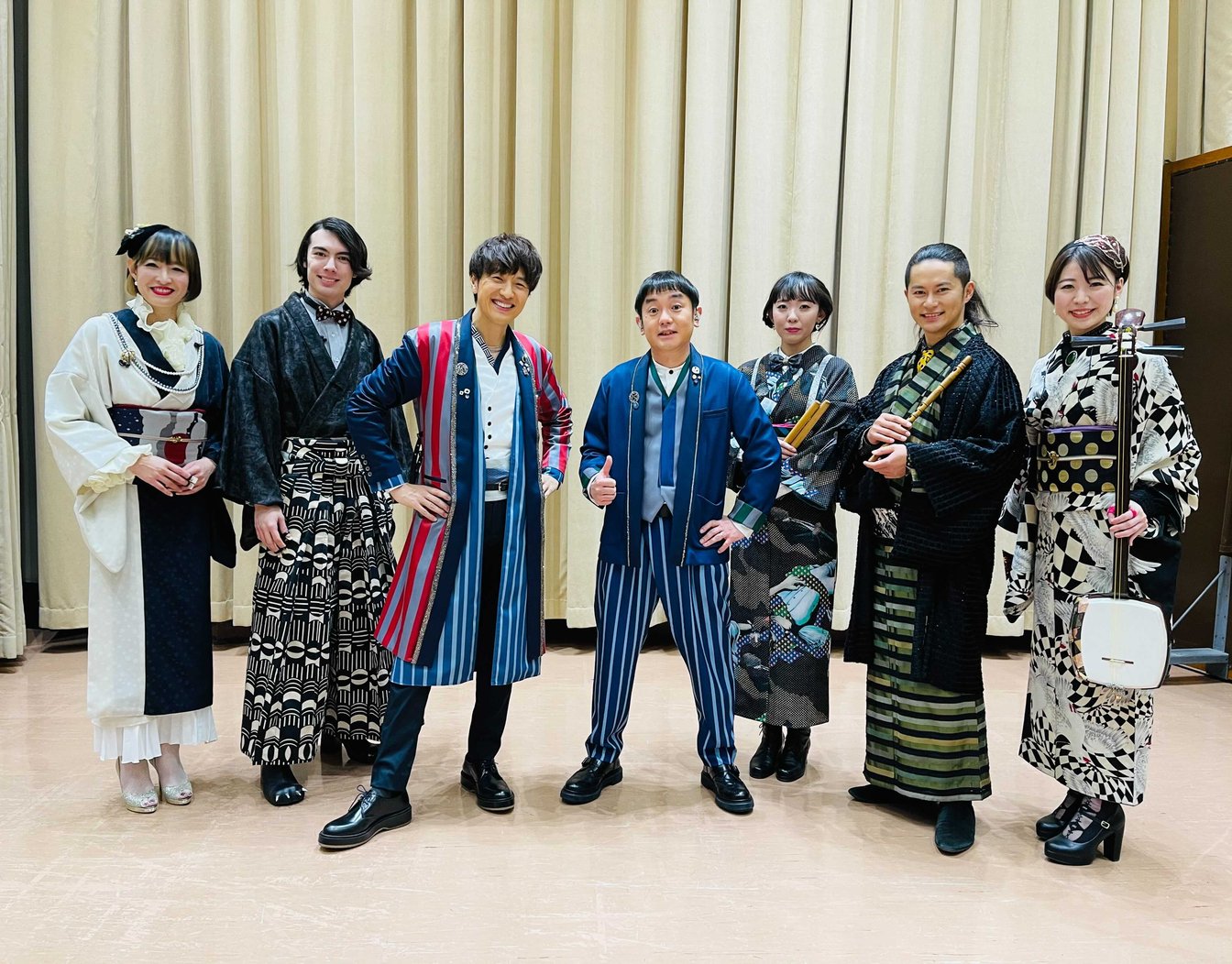 「雨のち晴レルヤ ~歓喜の歌 紅白SP~」を歌唱したゆずの北川悠仁さんと岩沢厚治さんの衣装は、柚木一樹さんがスタイリングを担当。和モダンなテイストの鮮やかなスーツが目を引きました。サポートメンバーの衣装は着物?オブジェ作家の重宗玉緒さんによるものでした。