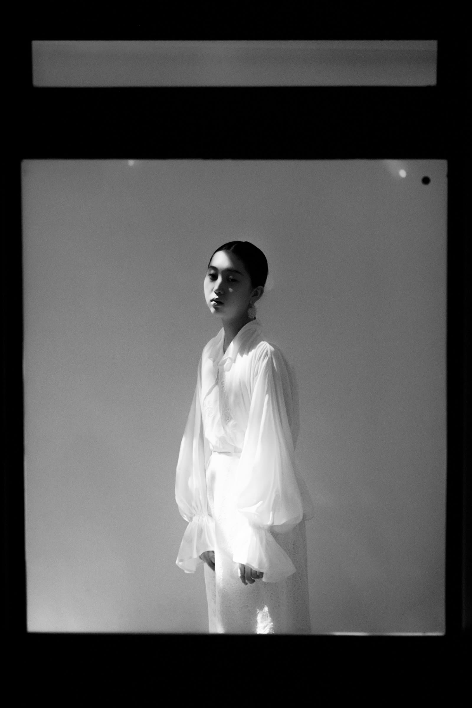 フィナーレではブルガリアをルーツに持つ「チョポヴァ ロウェナ(Chopova Lowena)」のドレスを着用。ボリュームのあるデザインが特徴的な若手ブランドです。