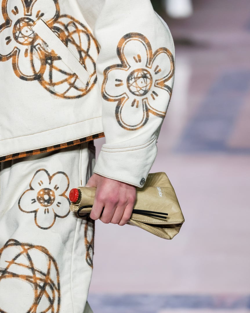 Futura 2000の代表作品のひとつである「アトム」を、ケンゾーを象徴するボケの花のモチーフと組み合わせたほか、手書きのロゴもデザイン。またフューチュラが拠点とするニューヨークのカルチャーから派生して、紙袋に酒瓶やパンなどを入れて持ち歩くというストリートのスタイルを取り入れるなど、NIGOならではのユニークな感性がアクサリーに反映された。