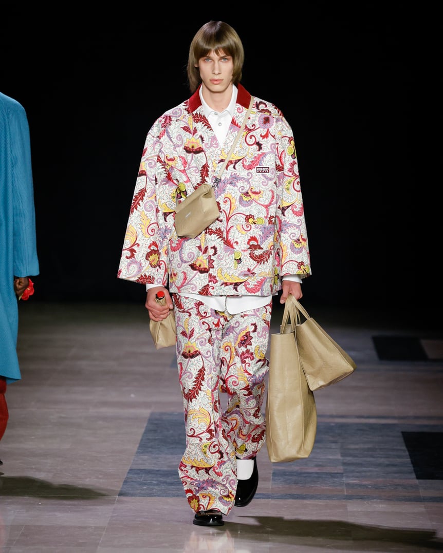 NIGOがアーティスティックディレクターに就任してから3年を経たタイミングで、得意分野でもあるメンズに改めてフォーカスしたことは、ブランドにとって良い変化をもたらしたのではないだろうか。そう印象付けたのが、ショーの序盤を飾ったテーラードルックだ。