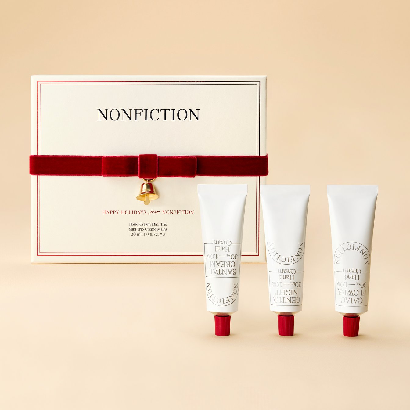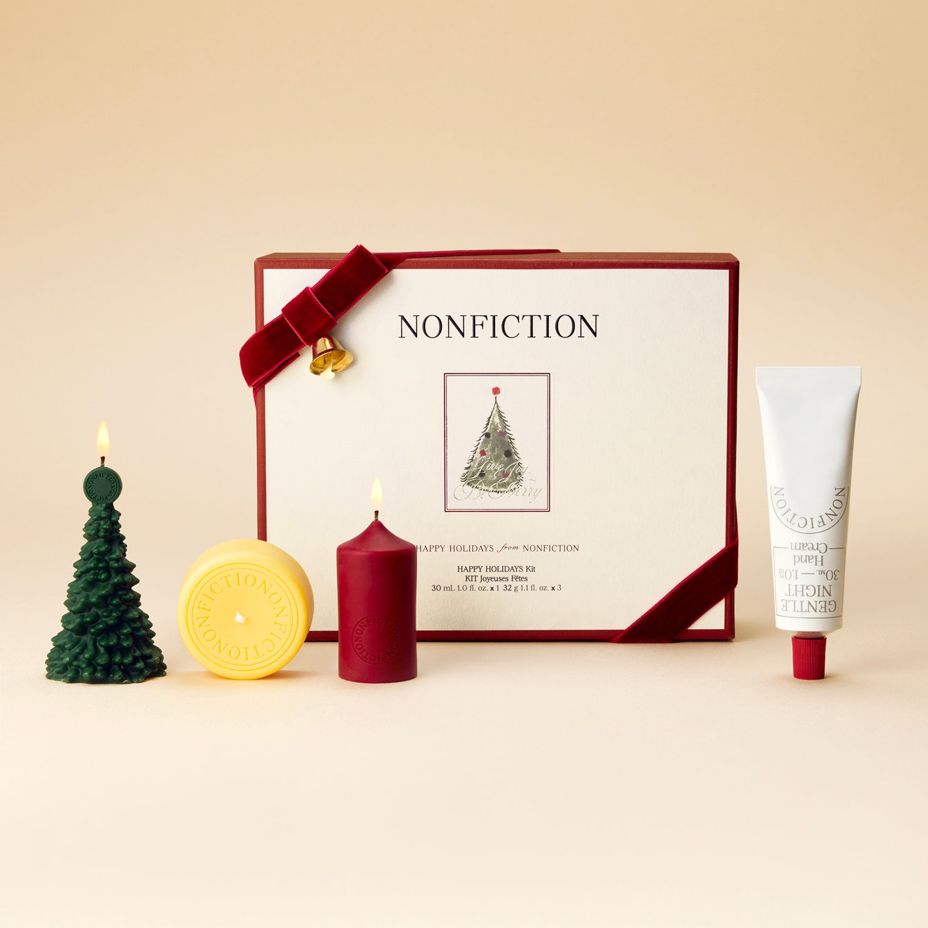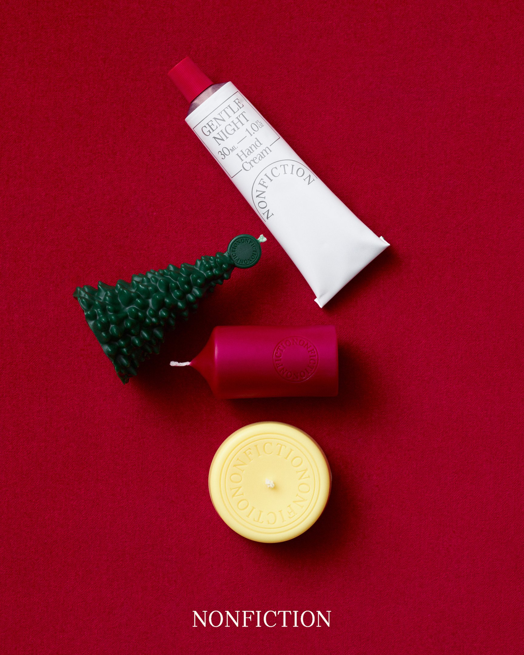 ノンフィクションのホリデーでは、オードパルファムやハンドクリームのセットをはじめ、センティッドキャンドルなどアイコニックなアイテムをホリデー限定の赤いリボンギフトラッピングで提案。また、NEWoMan SHINJUKUで開催中のポップアップをはじめとするオフライン限定キットもラインナップしています。
