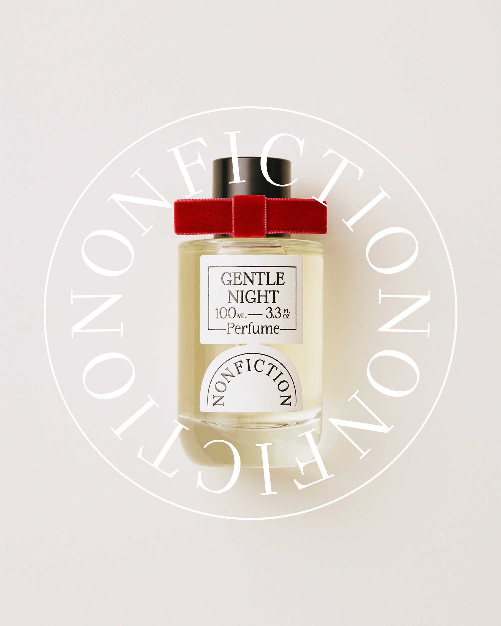ノンフィクションのシグネチャーの香り3種を詰め込んだミニサイズのフレグランスキットが登場。ベチバーとサンダルウッド、フレッシュカルダモンの香りが調和した静寂を感じさせるウッディな香り「SANTAL CREAM」、甘いスエードと落ち着いたシダーウッドにバニラとムスクが加わり、やさしく中性的な魅力が引き立つ「GENTLE NIGHT」、スモーキーに変奏されたオリエンタルフローラルな香り「GAIAC FLOWER」の10mLボトルを、特別なボックスにセットしました。