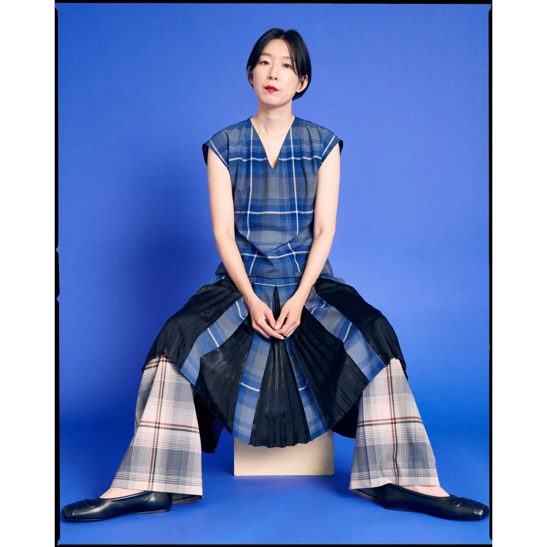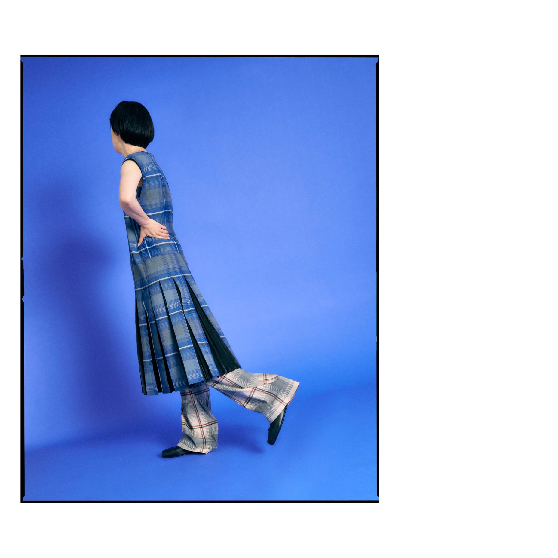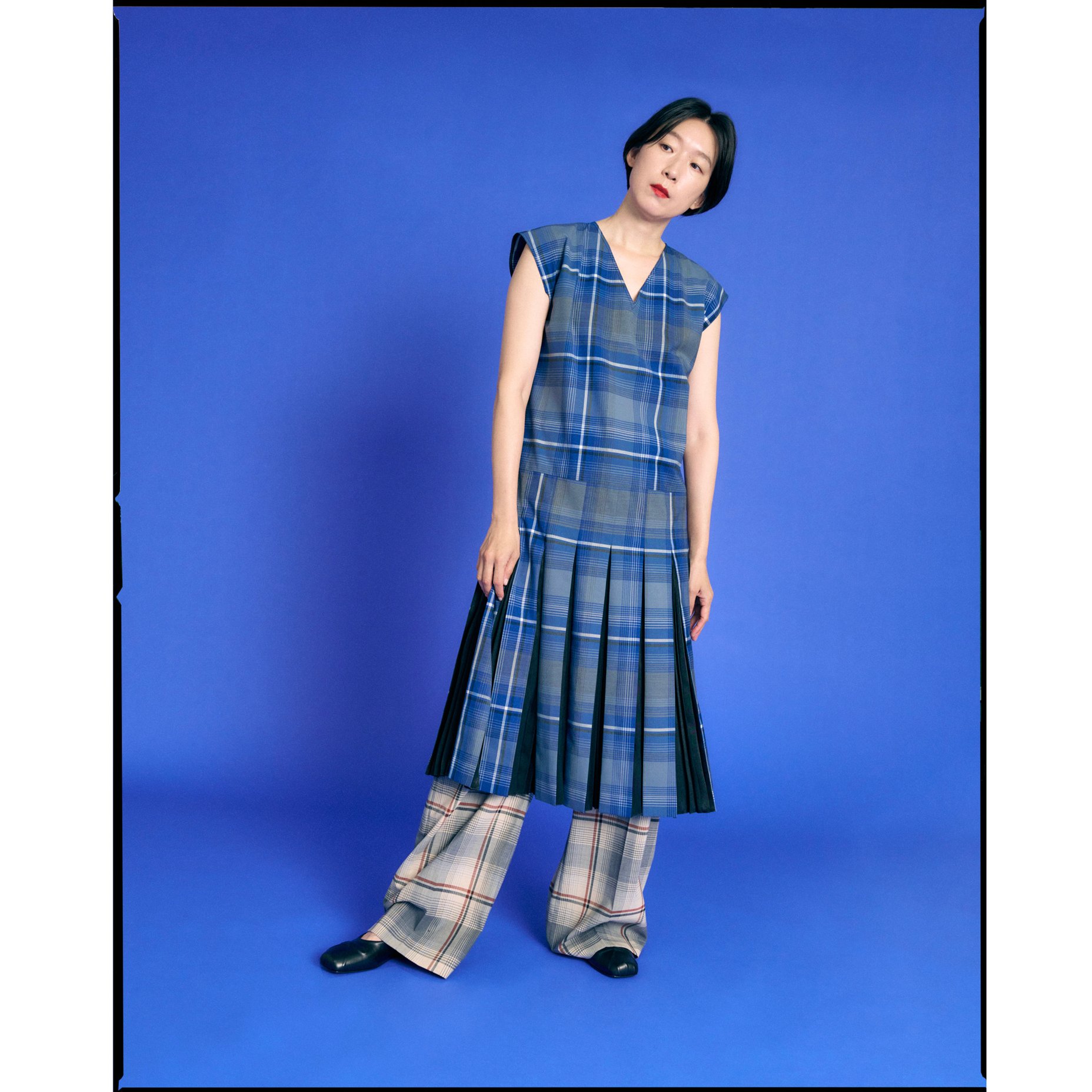 チェックのドレス?410,300、チェックのパンツ?166,100、バレエシューズ?128,700(以上マルニ|マルニ ジャパン クライアントサービス?TEL:0120-374-708)