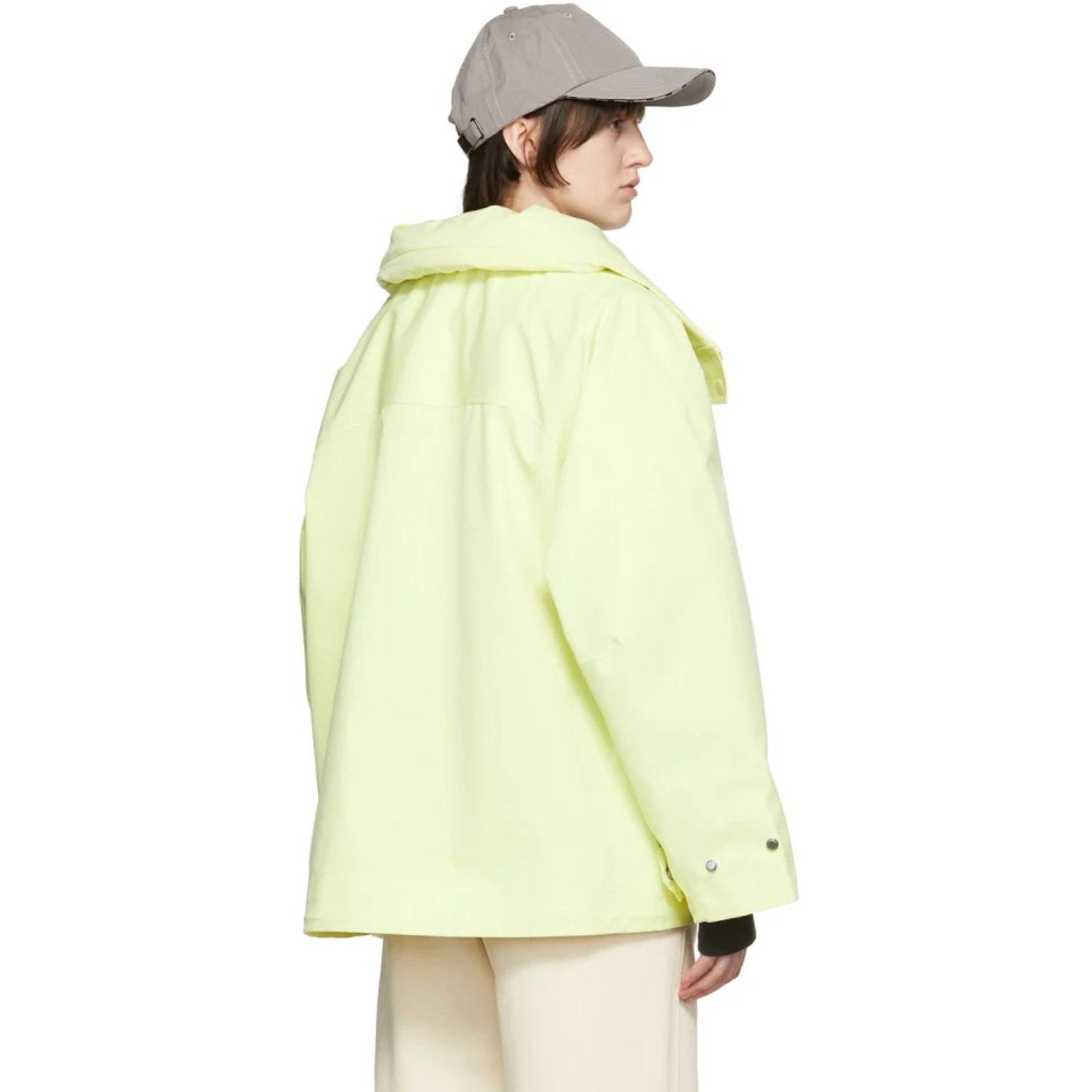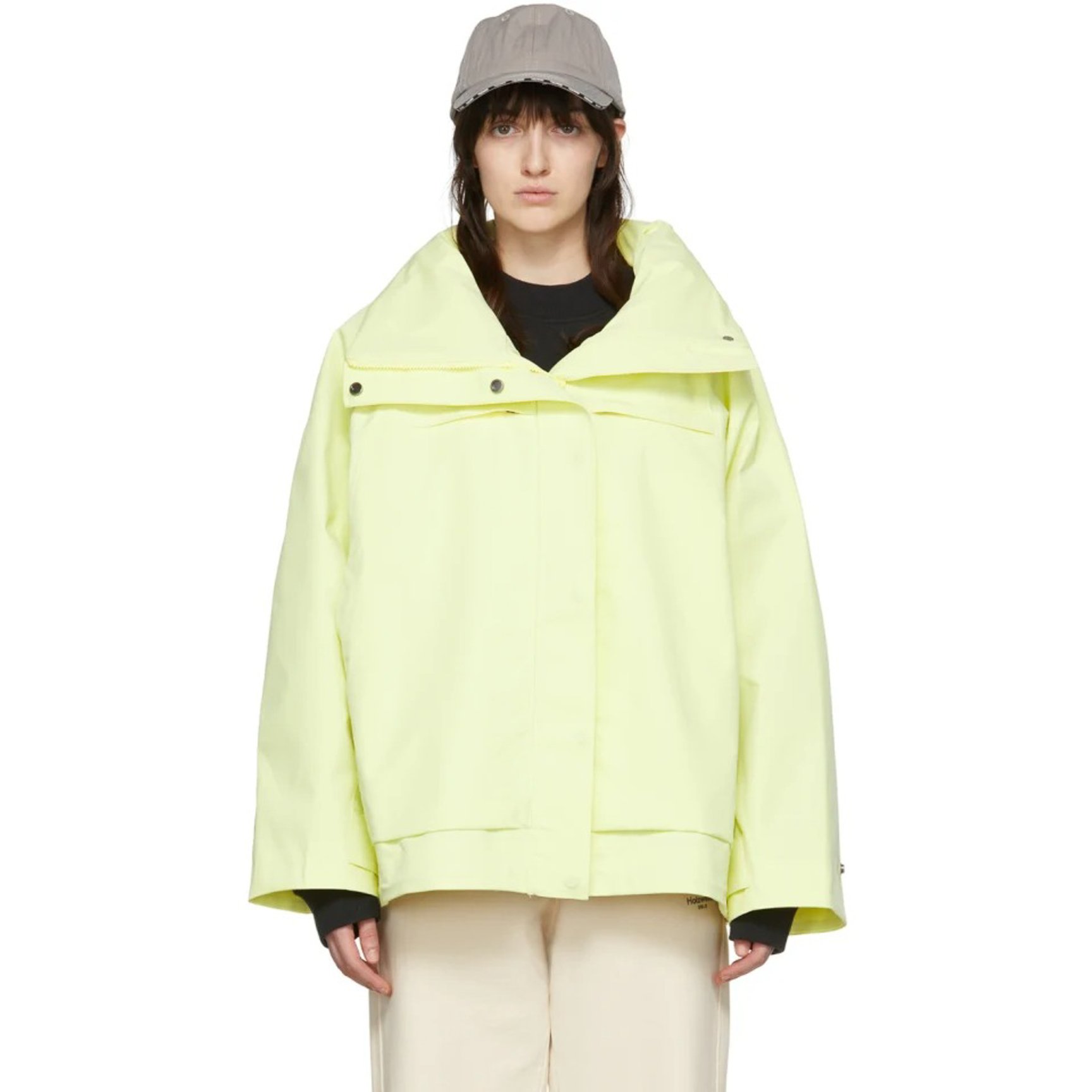 爽やかなレモンイエローカラーをまとった「ホルツワイラー(HOLZWEILER)」のジャケットは、ユニセックスで着用できるオーバーシルエット。スタンドカラーにはフードを搭載しているので、強い日差しや急な雨から守ってくれます。