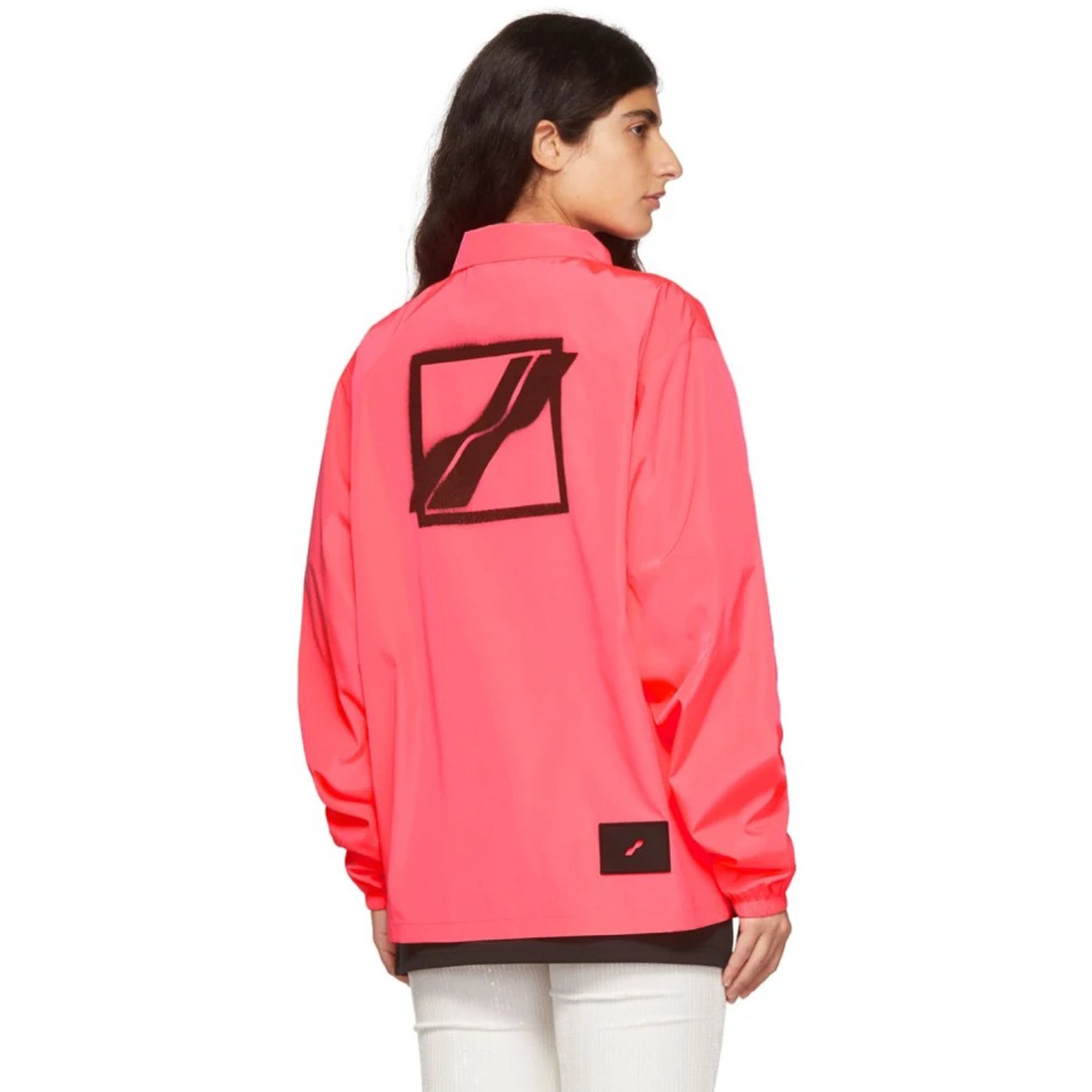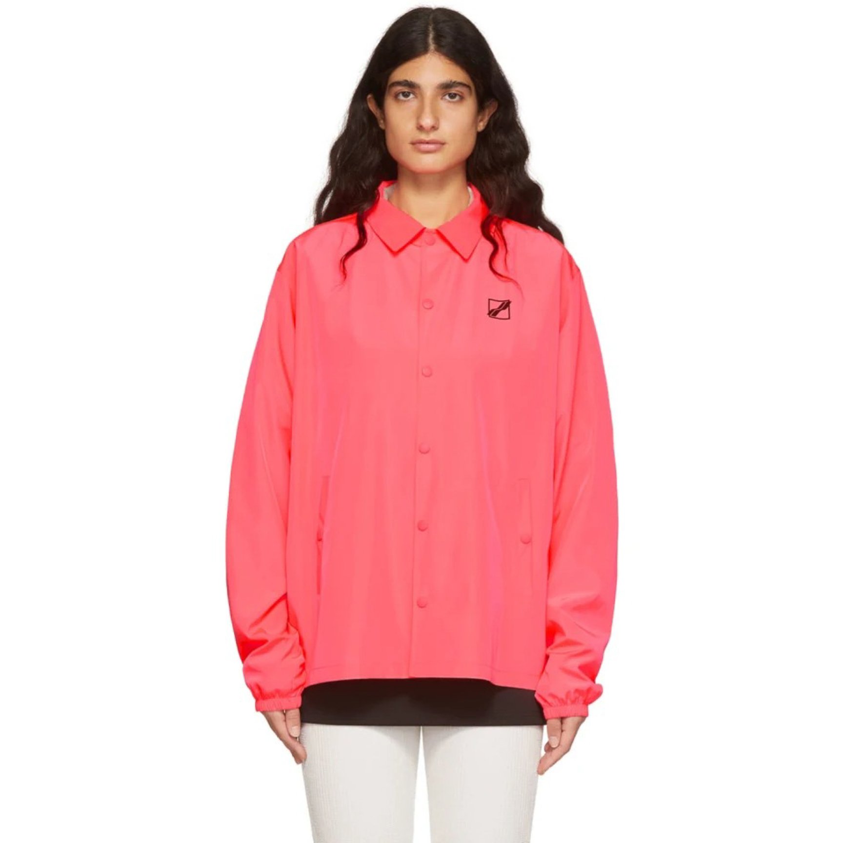 鮮やかなピンクが目を引くジャケットは「ウェル ダン(WE11DONE)」のもの。ベーシックなコーチジャケットタイプのこちら、胸元と背面にはロゴがプリントされ、ストリートシーンにもマッチするデザインです。