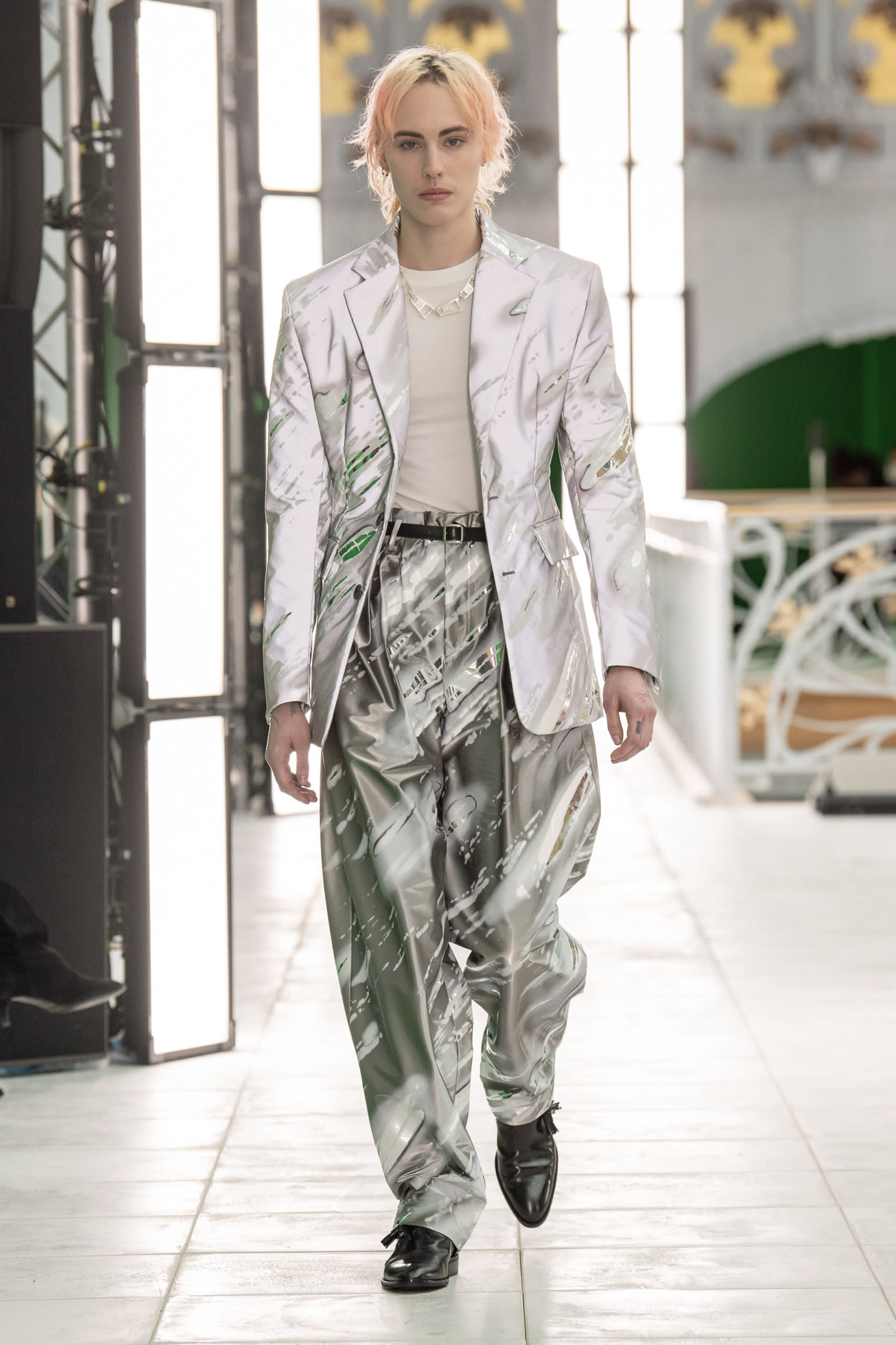 メゾン独自のリアルとデジタルの融合として、会場の壁紙や床をグリーンバックに変え、ストリーミング映像にクロマキー合成で1987年公開の映画「ベルリン?天使の詩(Der?Himmel?über?Berlin)」の映像を重ねた。モデルがフィルムに入り込んだような特殊な映像は、画面を通して観覧する配信ならではの演出だ。また、来場できないプレスなど一部の観客向けにヴァーチャルシートを用意し、360度カメラを操作して観覧できるエクスクルーシブなストリーミング配信も行った。