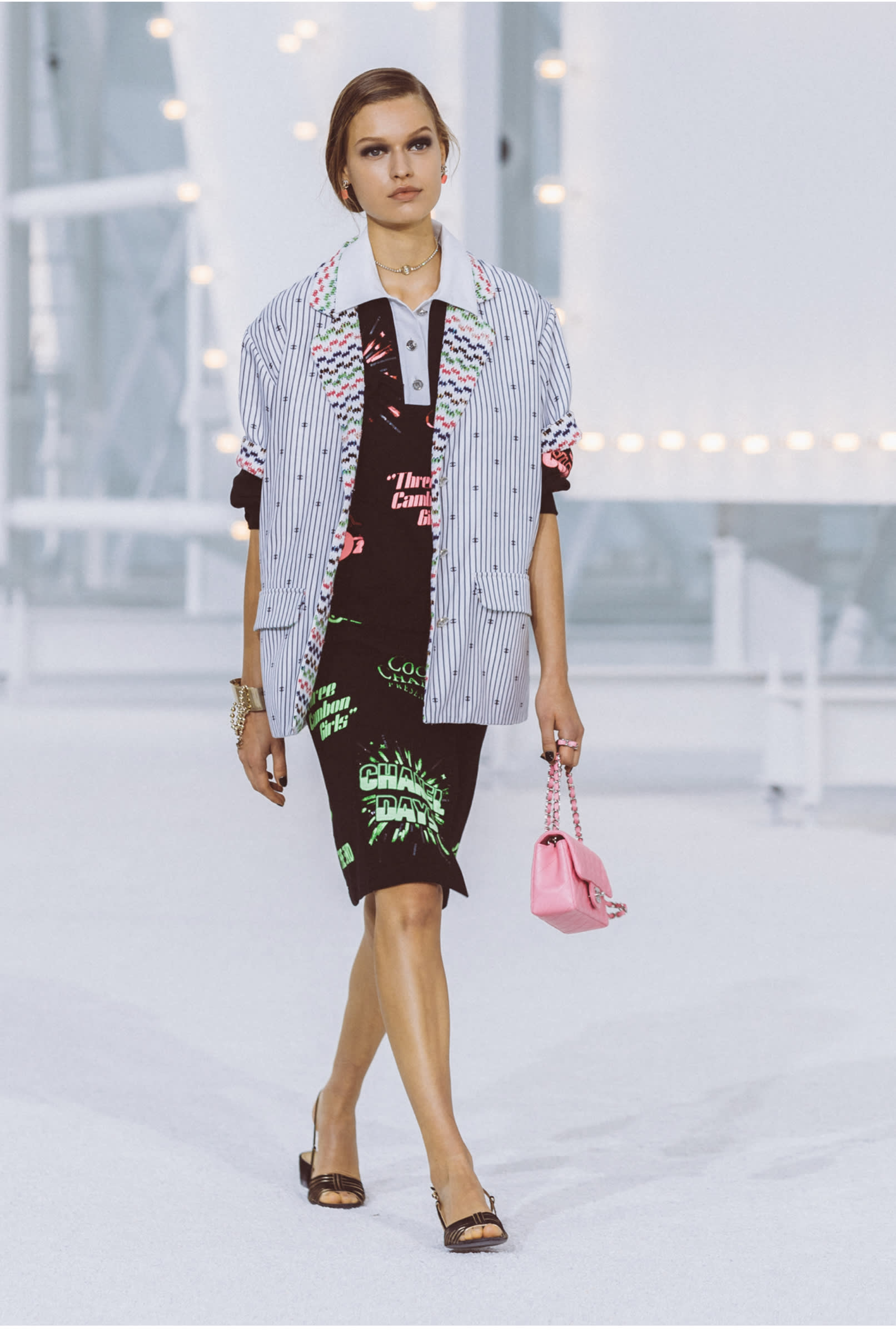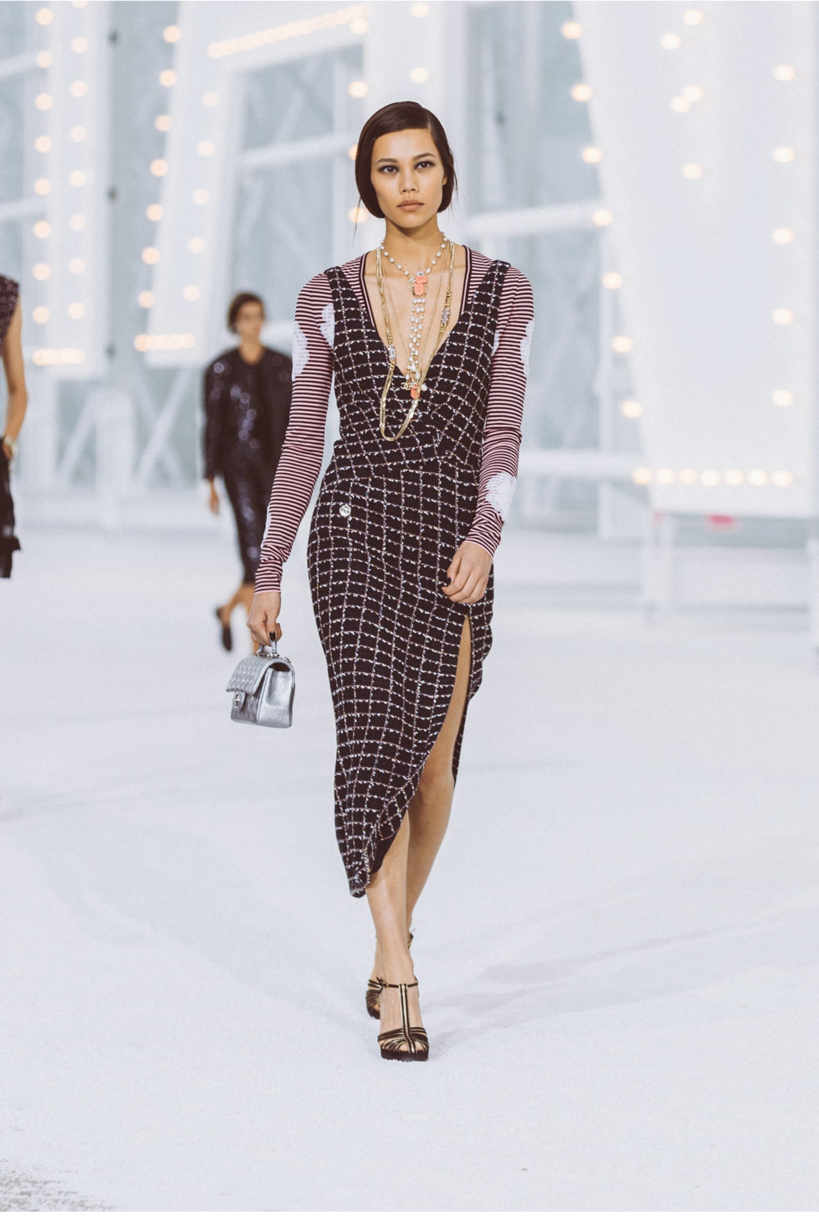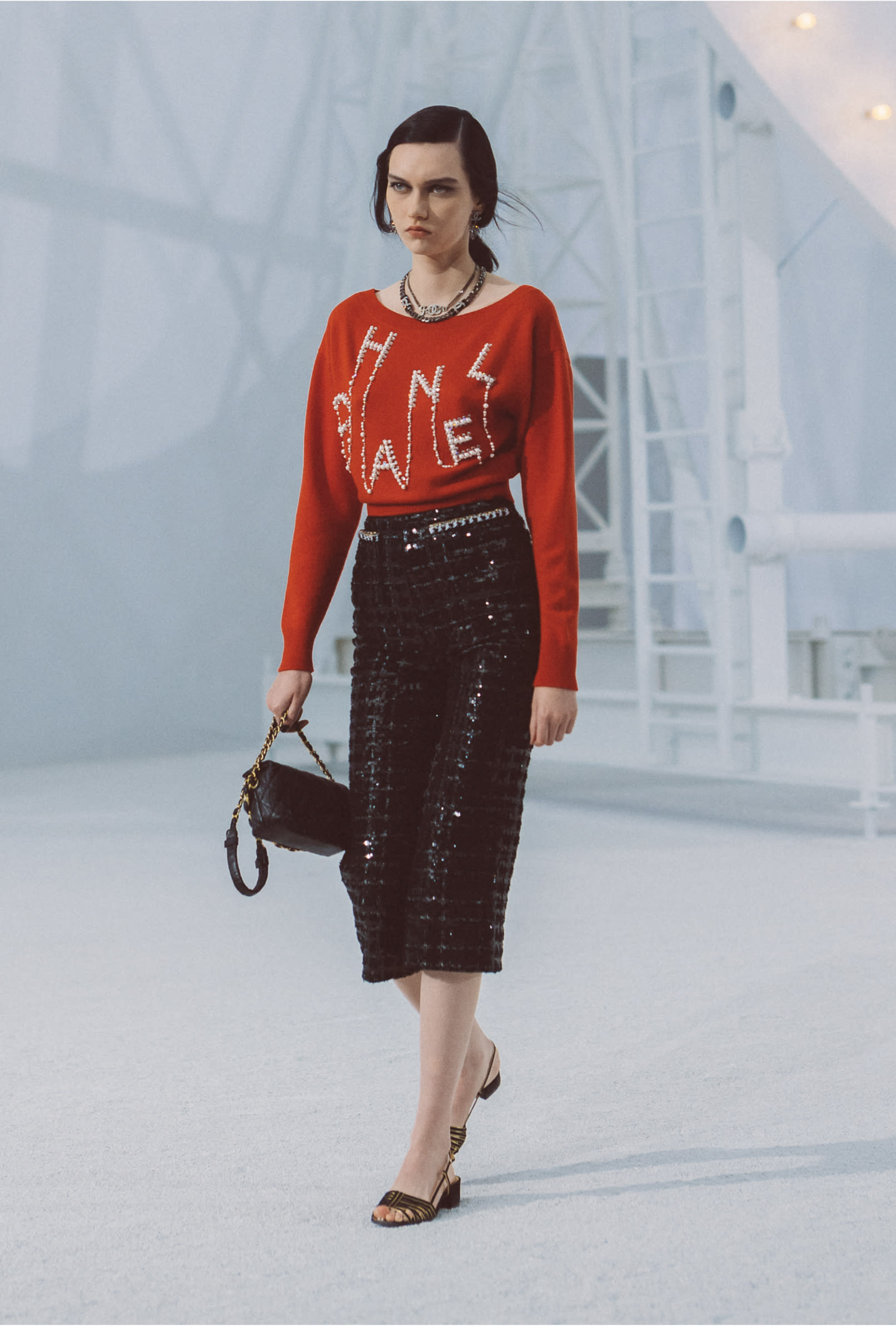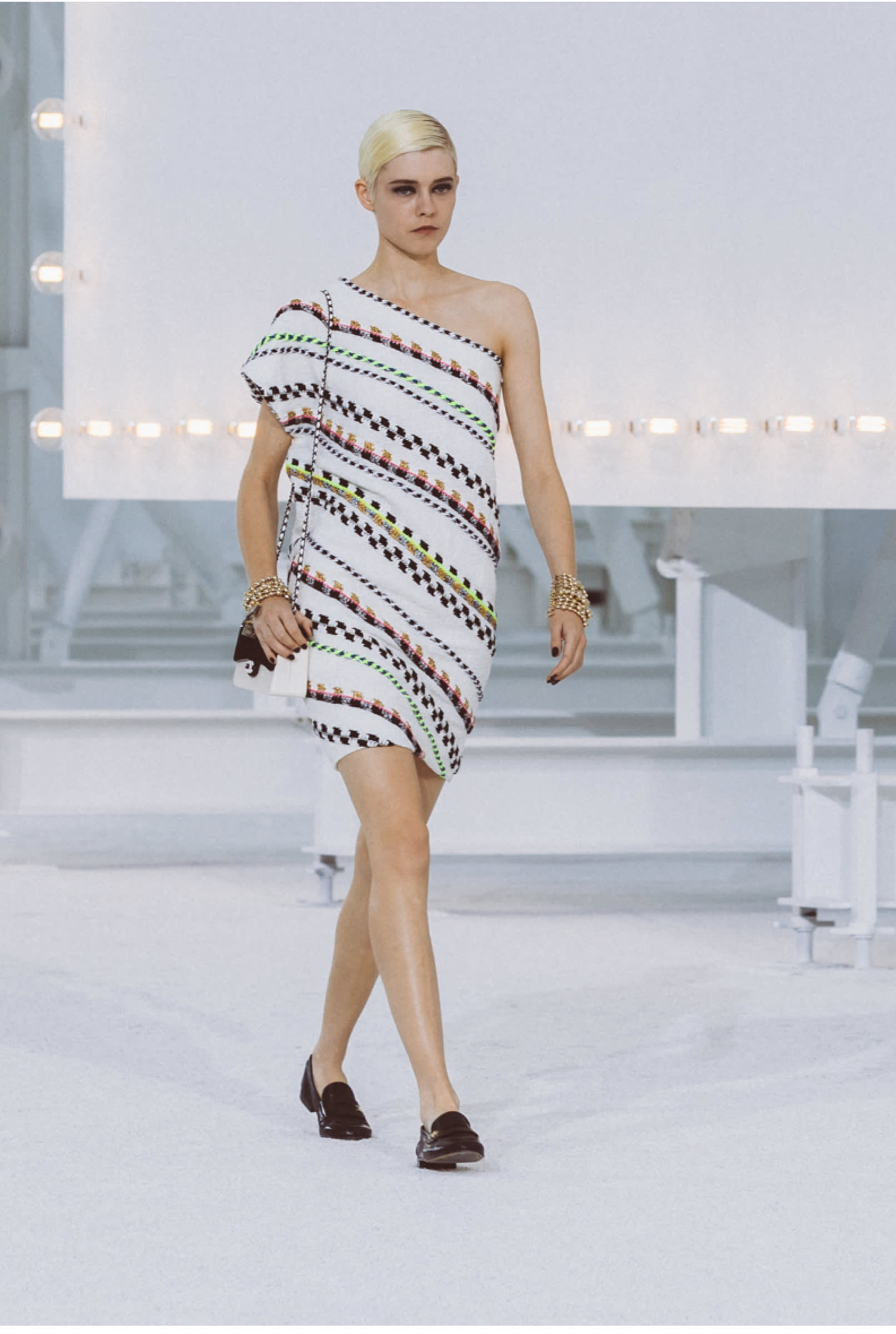 アーティスティックディレクターのヴィルジニー?ヴィアール(Virginie?Viard)は、2021年春夏コレクションでシャネルのミューズにオマージュを捧げたという。レッドカーペットでフォトコールに臨む女優たちの姿を思い浮かべ、喜びに溢れてカラフル、活気に満ちたコレクションを探究した。