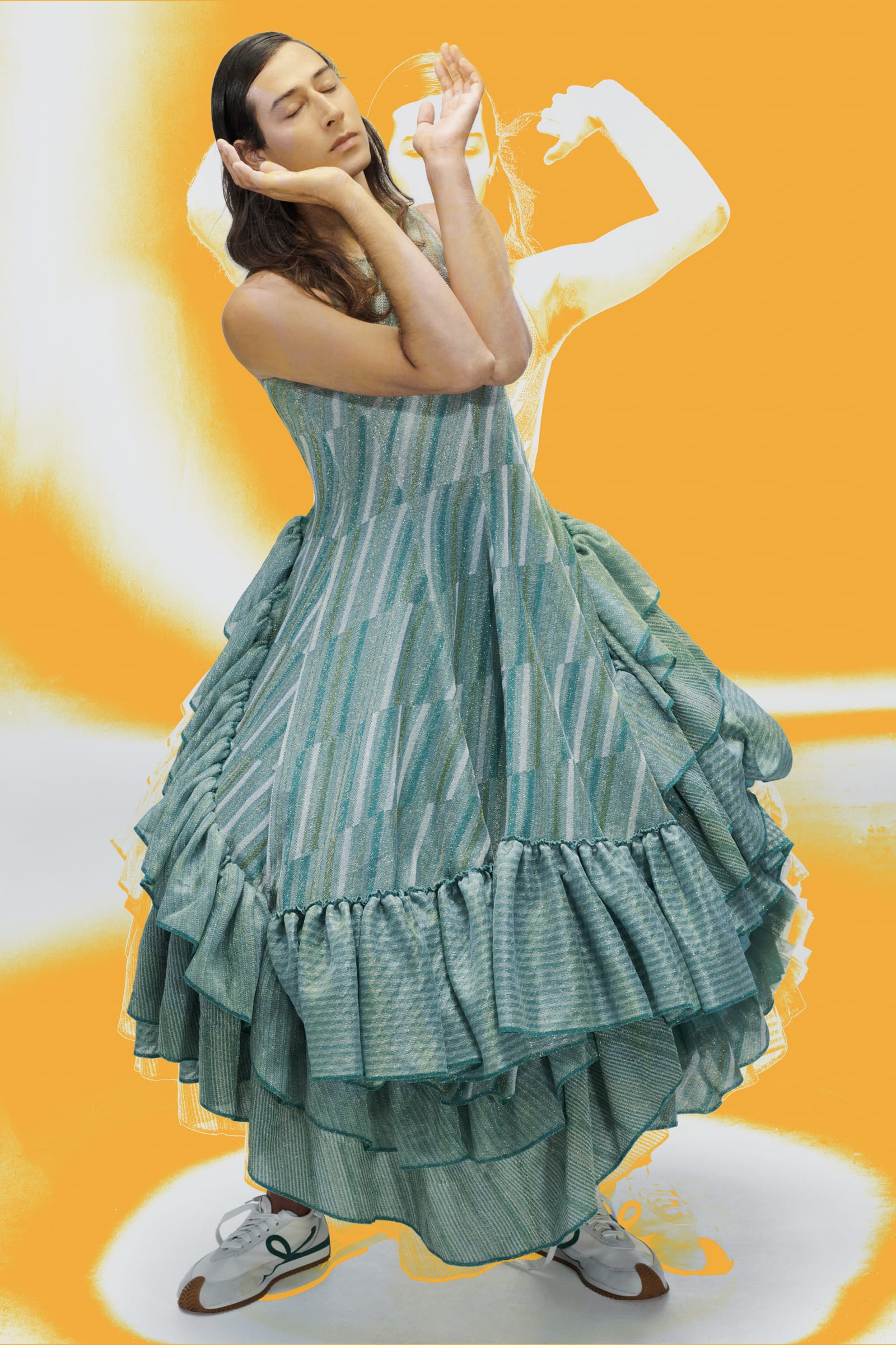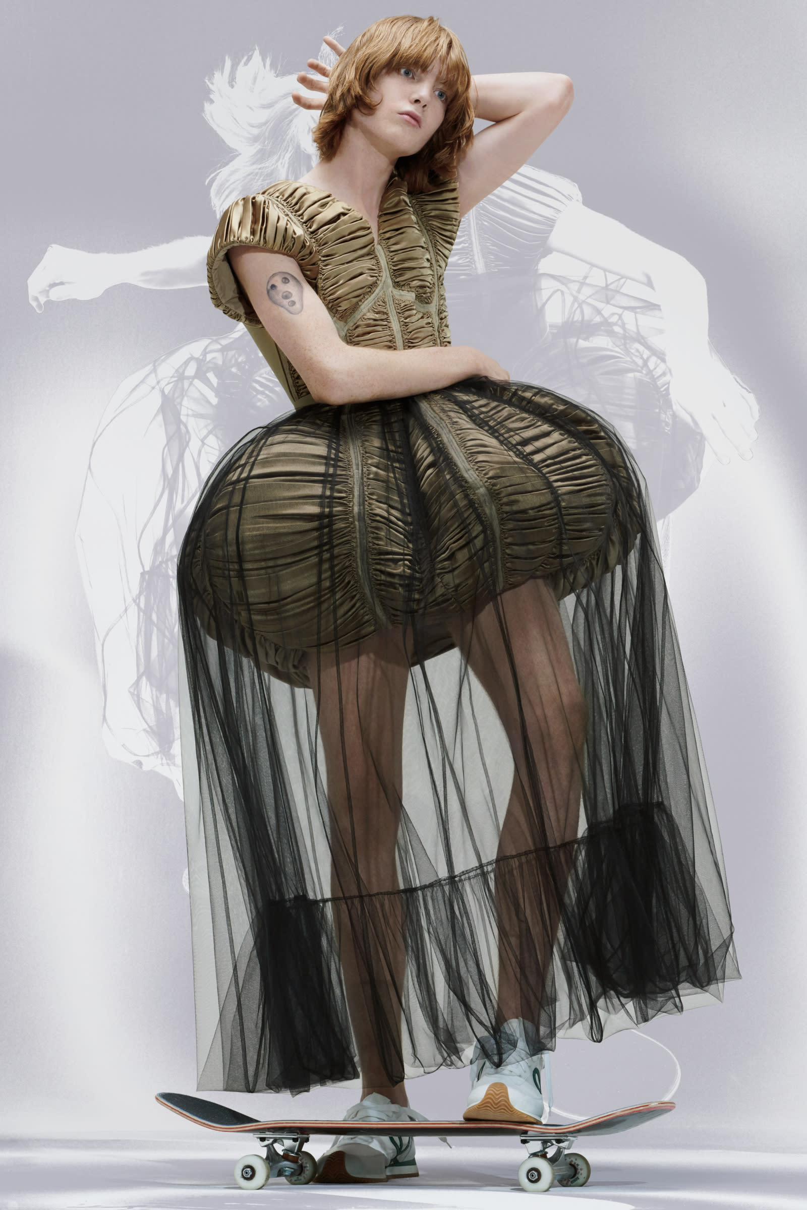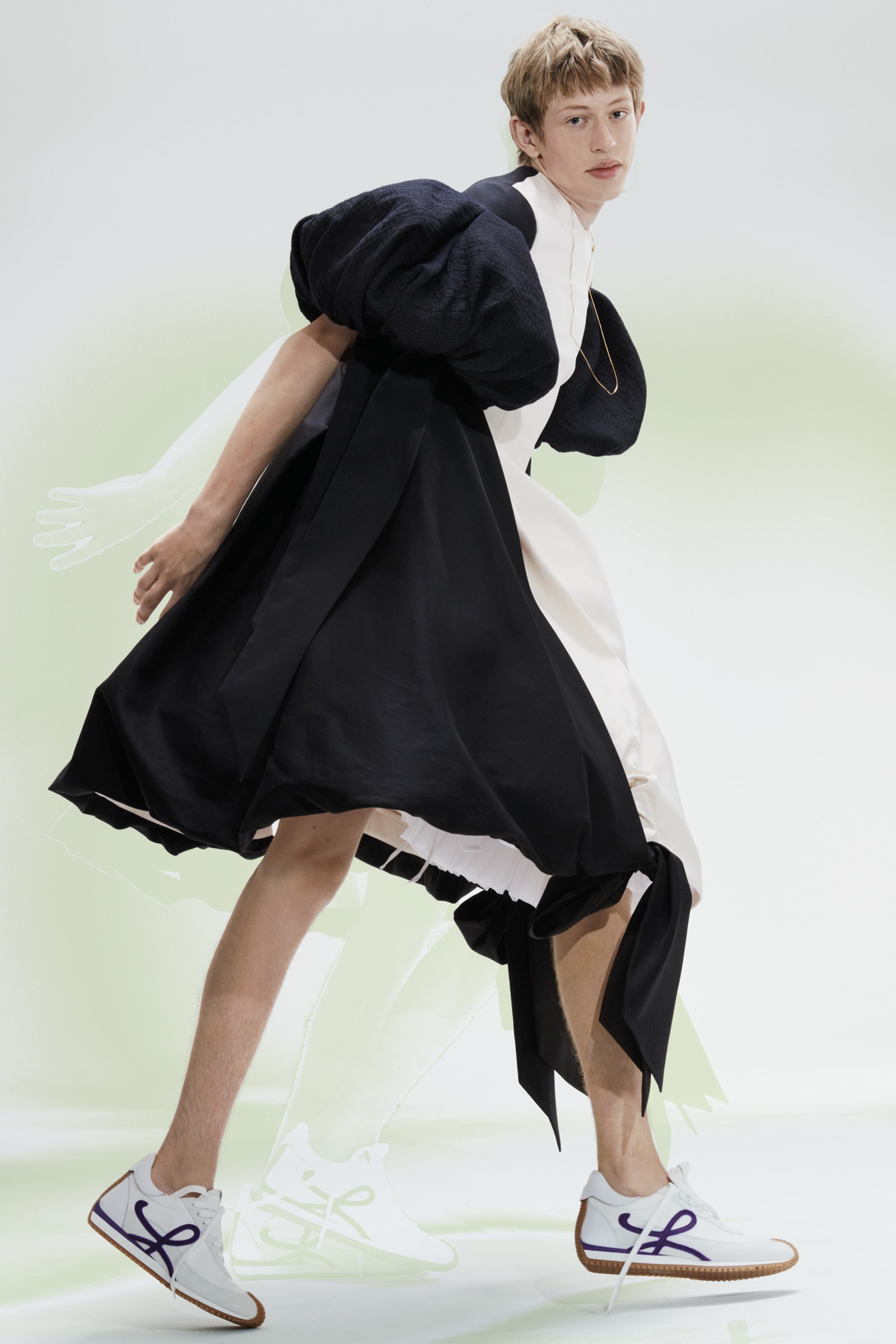 2021年春夏コレクションのキーワードはファッションの極限化。演劇性と彫刻性を拡大することで表現したという。膨らんだボリューム、突き出たフラップ、オーバーサイズのヒップ、ダンシング?ノットといった、ダイナミックなシルエットが特徴。ファッションで遊ぶ喜びを打ち出している。
