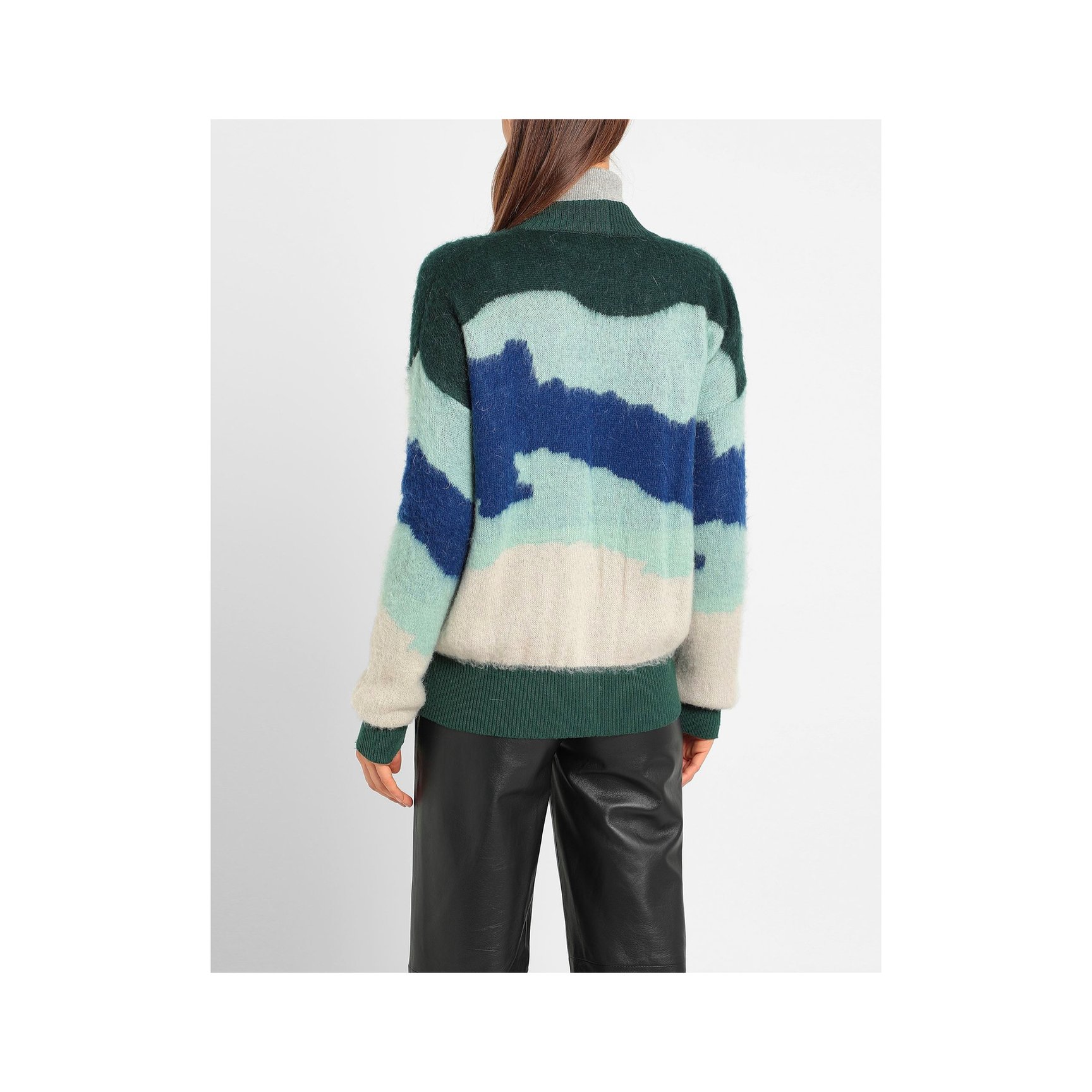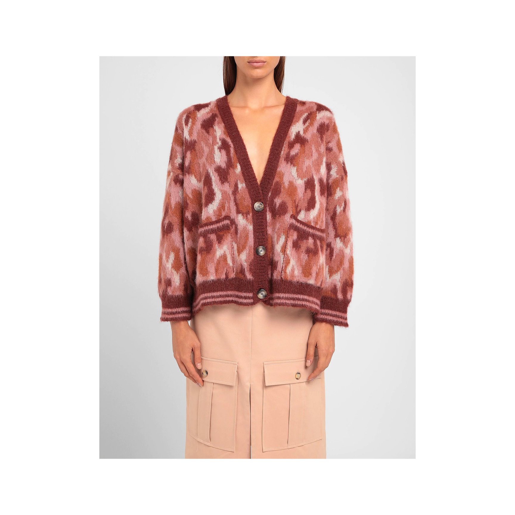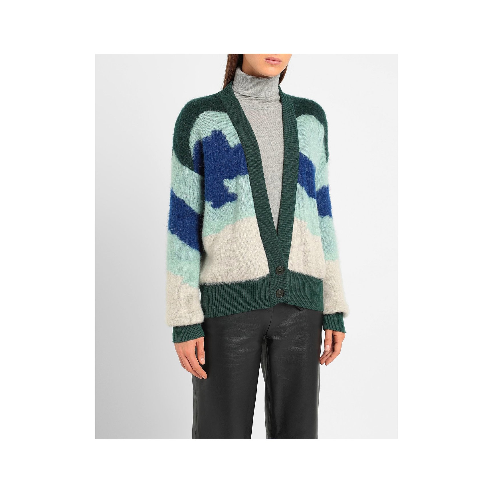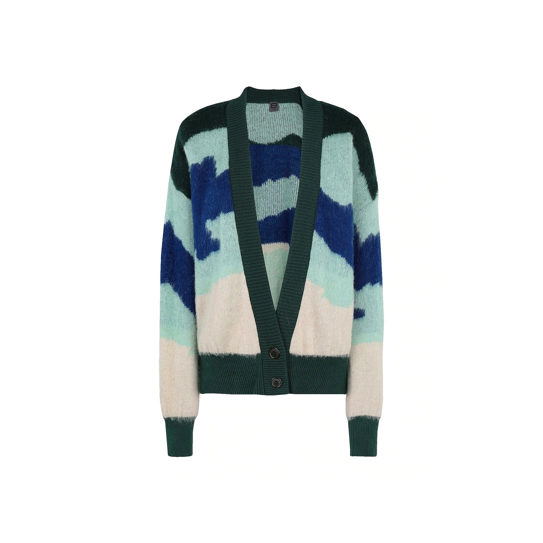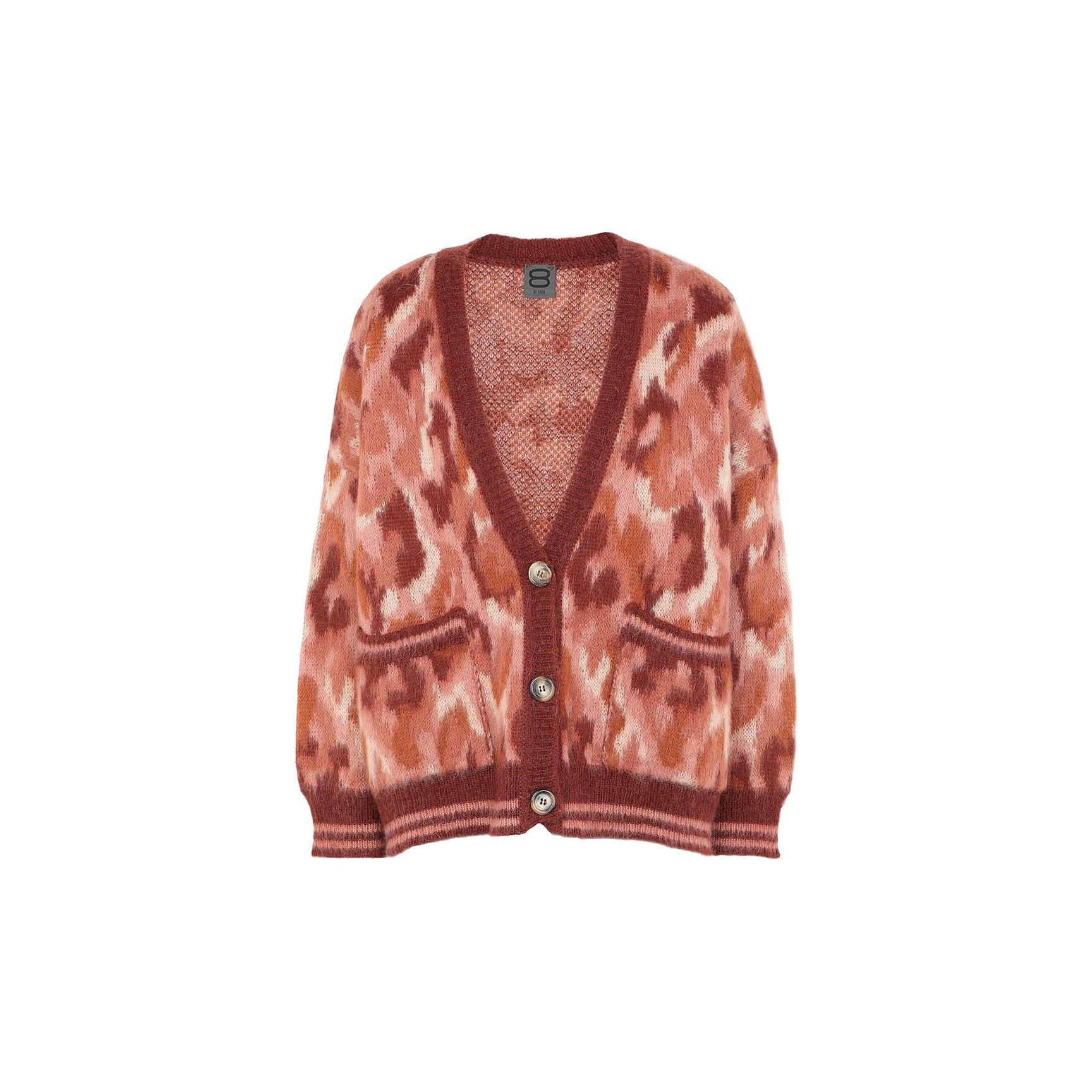「オット?バイ?ユークス(8?by?YOOX)」のカモパターン風のモヘア混カーディガンです。リラックスフィットでゆったりと羽織れます。タートルネックとの相性も好バランスなVネック。