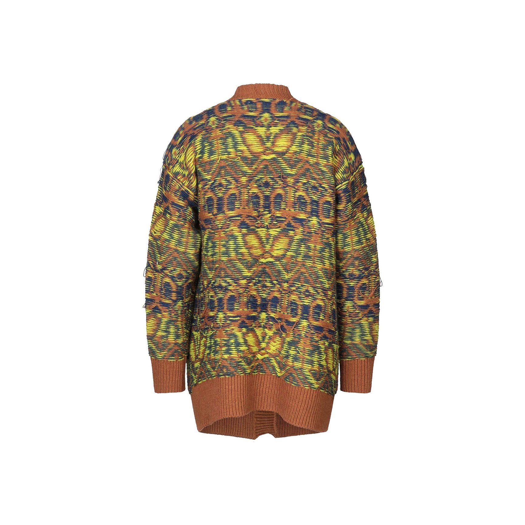 イタリア発「ボンサイ(BONSAI)」のカーディガンは、ブランド名と同様にユニークなジオメトリックパターン。ボタンの無い、オープンフロントタイプになっています。ところどころのほつれ毛もアクセントの、表情豊かな一着です。